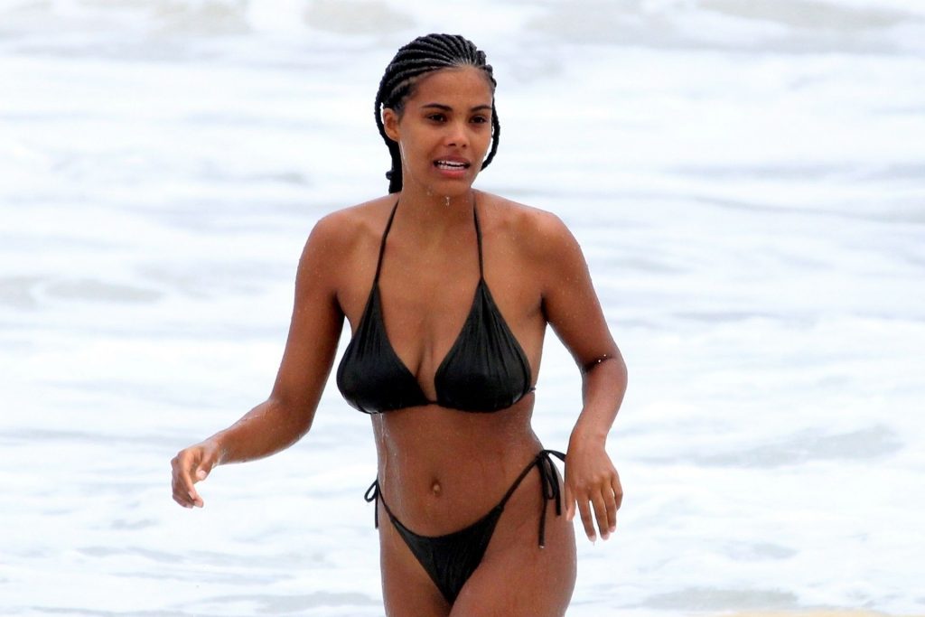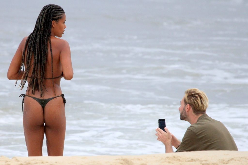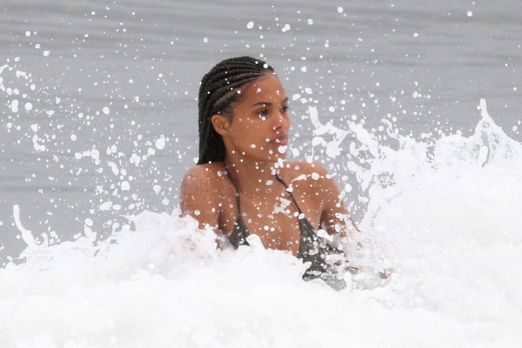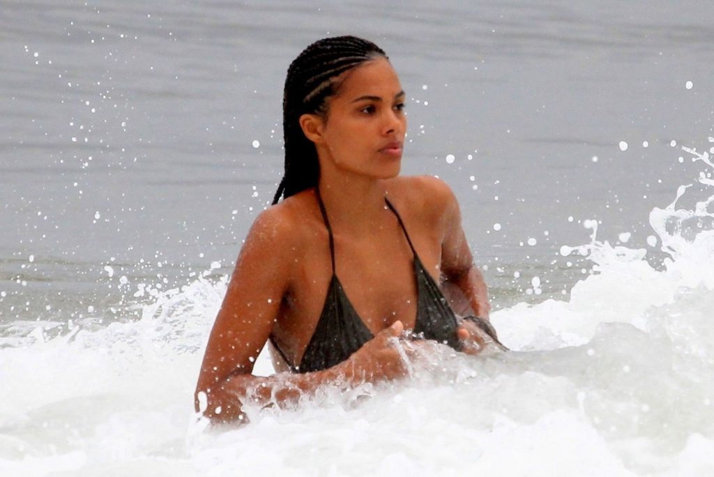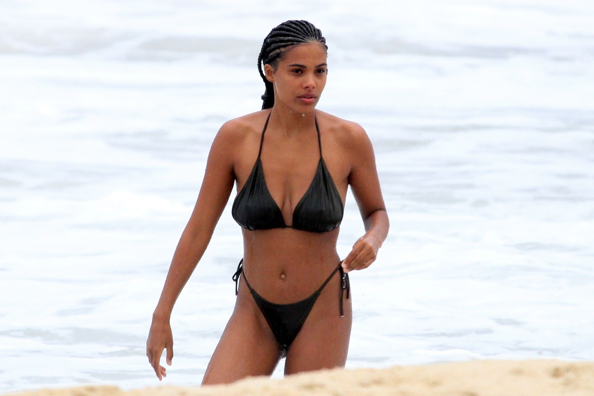 Vincent Cassel’s wife Tina Kunakey is joined by a friend for a beach day in Rio de Janeiro, 02/21/2020. A modelo, vestindo um biquíni preto, deu um mergulho enquanto exibia seu novo cabelo trançado.