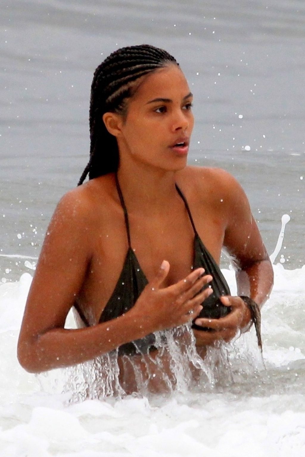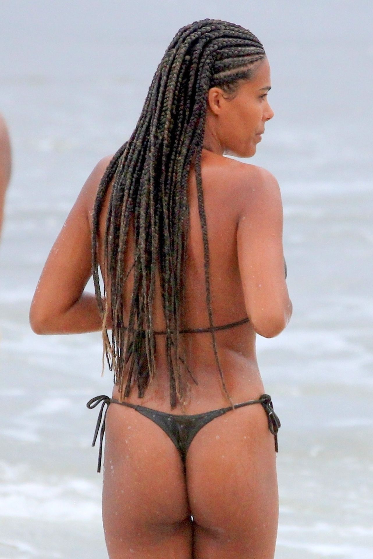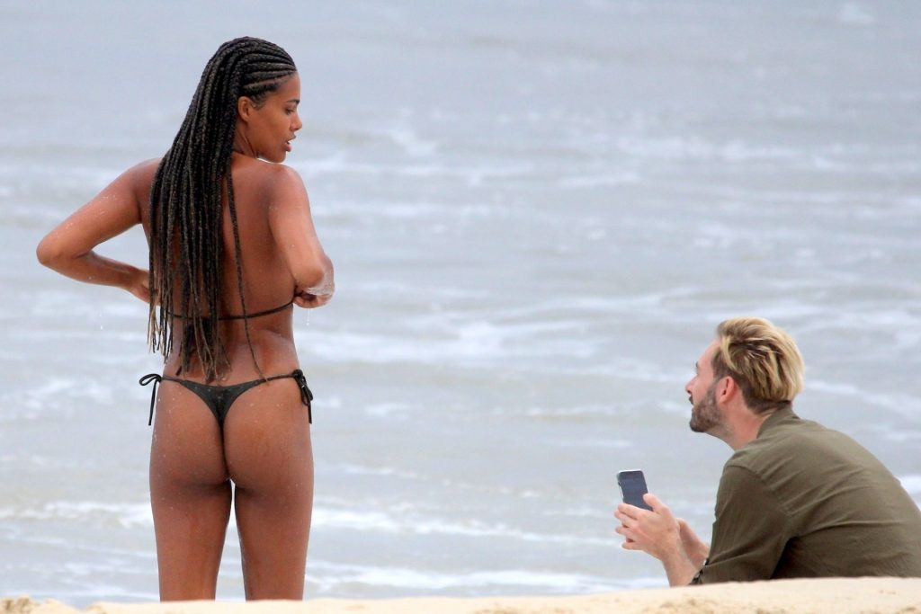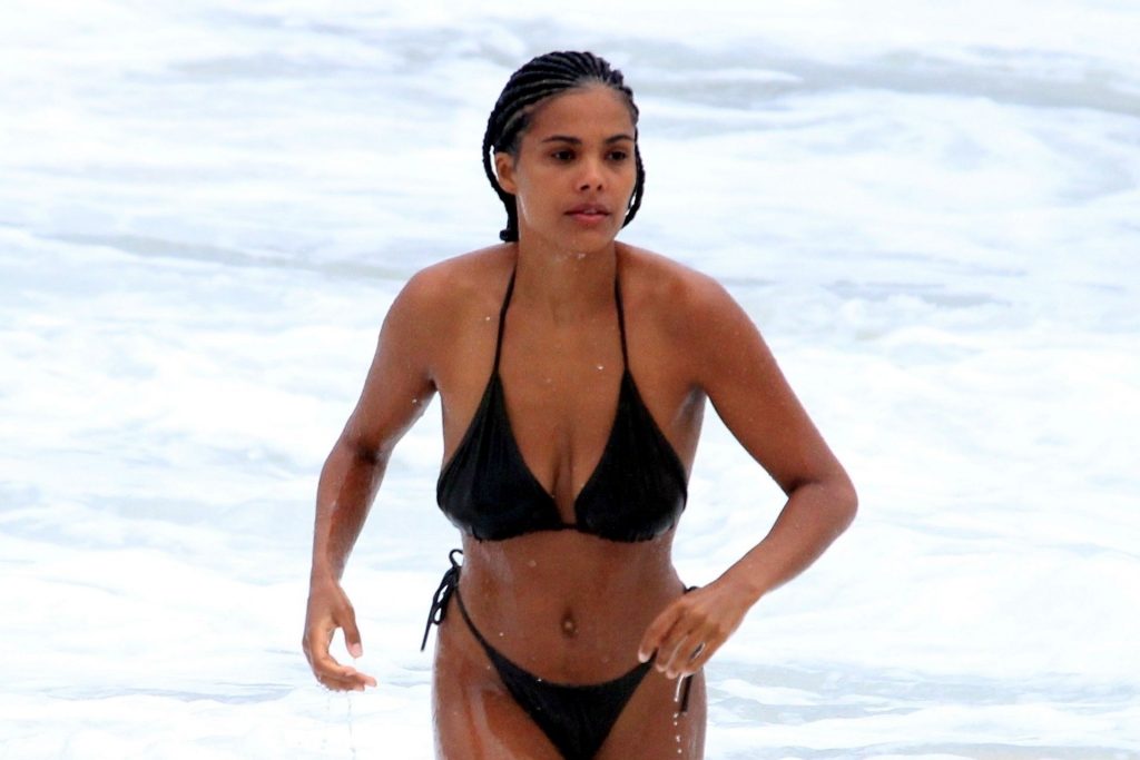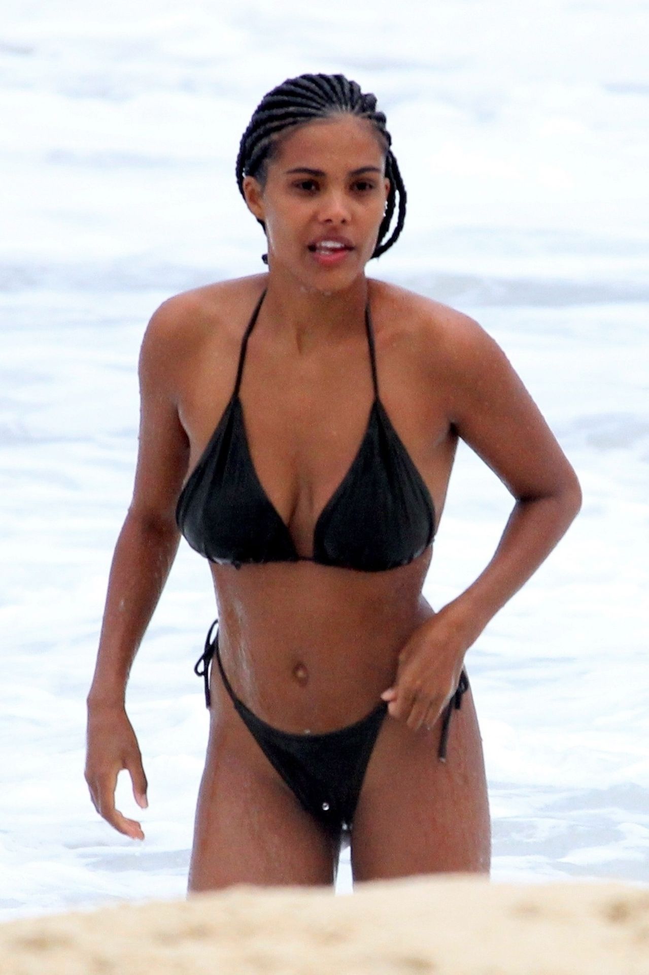 Vincent Cassel’s wife Tina Kunakey is joined by a friend for a beach day in Rio de Janeiro, 02/21/2020. A modelo, vestindo um biquíni preto, deu um mergulho enquanto exibia seu novo cabelo trançado.