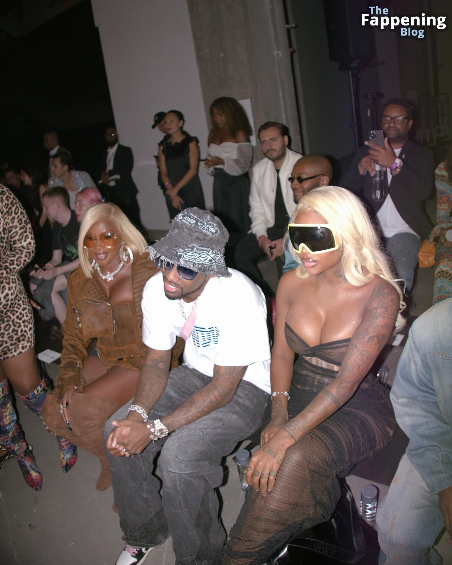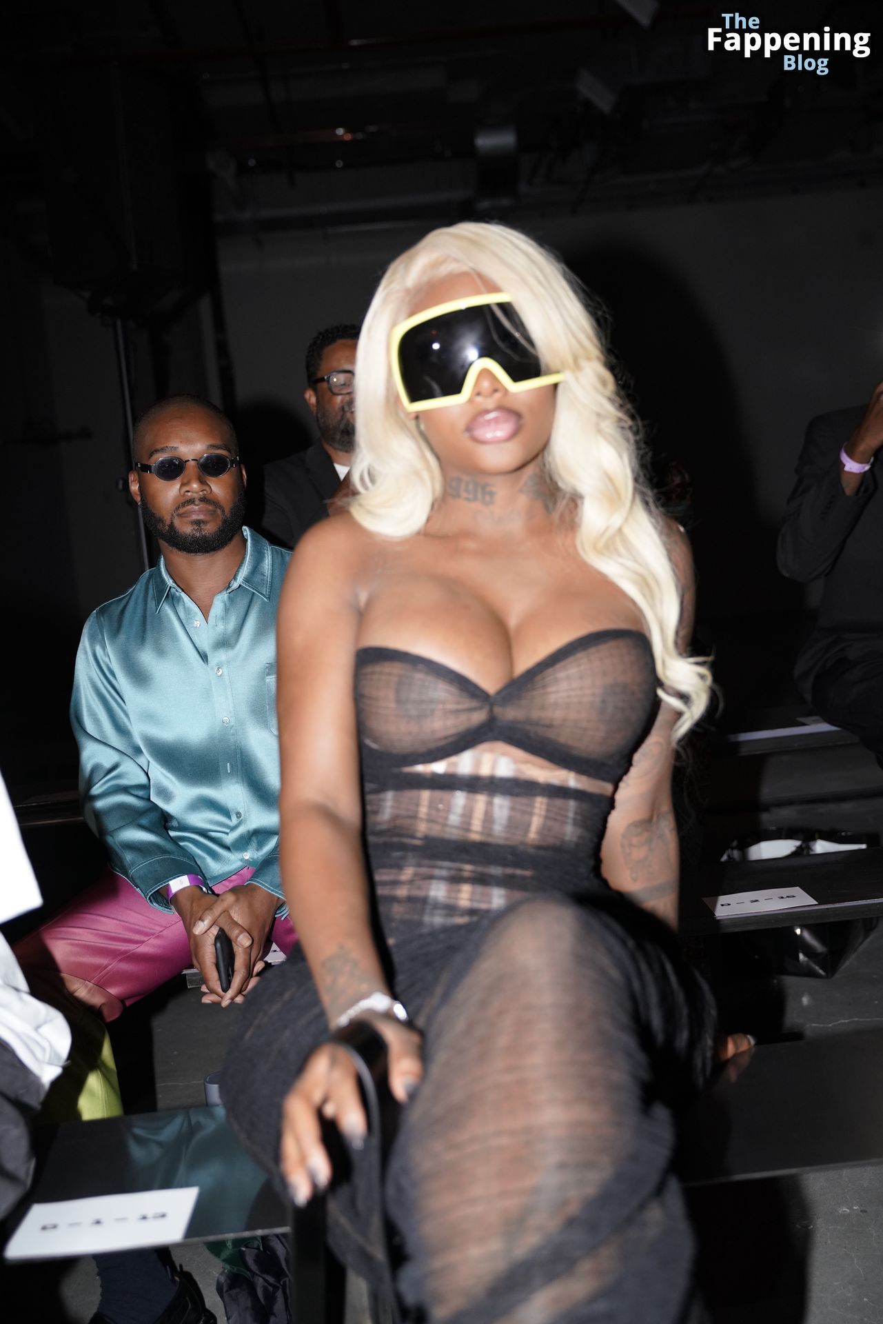 Celebridades chegam ao animado desfile de moda de Laquan Smith em 12/09/2023. A cantora americana Summer Walker simplesmente mostra seus seios nus usando um look transparente.