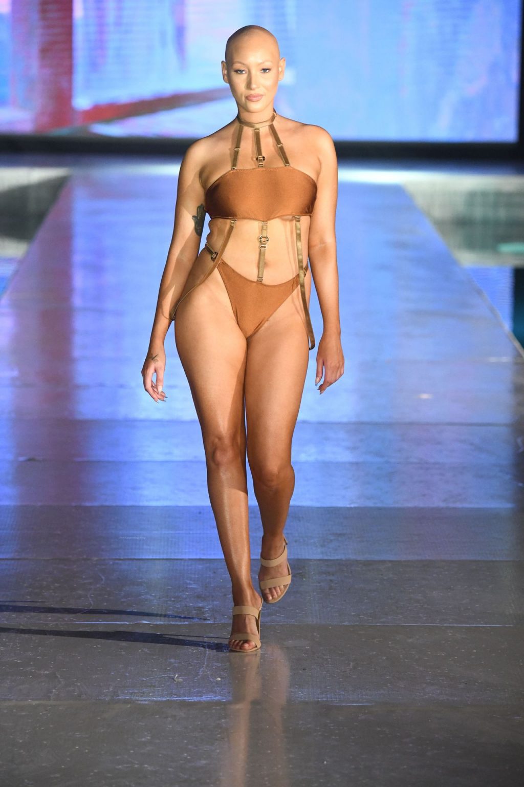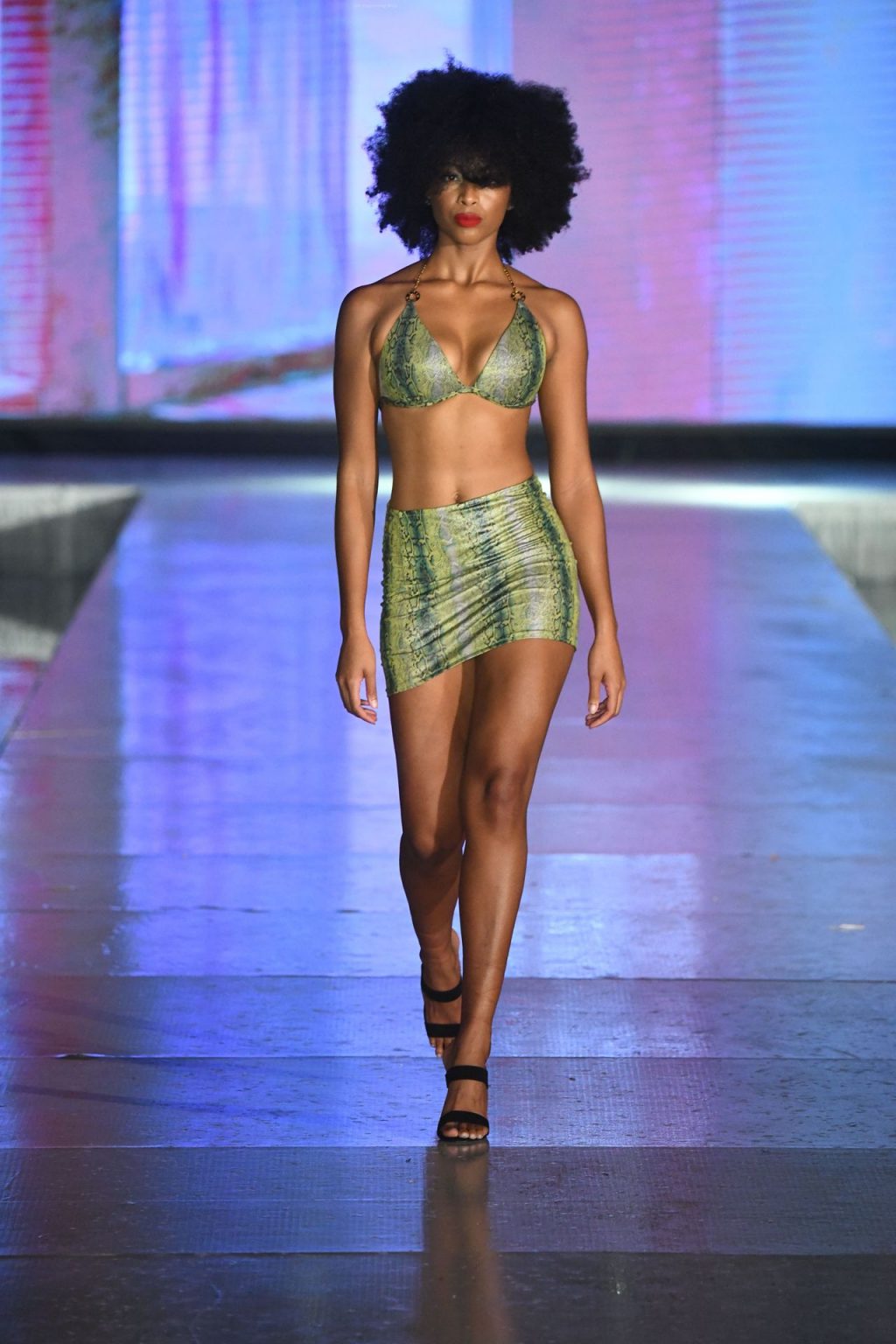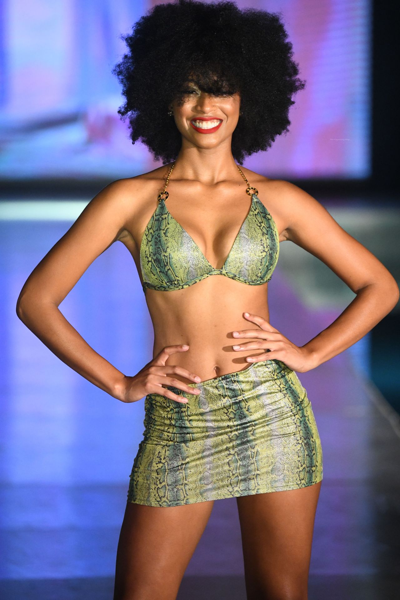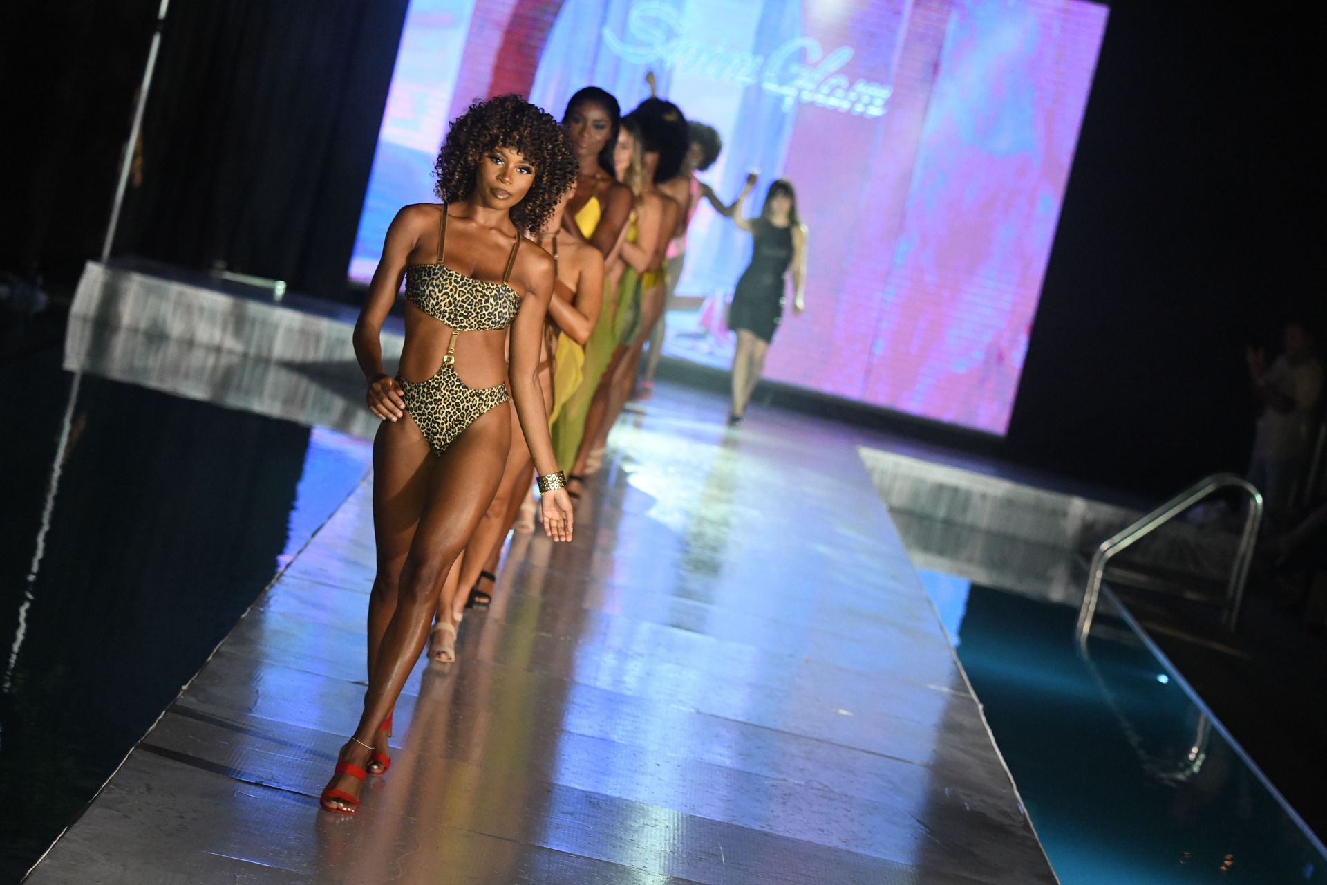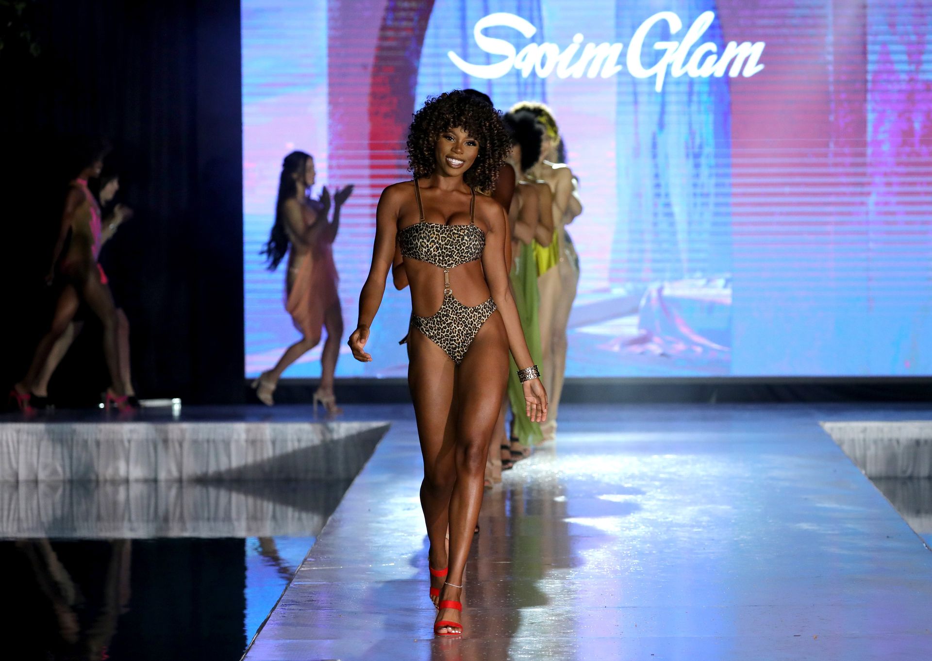 Modelos sensuais desfilam na passarela para o Swimglam Swim show durante a Miami Swim Week no Hotel SLS em Miami Beach, 09/07/2021.