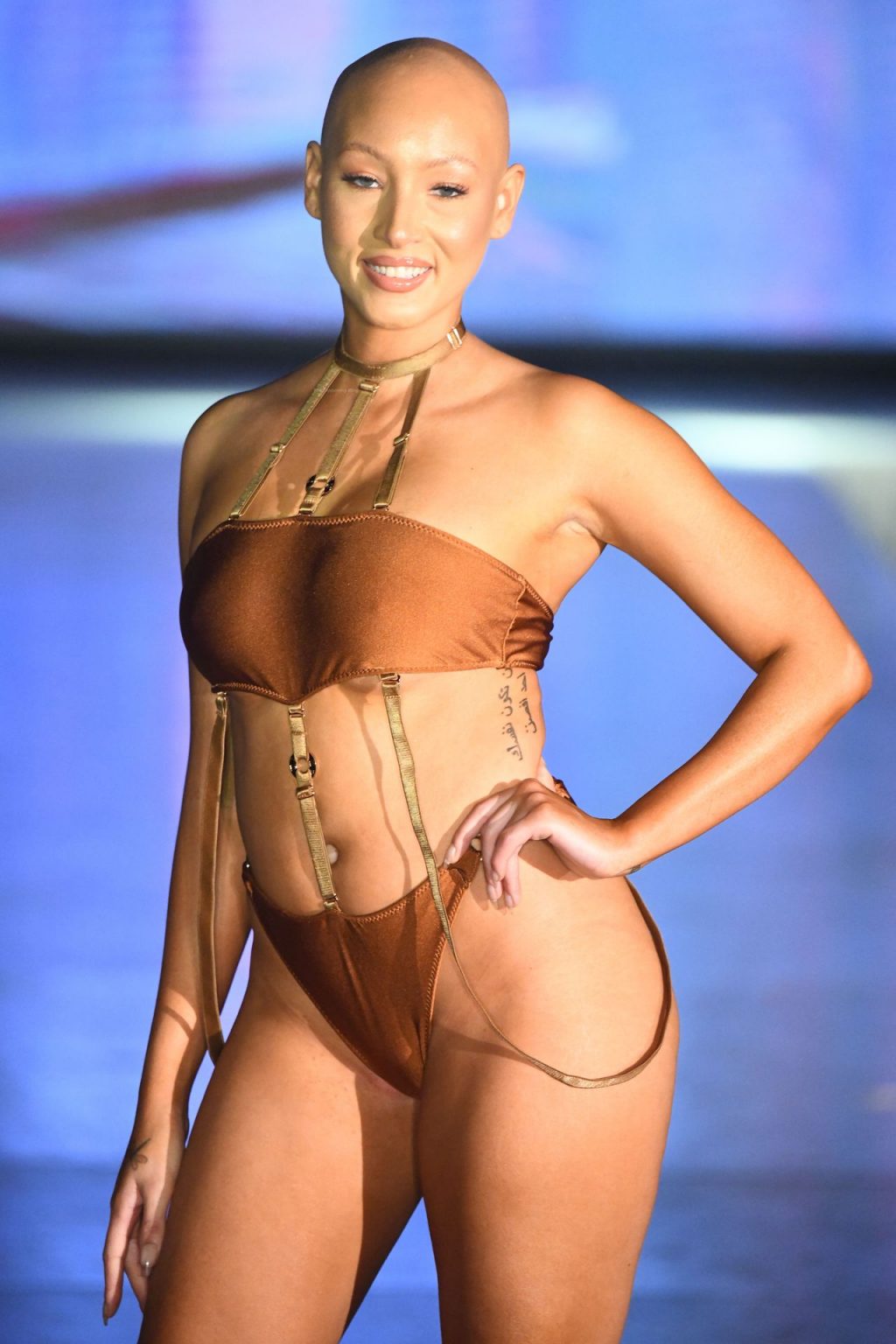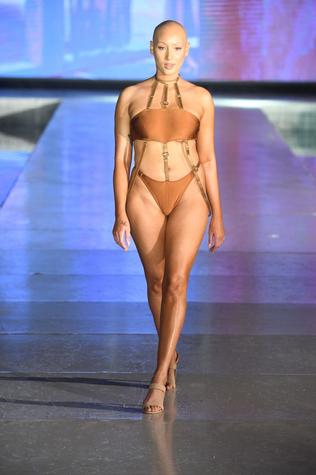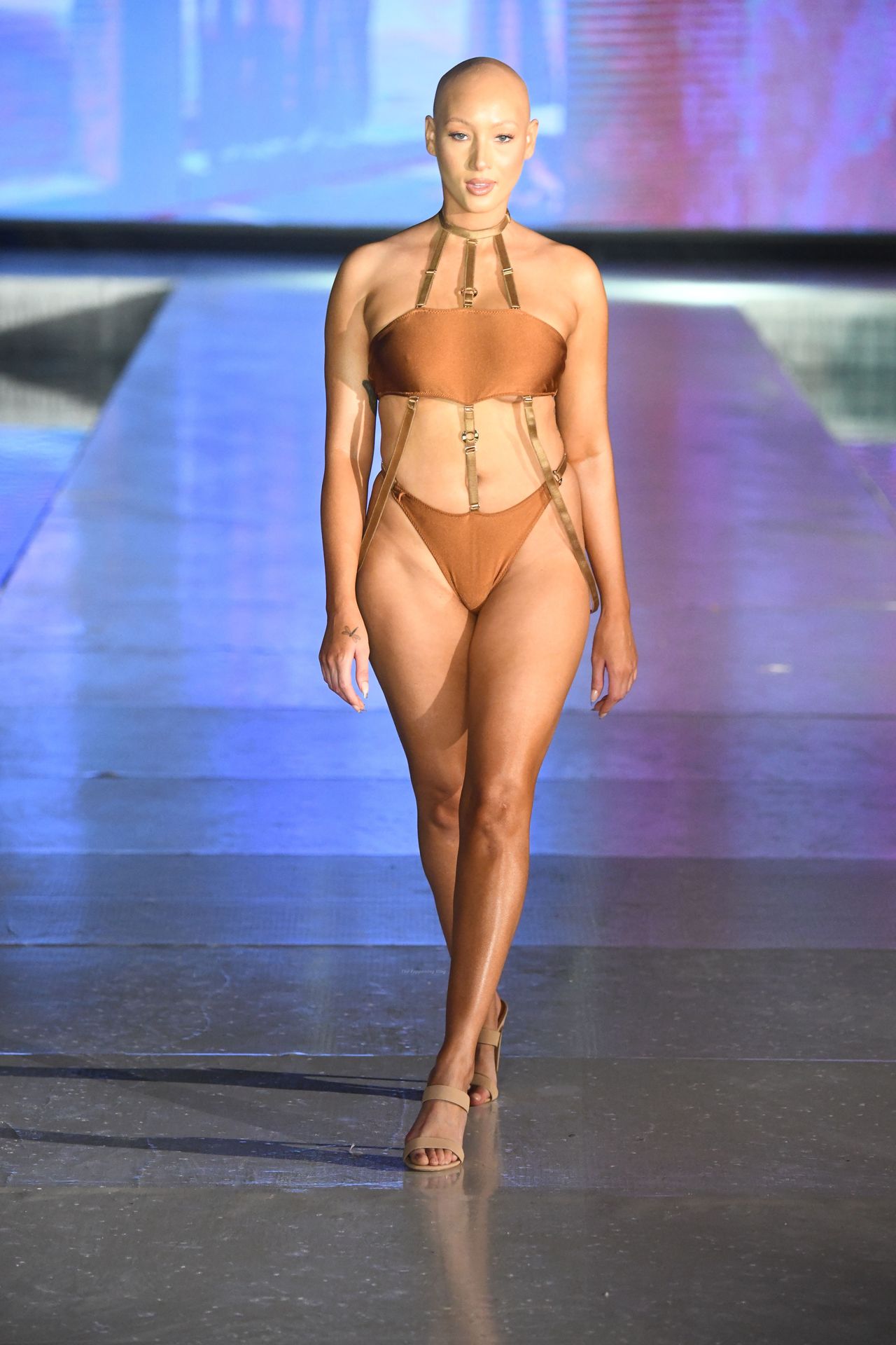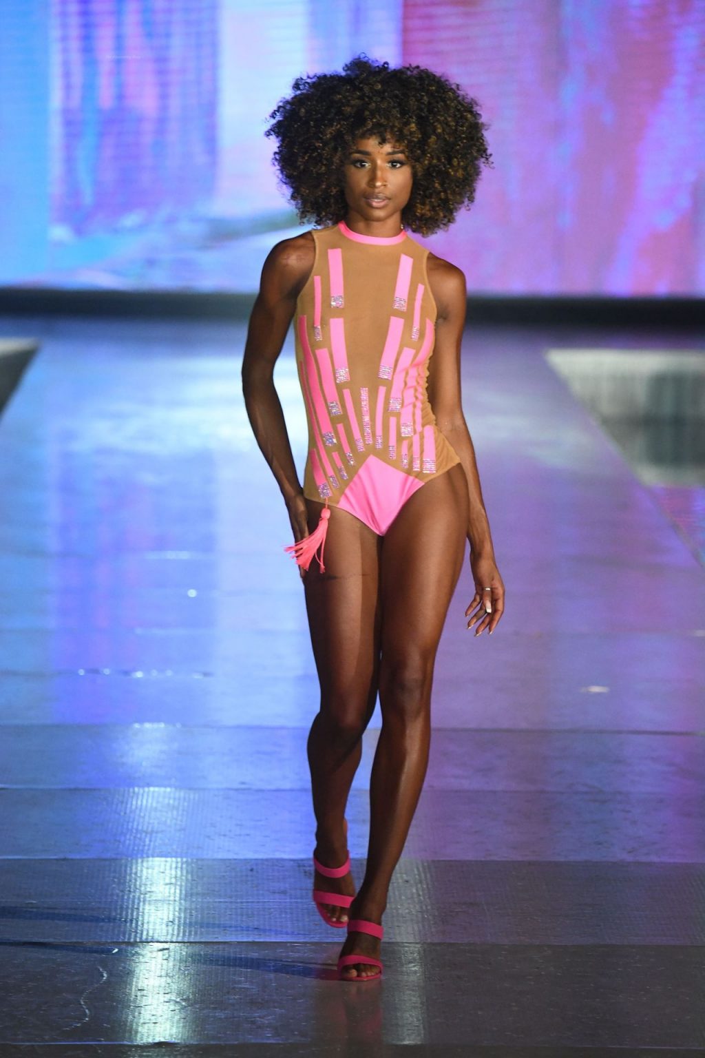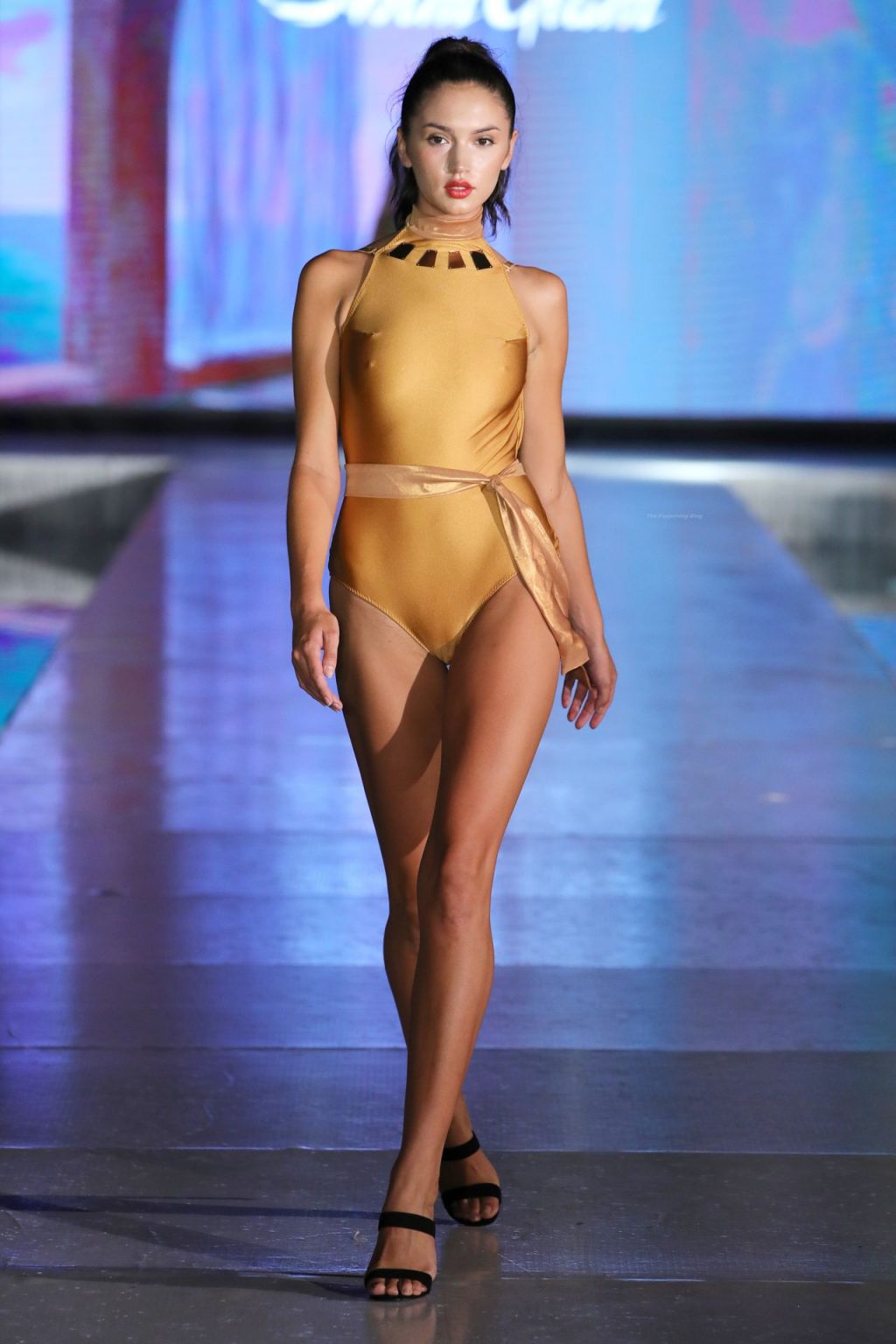 Modelos sensuais desfilam na passarela para o Swimglam Swim show durante a Miami Swim Week no Hotel SLS em Miami Beach, 09/07/2021.
