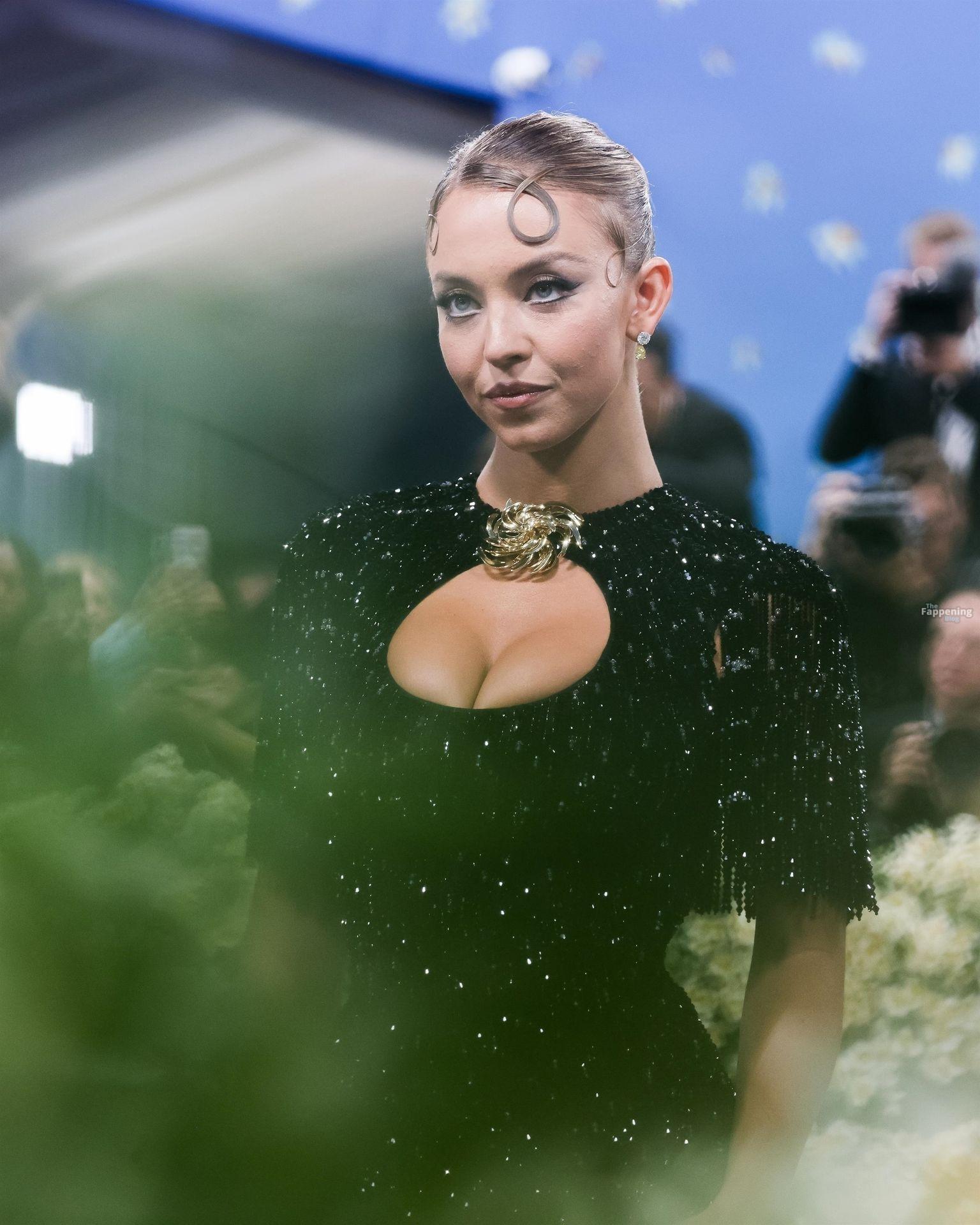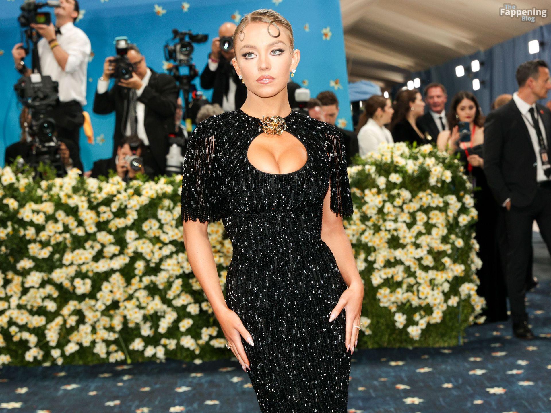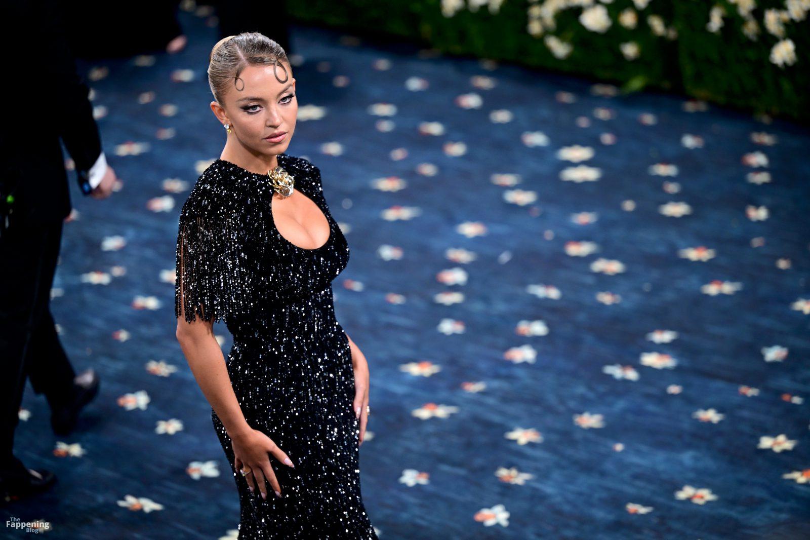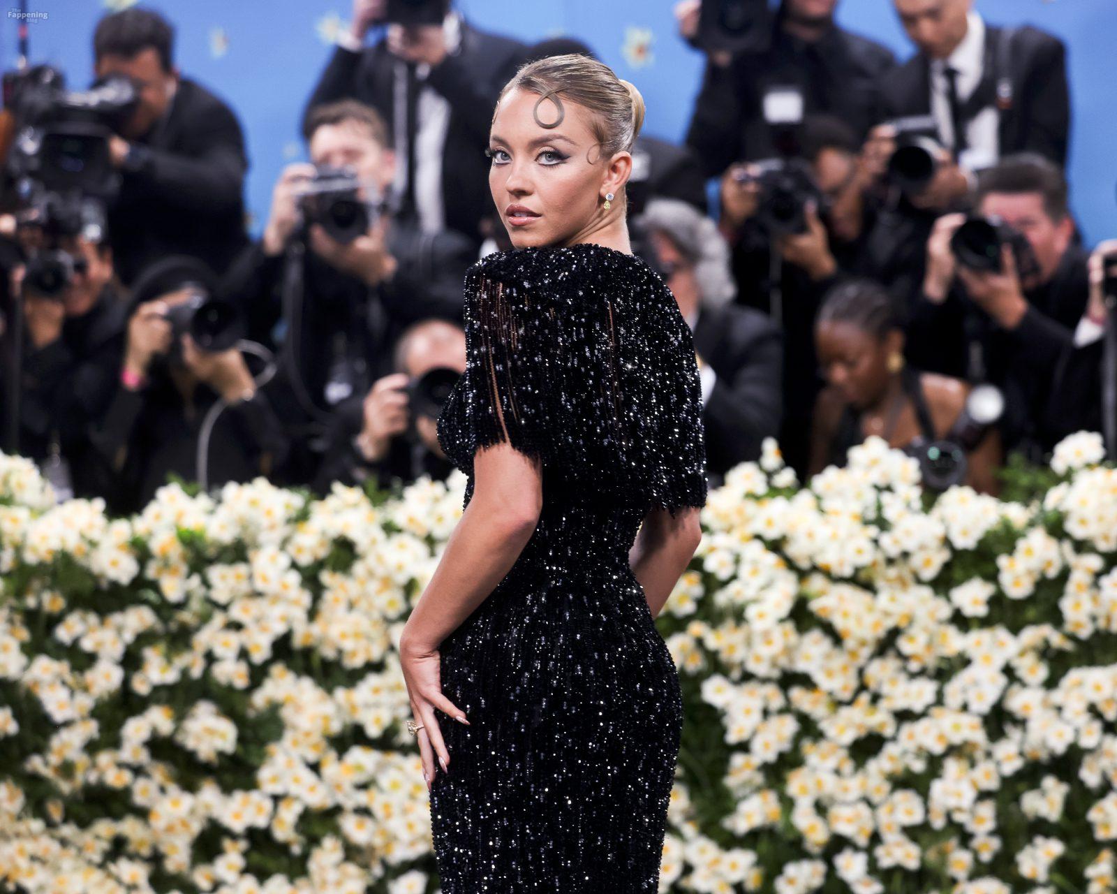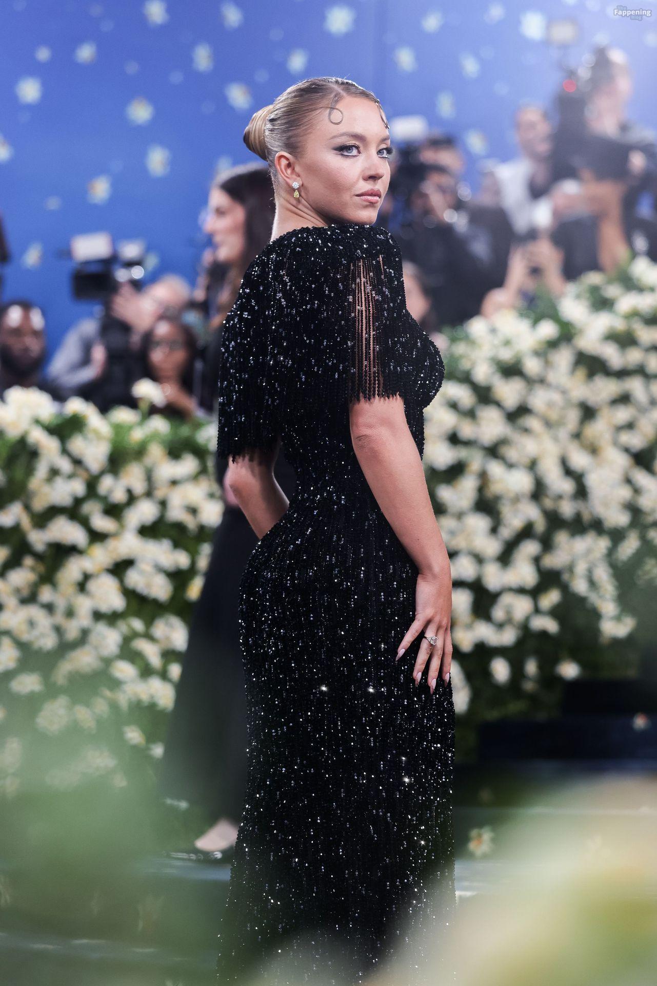 A estrela do Fappening Sydney Sweeney esteve no Met Gala 2025, chegando com um vestido preto de lantejoulas que realçava suas curvas.