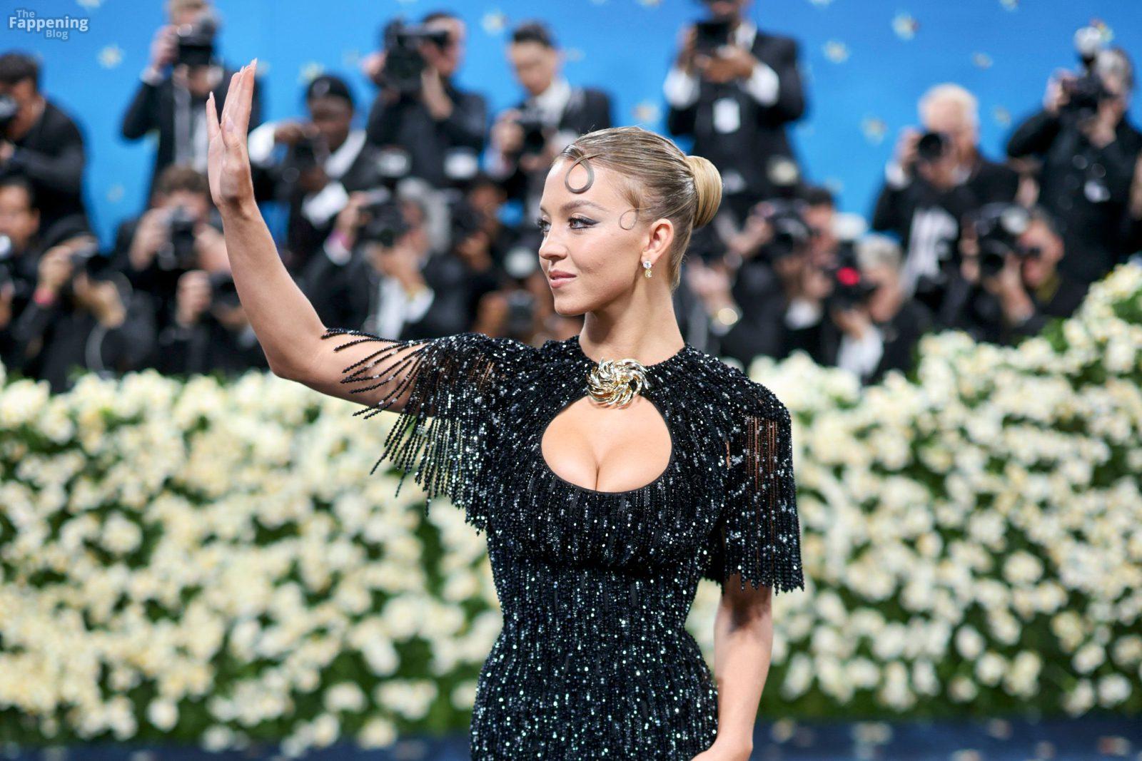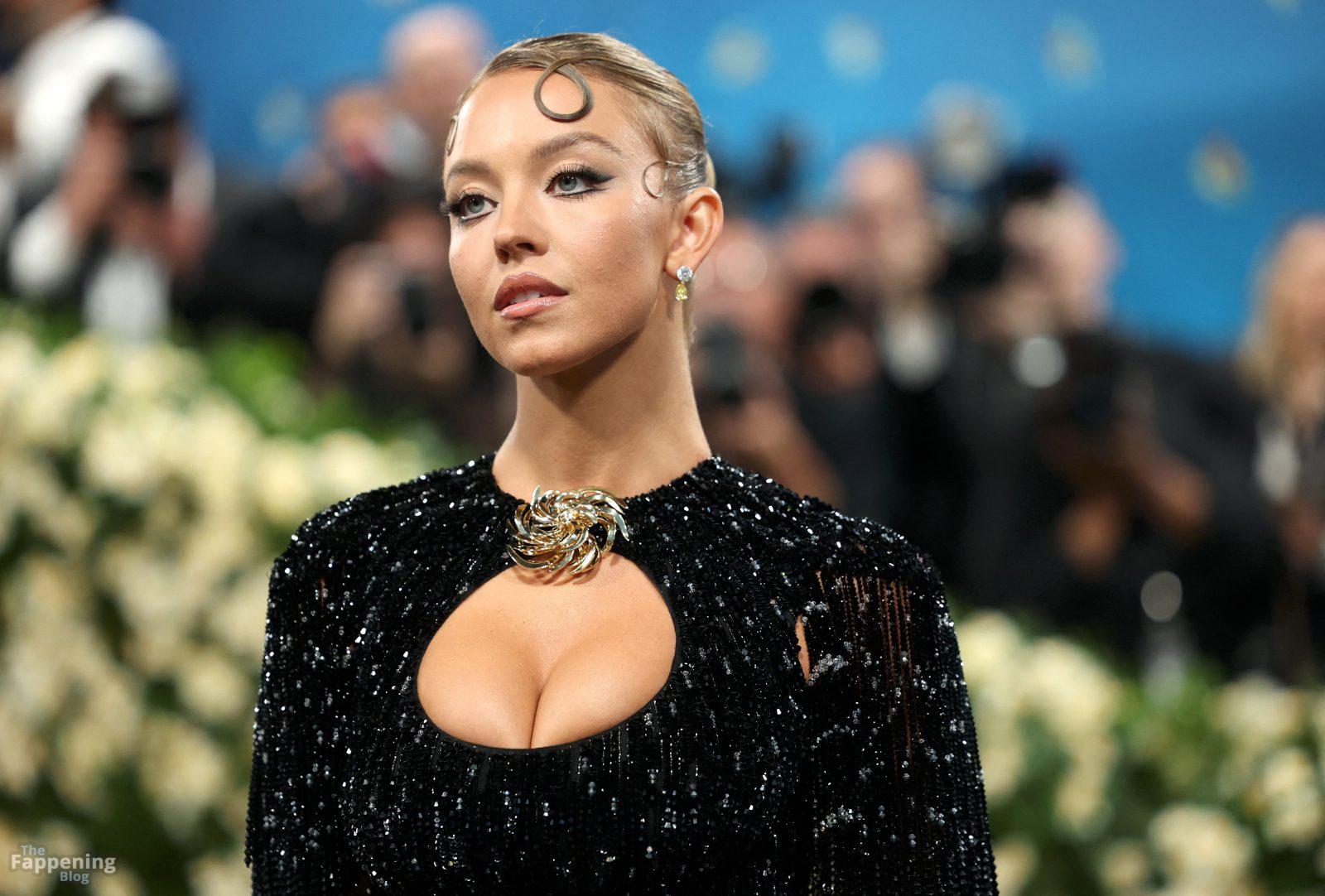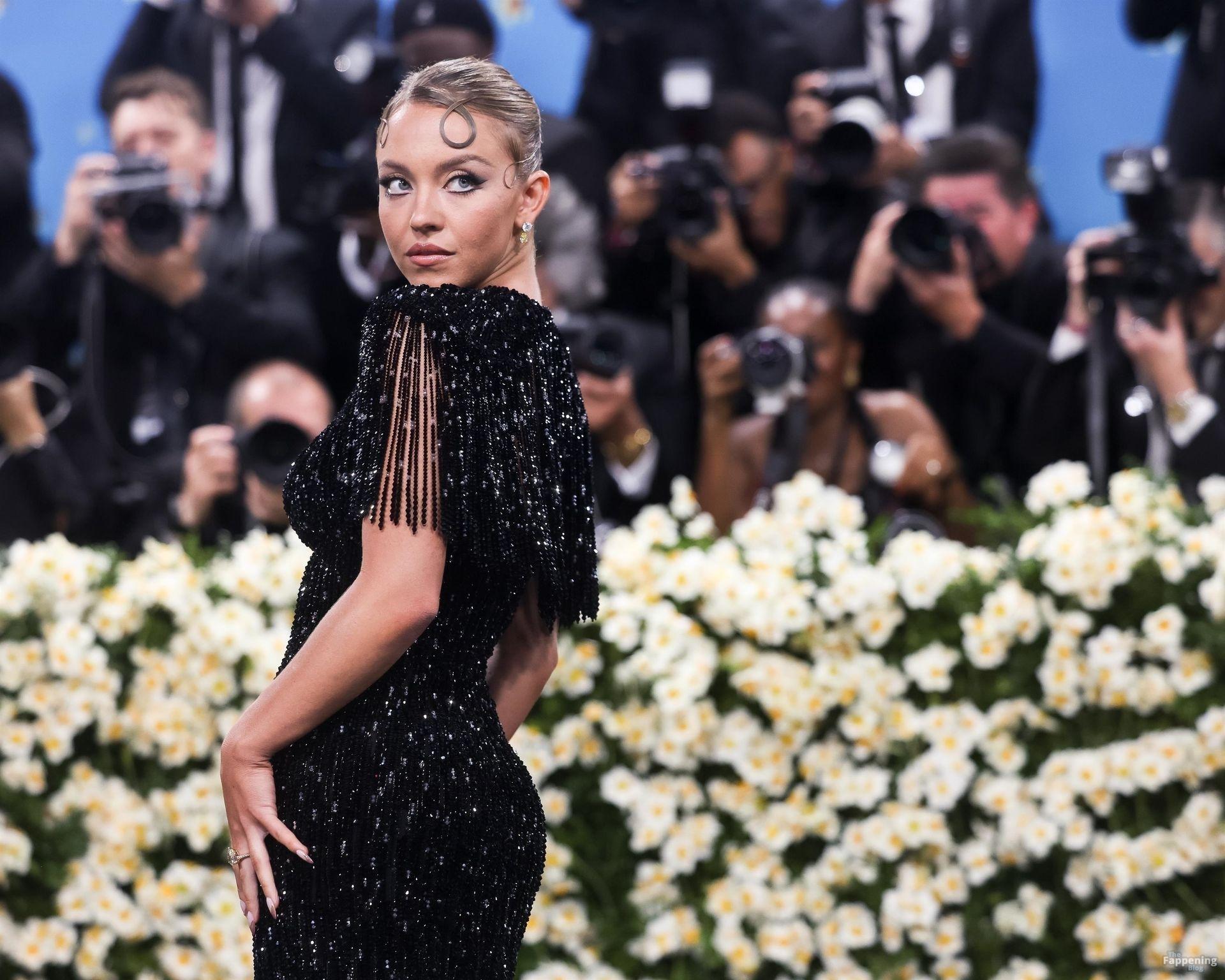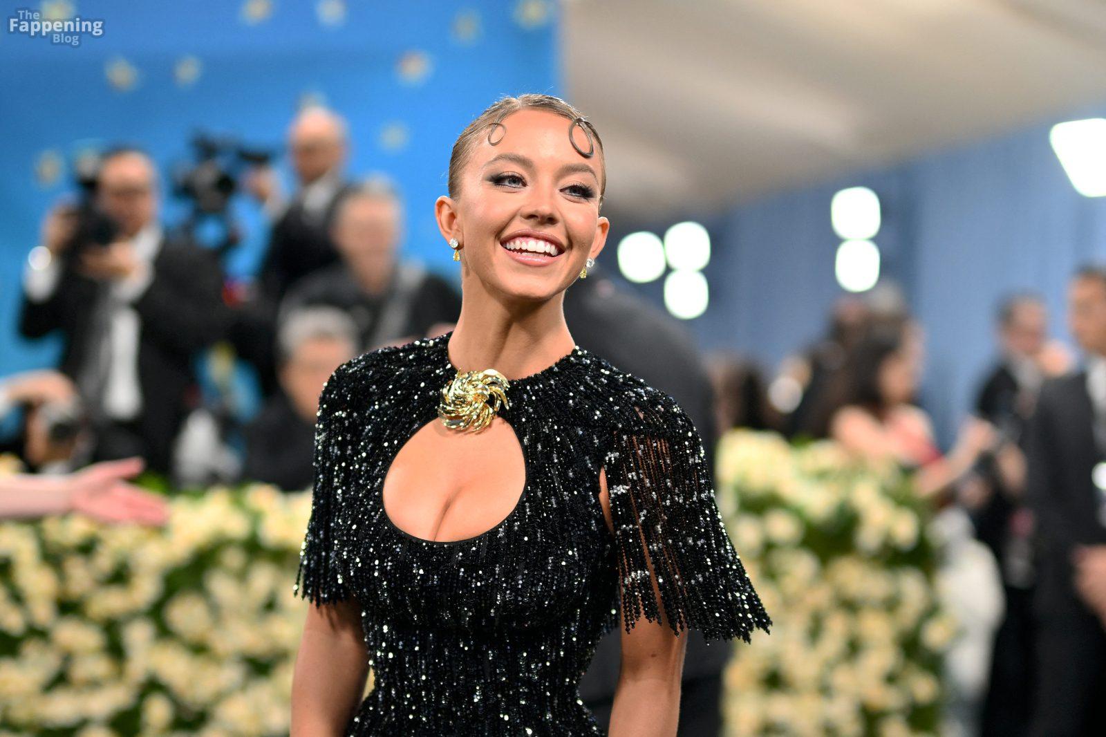 A estrela do Fappening Sydney Sweeney esteve no Met Gala 2025, chegando com um vestido preto de lantejoulas que realçava suas curvas.