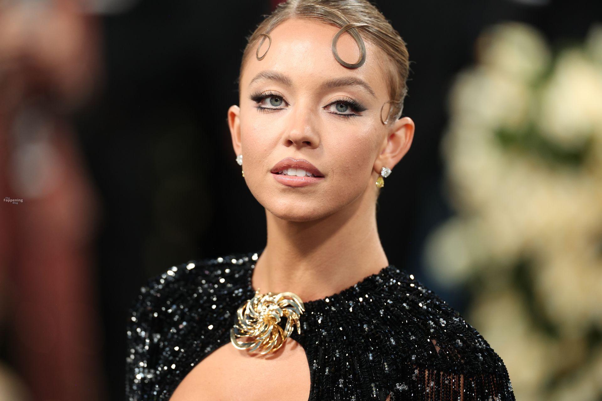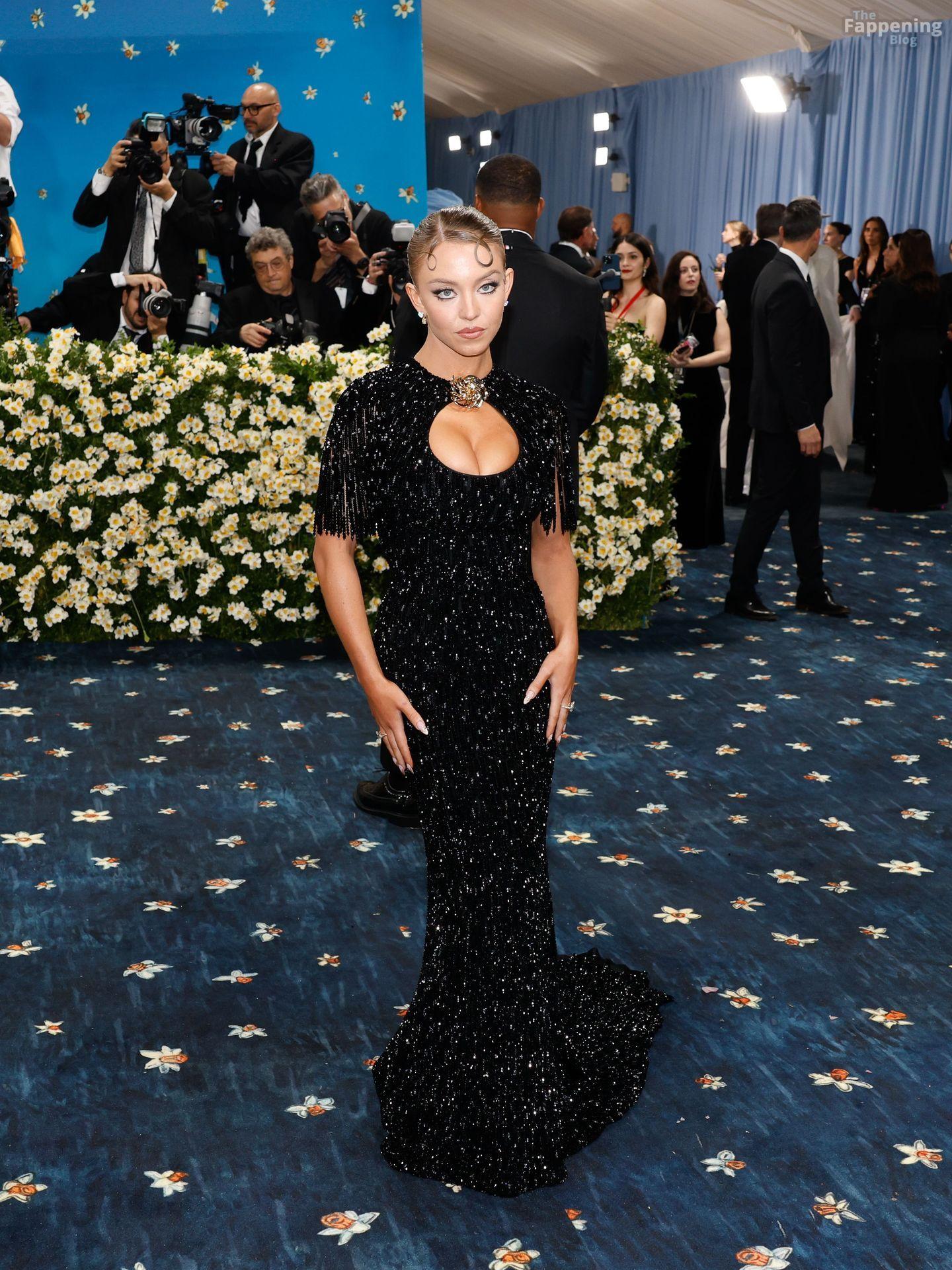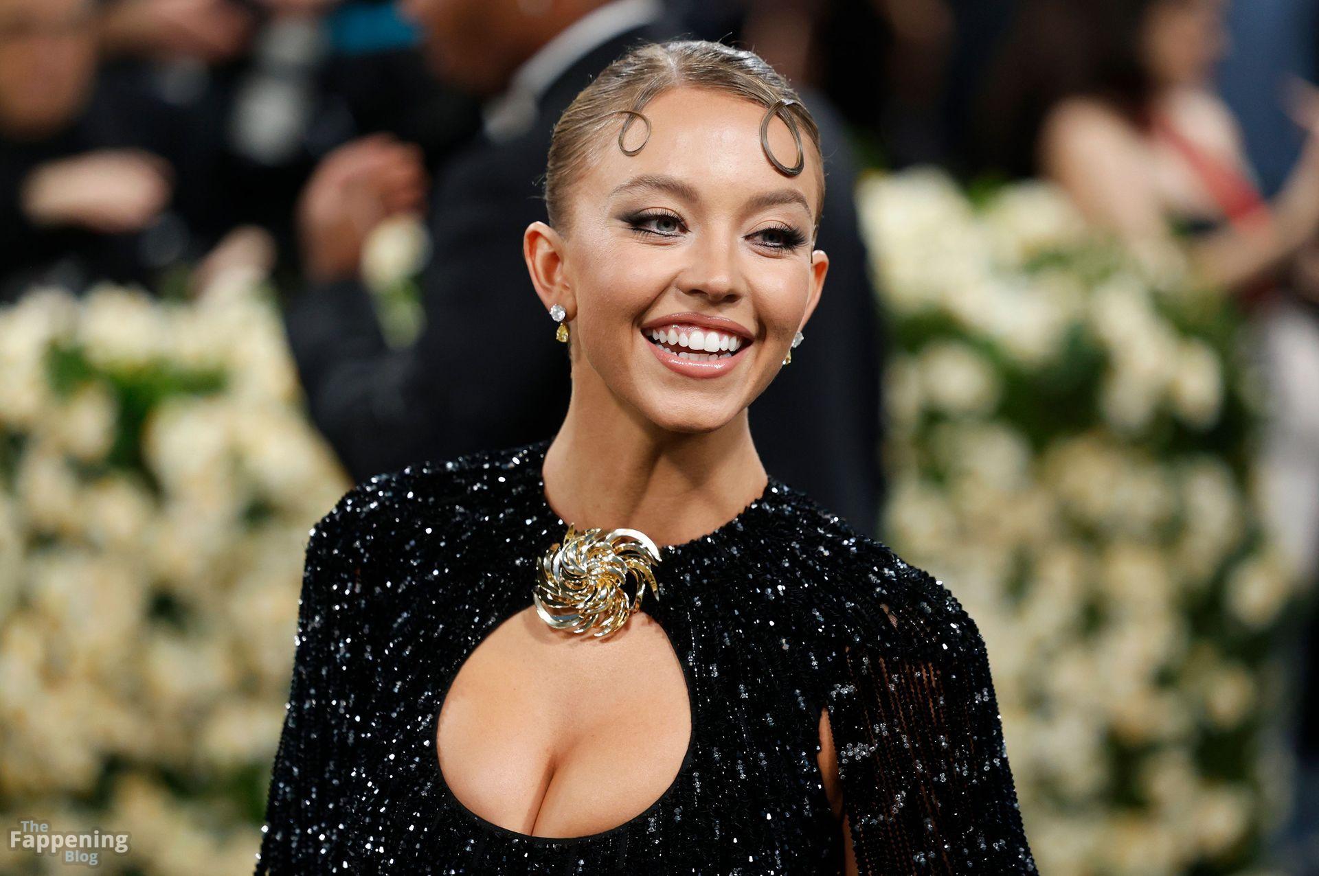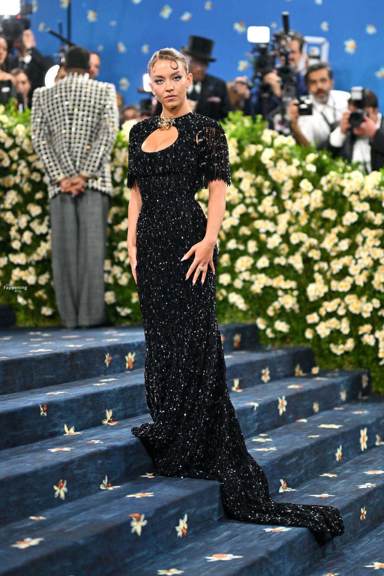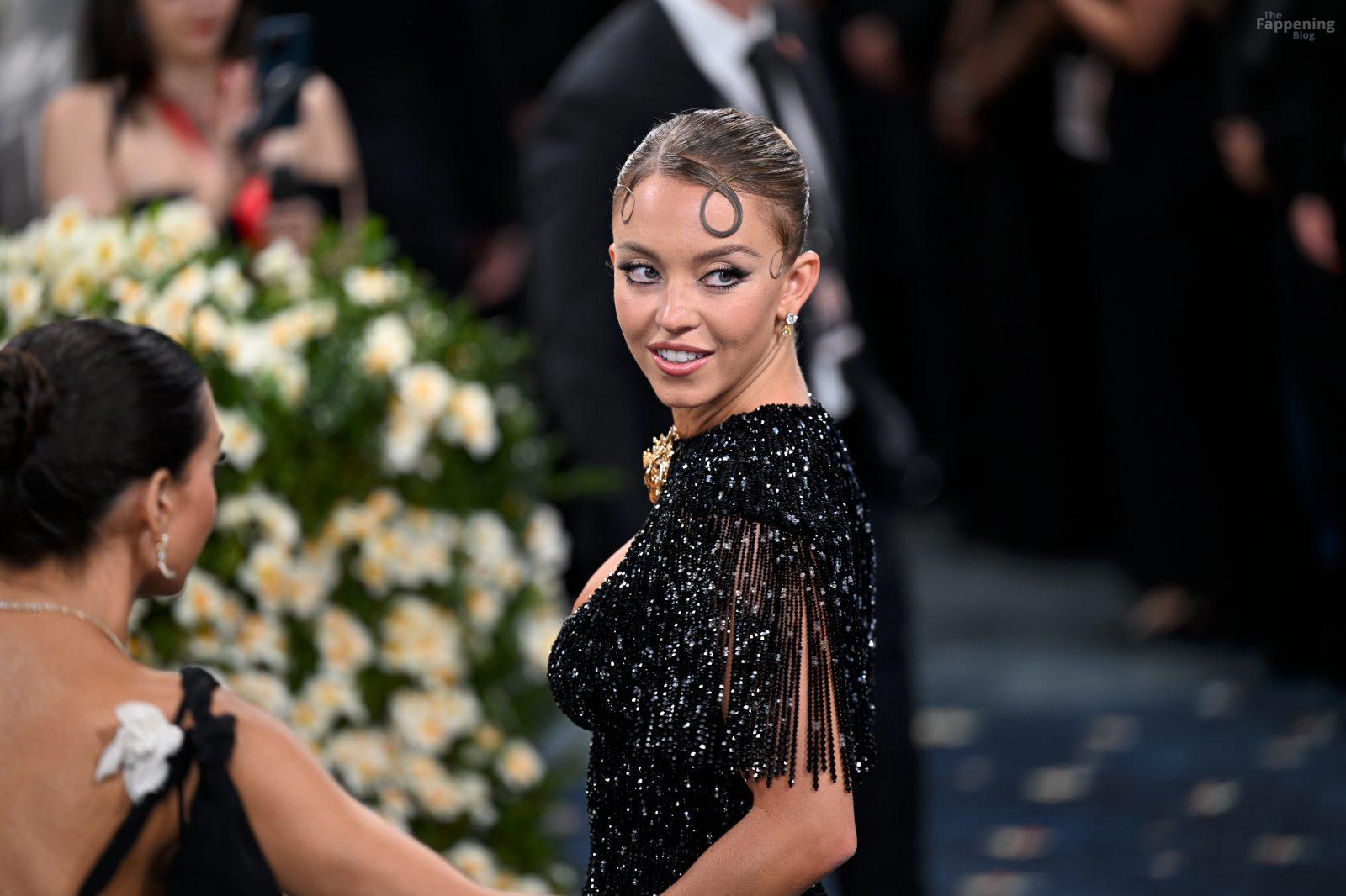 A estrela do Fappening Sydney Sweeney esteve no Met Gala 2025, chegando com um vestido preto de lantejoulas que realçava suas curvas.