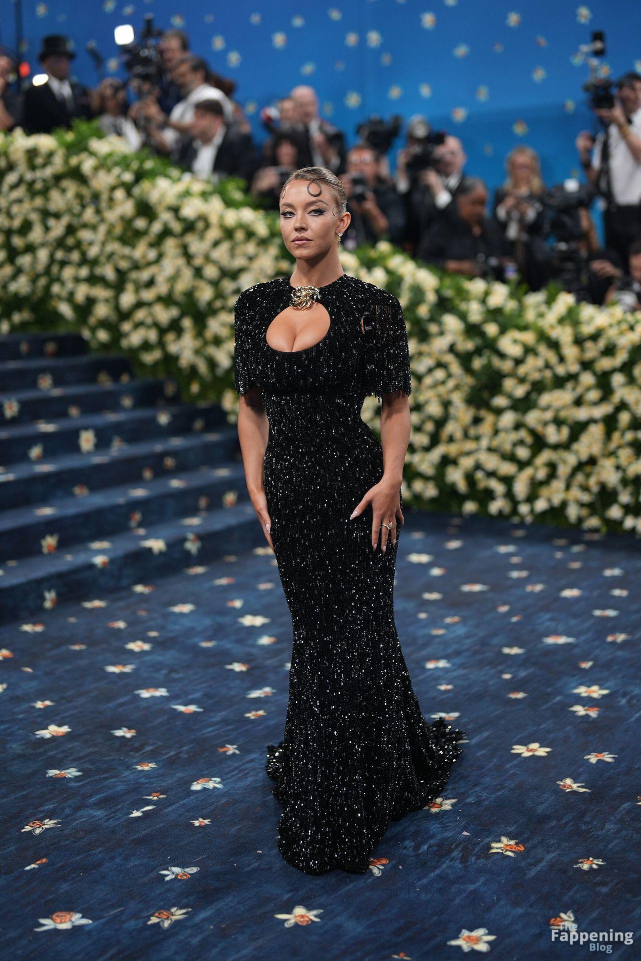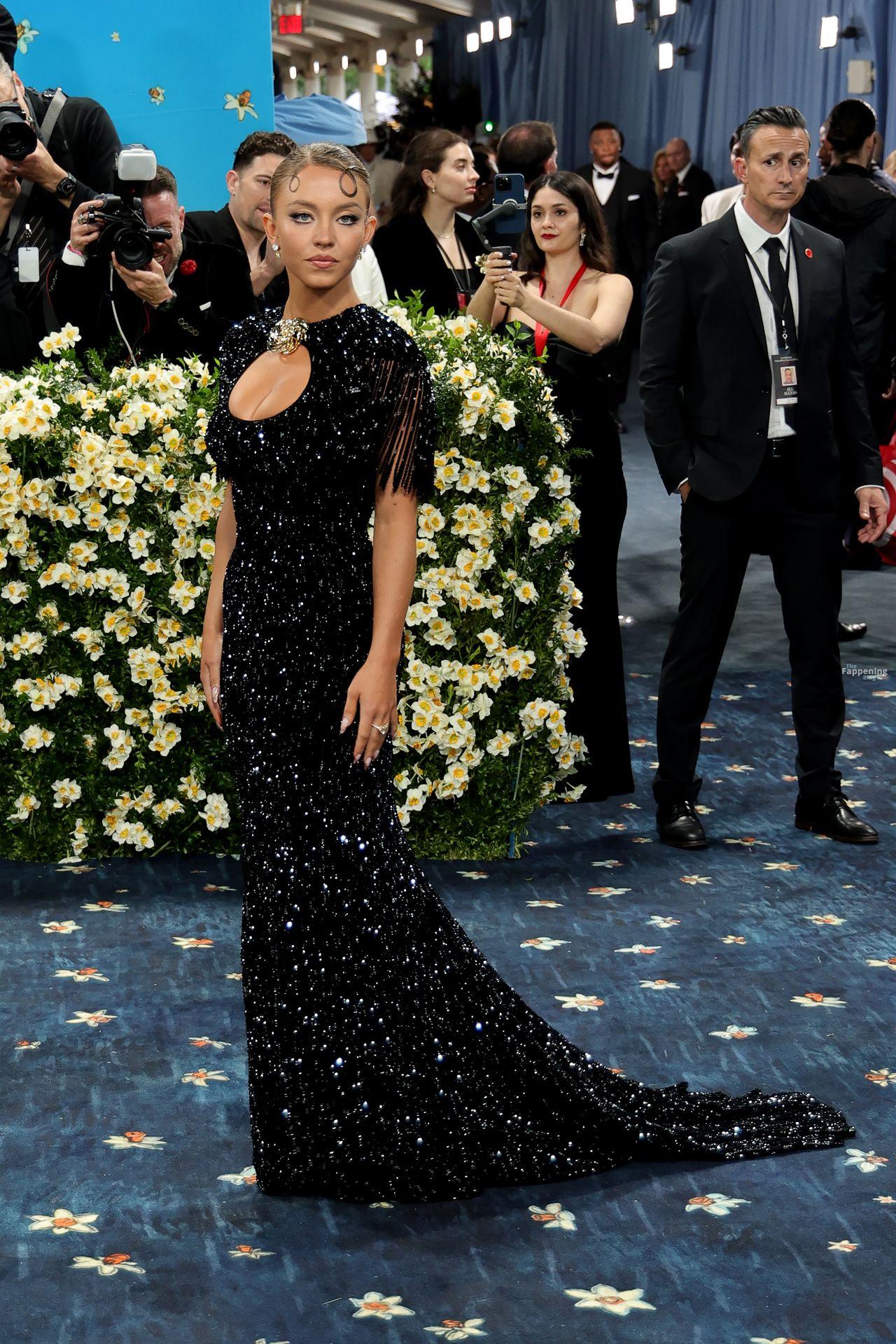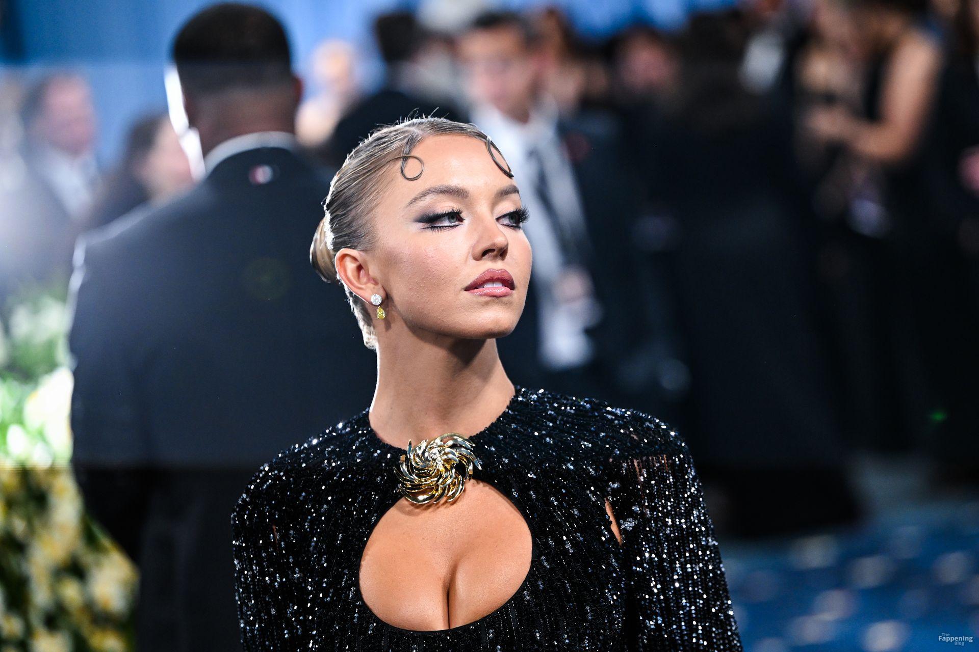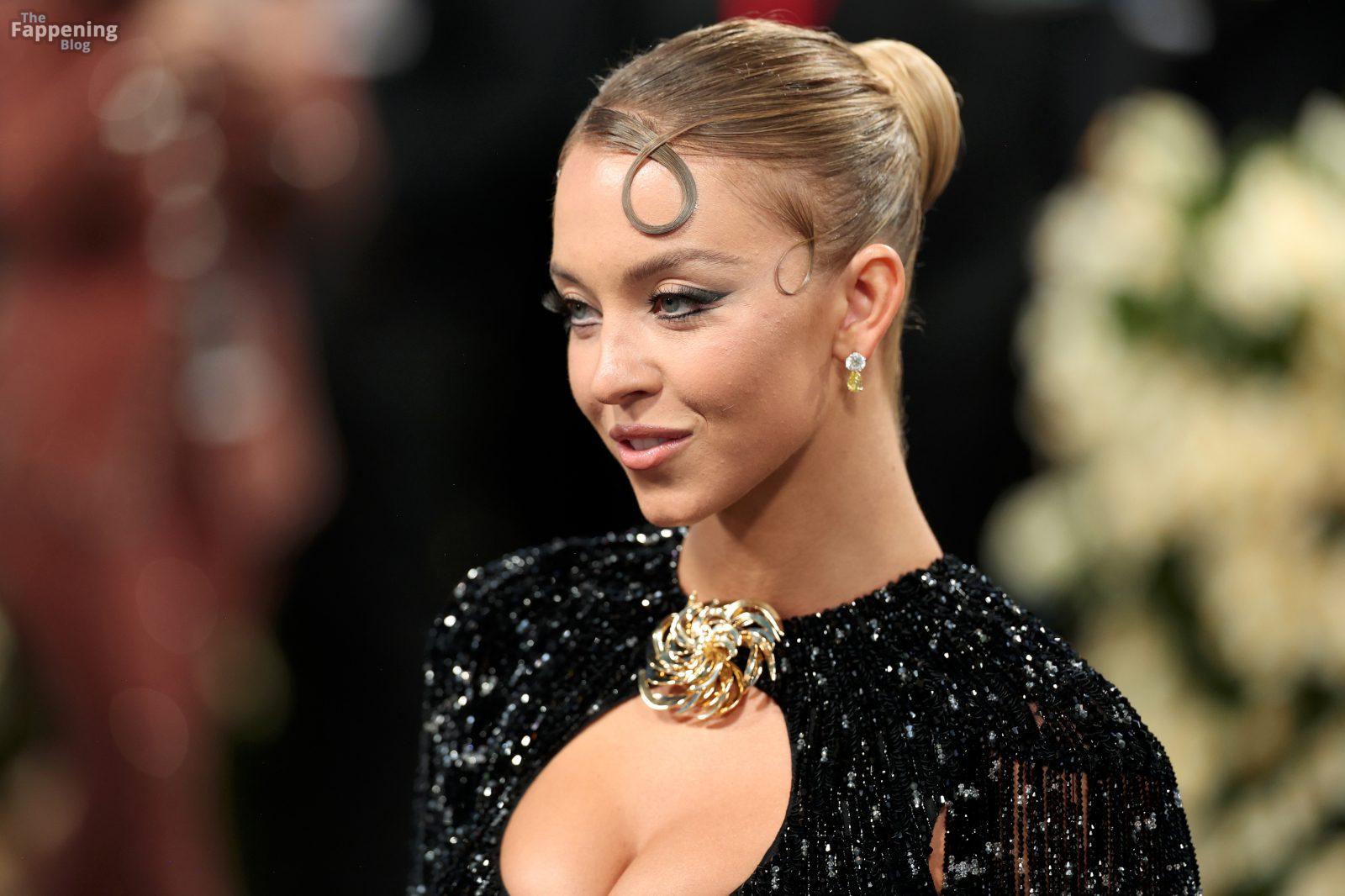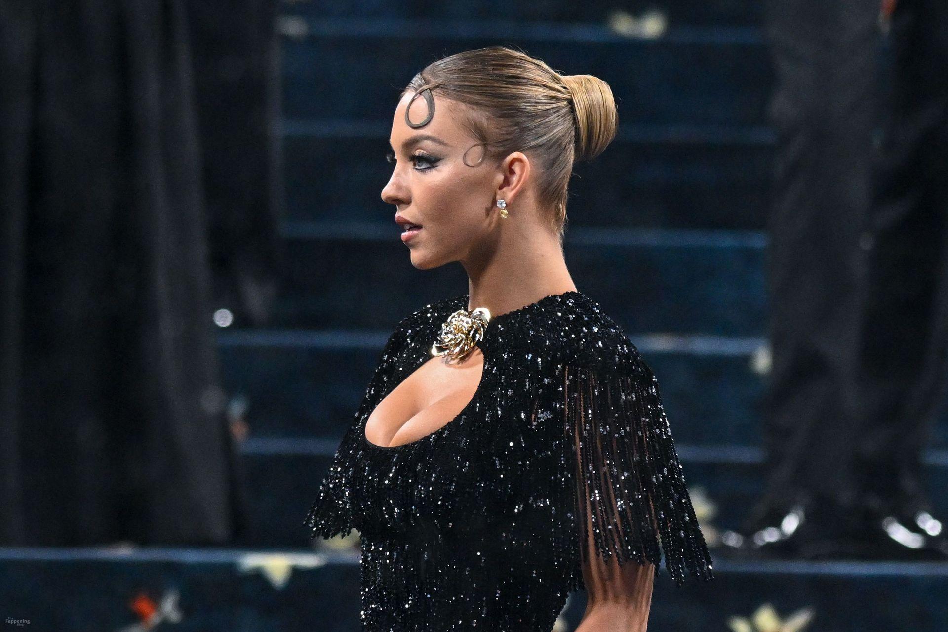 A estrela do Fappening Sydney Sweeney esteve no Met Gala 2025, chegando com um vestido preto de lantejoulas que realçava suas curvas.