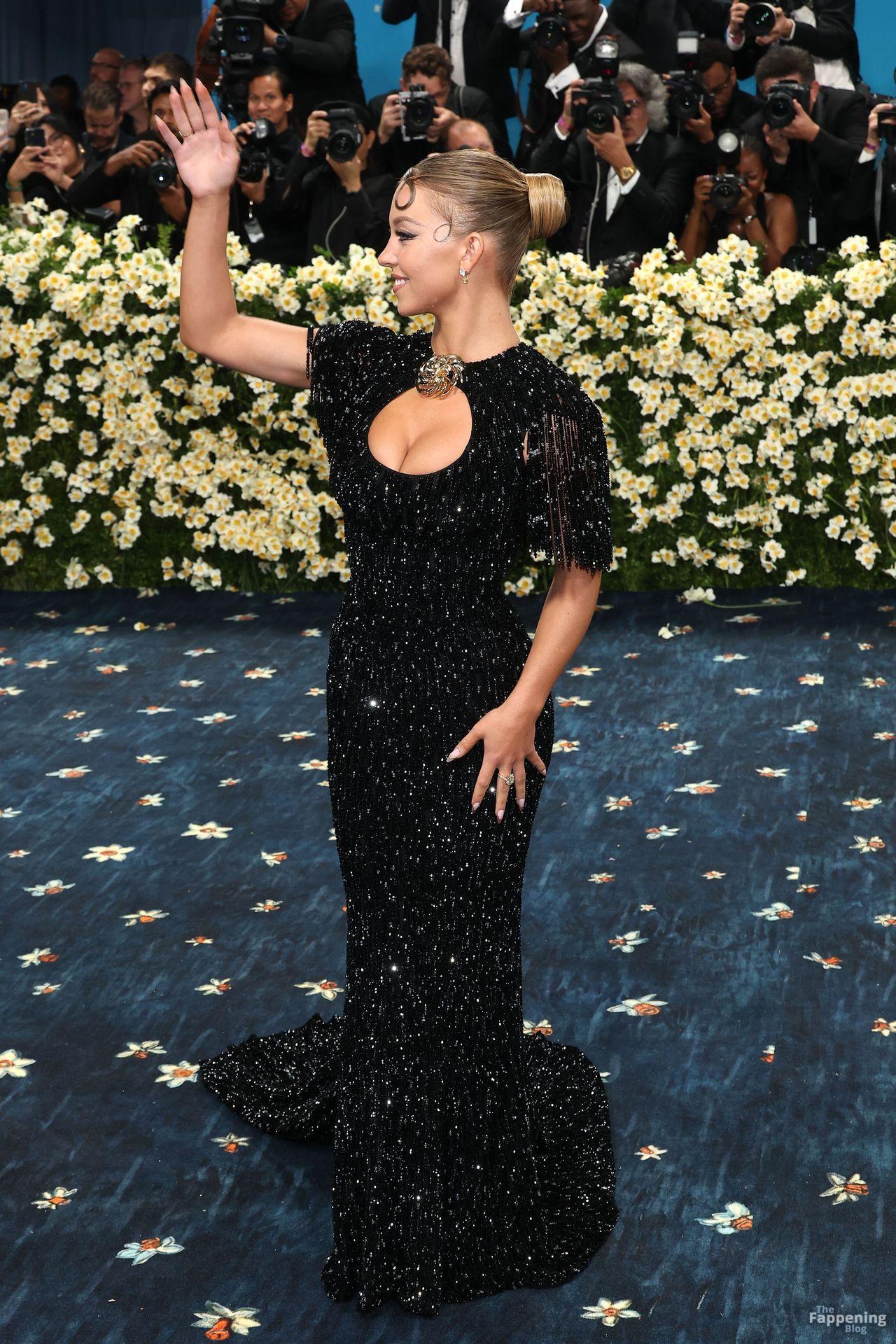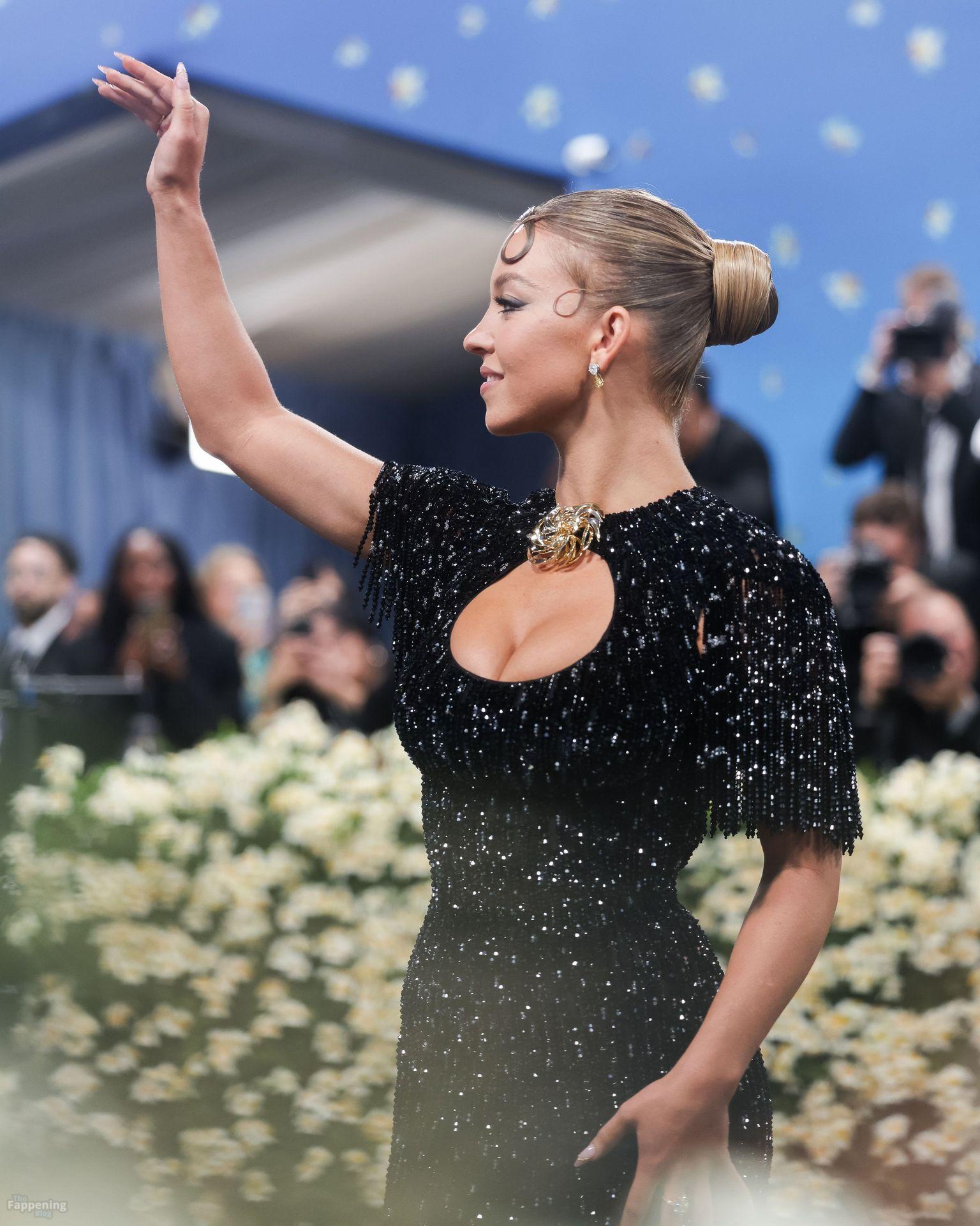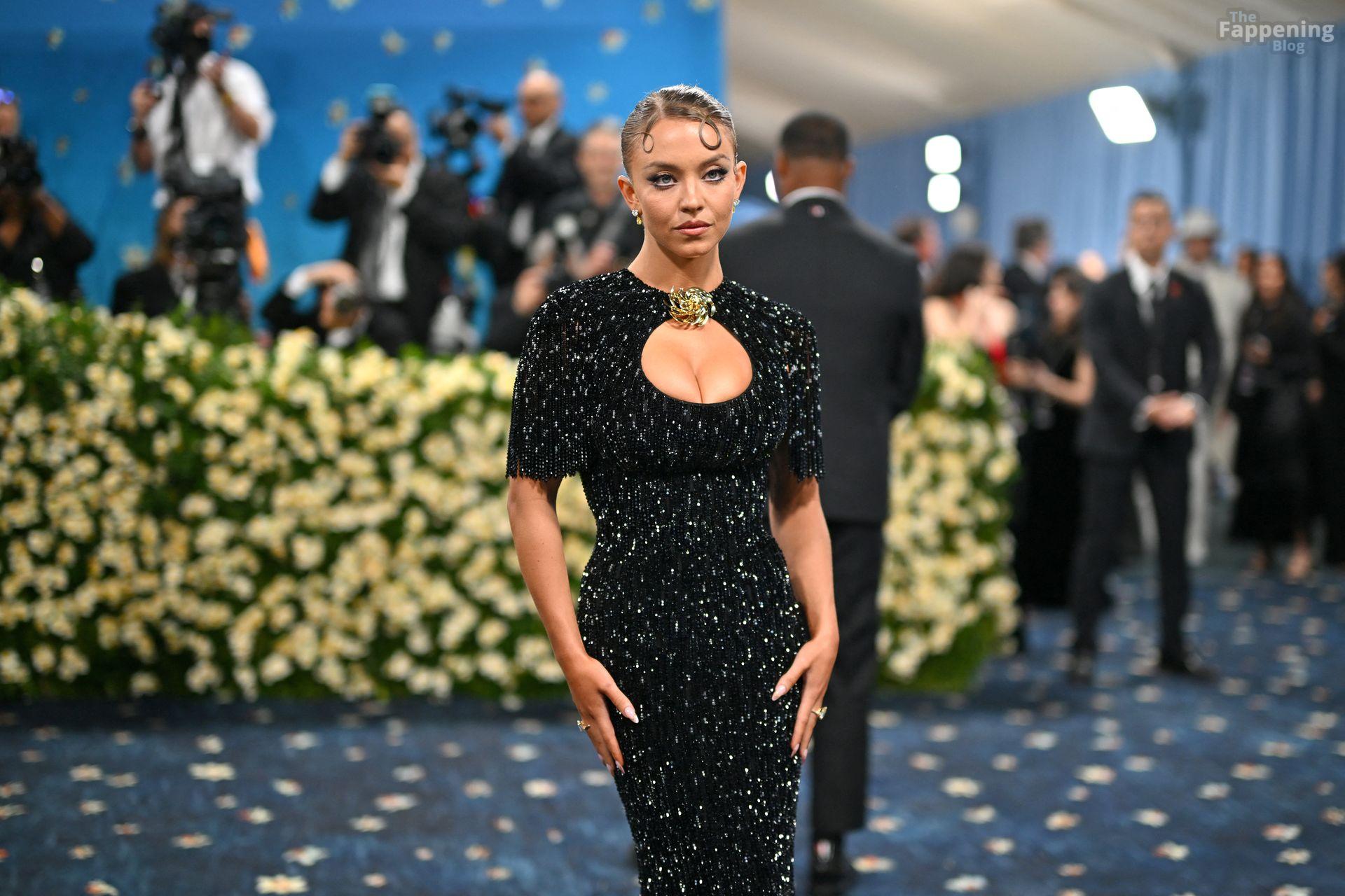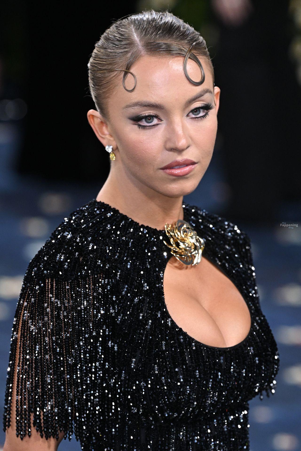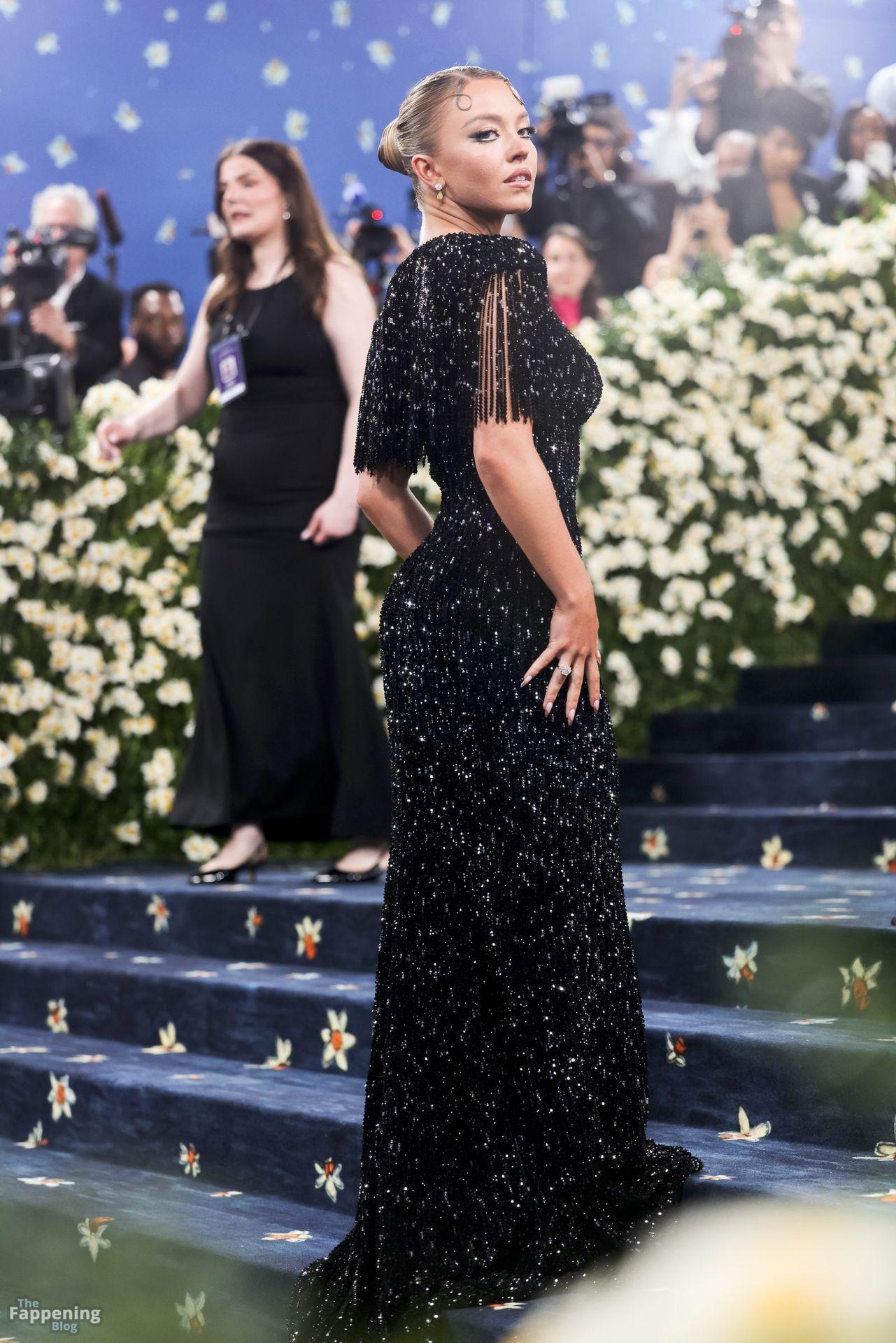 A estrela do Fappening Sydney Sweeney esteve no Met Gala 2025, chegando com um vestido preto de lantejoulas que realçava suas curvas.