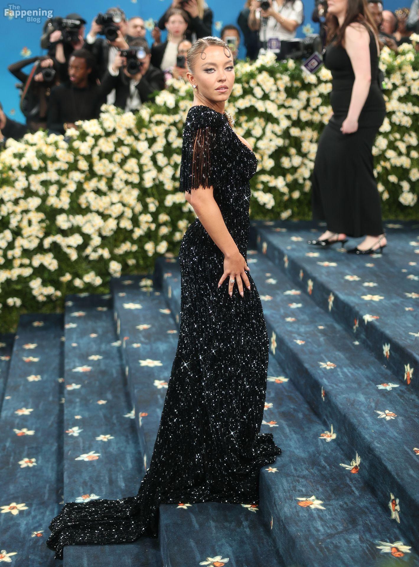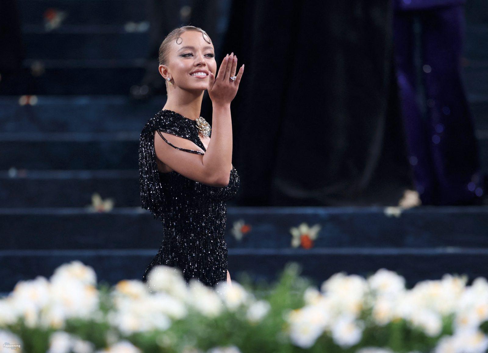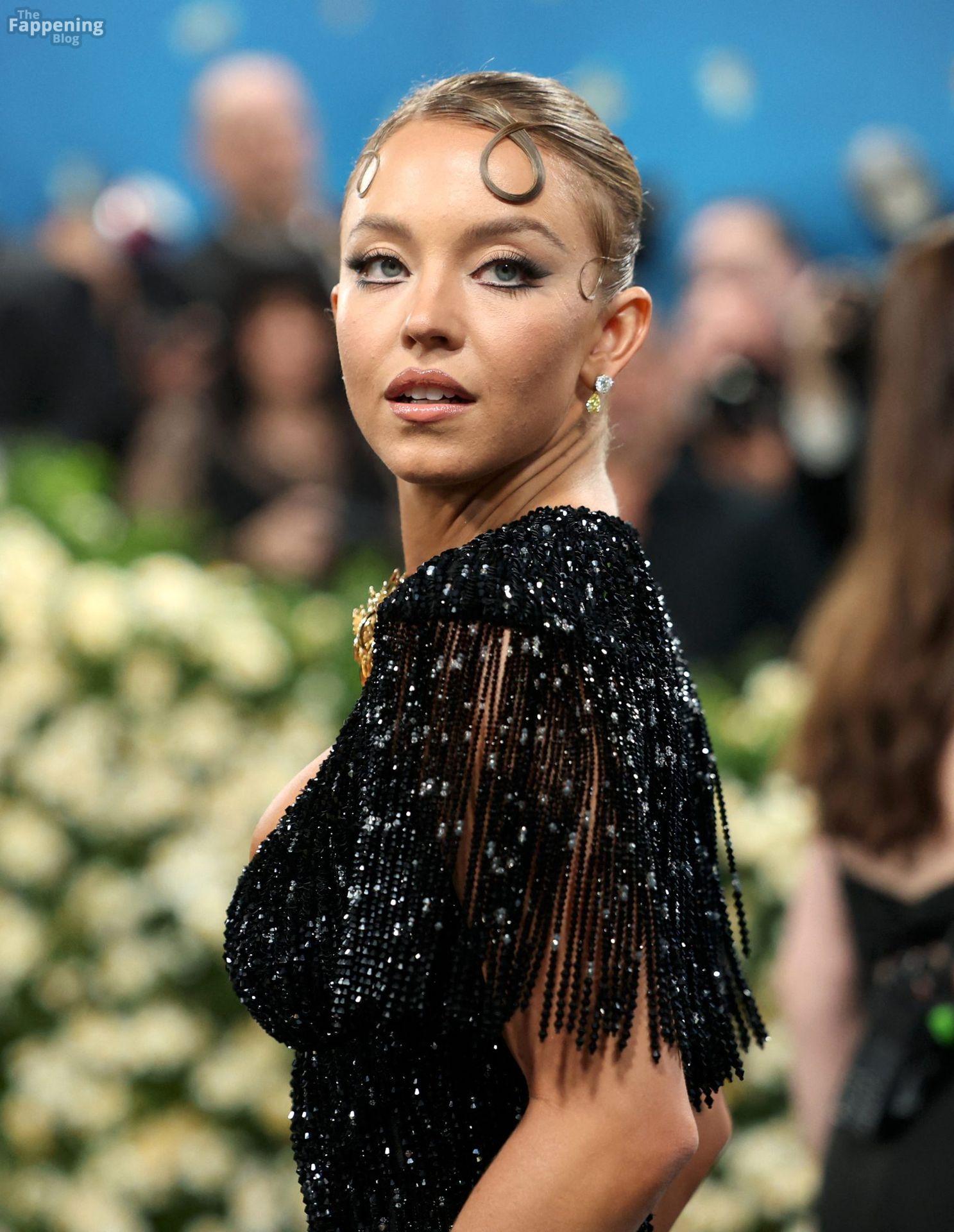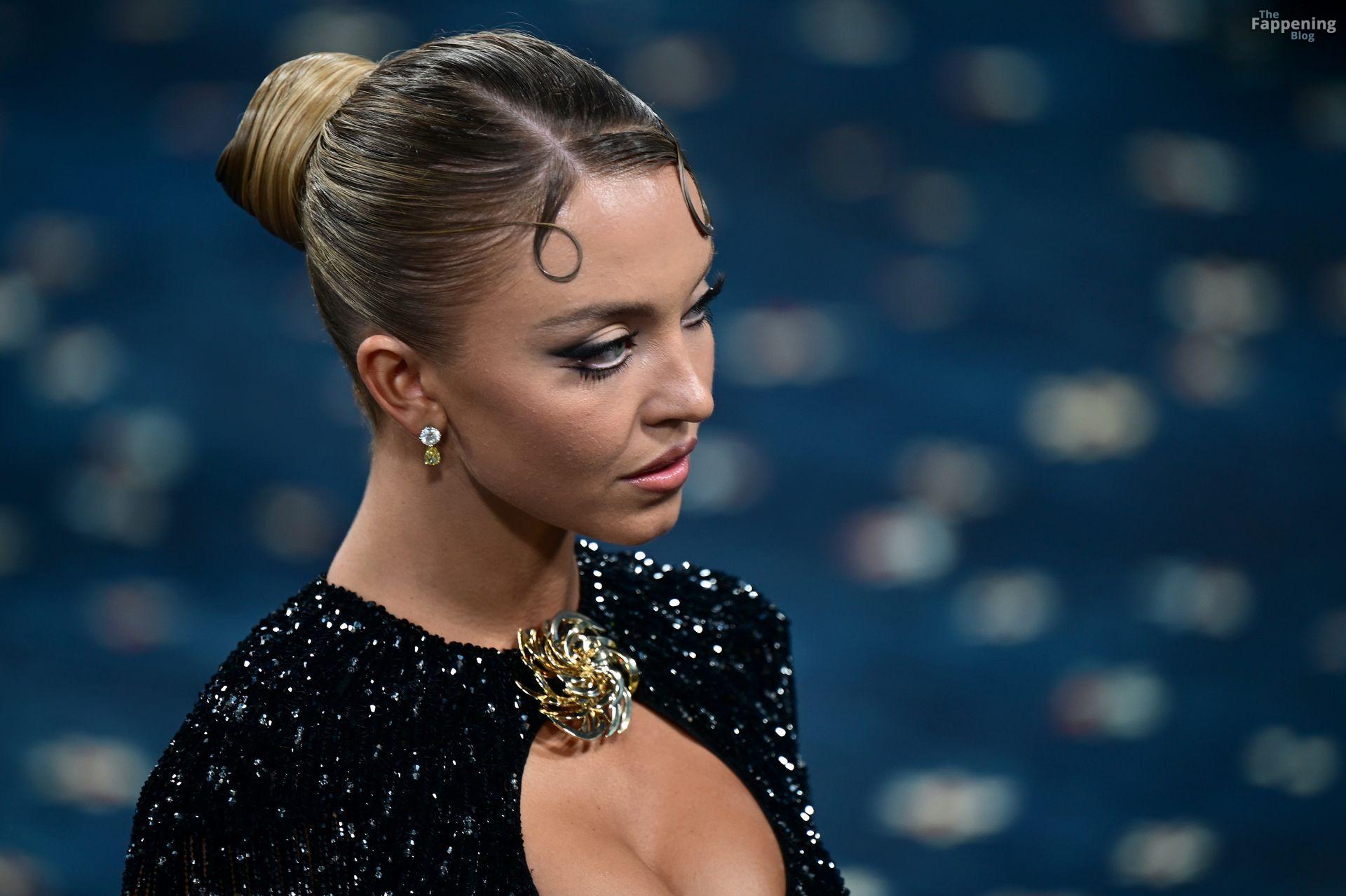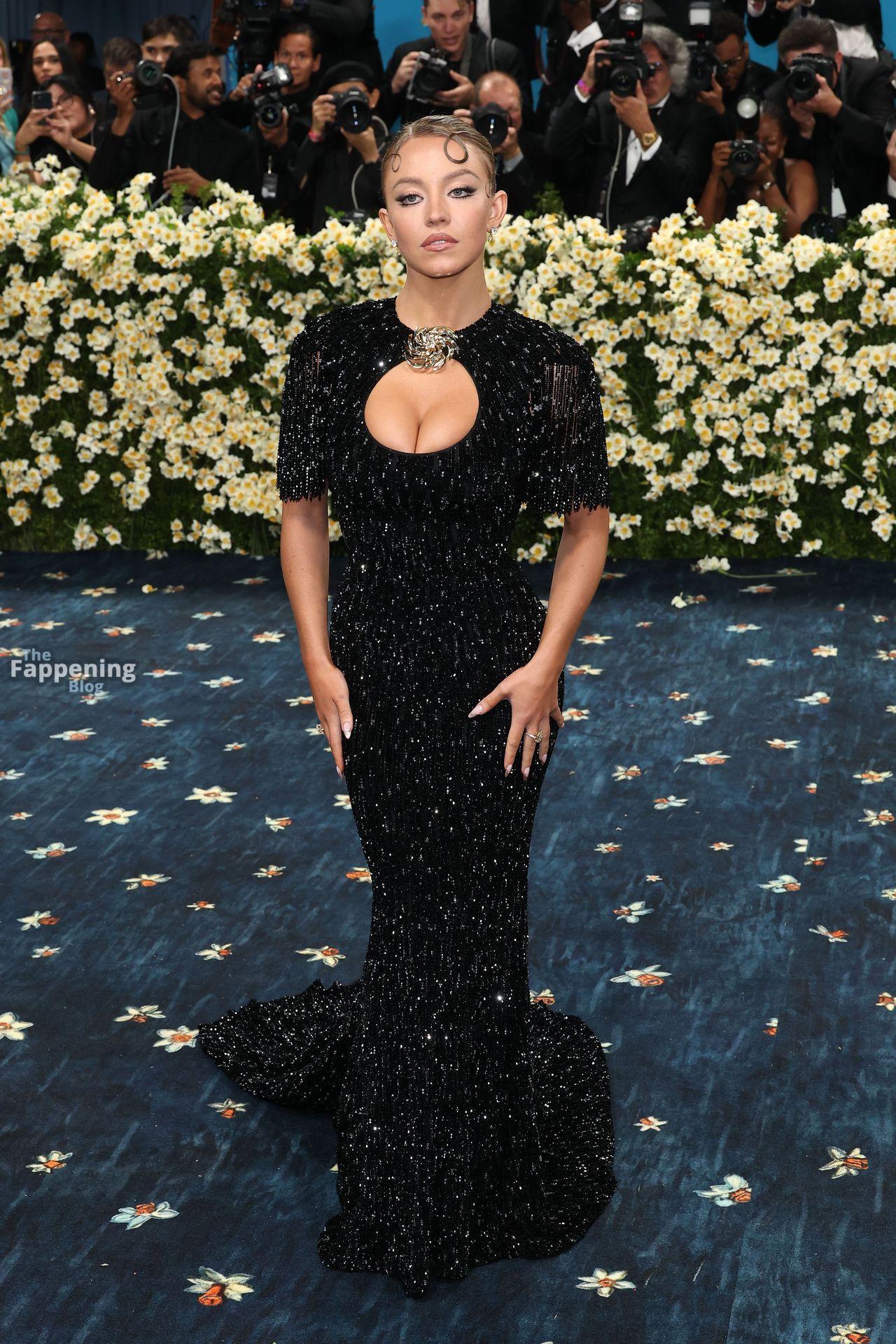 A estrela do Fappening Sydney Sweeney esteve no Met Gala 2025, chegando com um vestido preto de lantejoulas que realçava suas curvas.