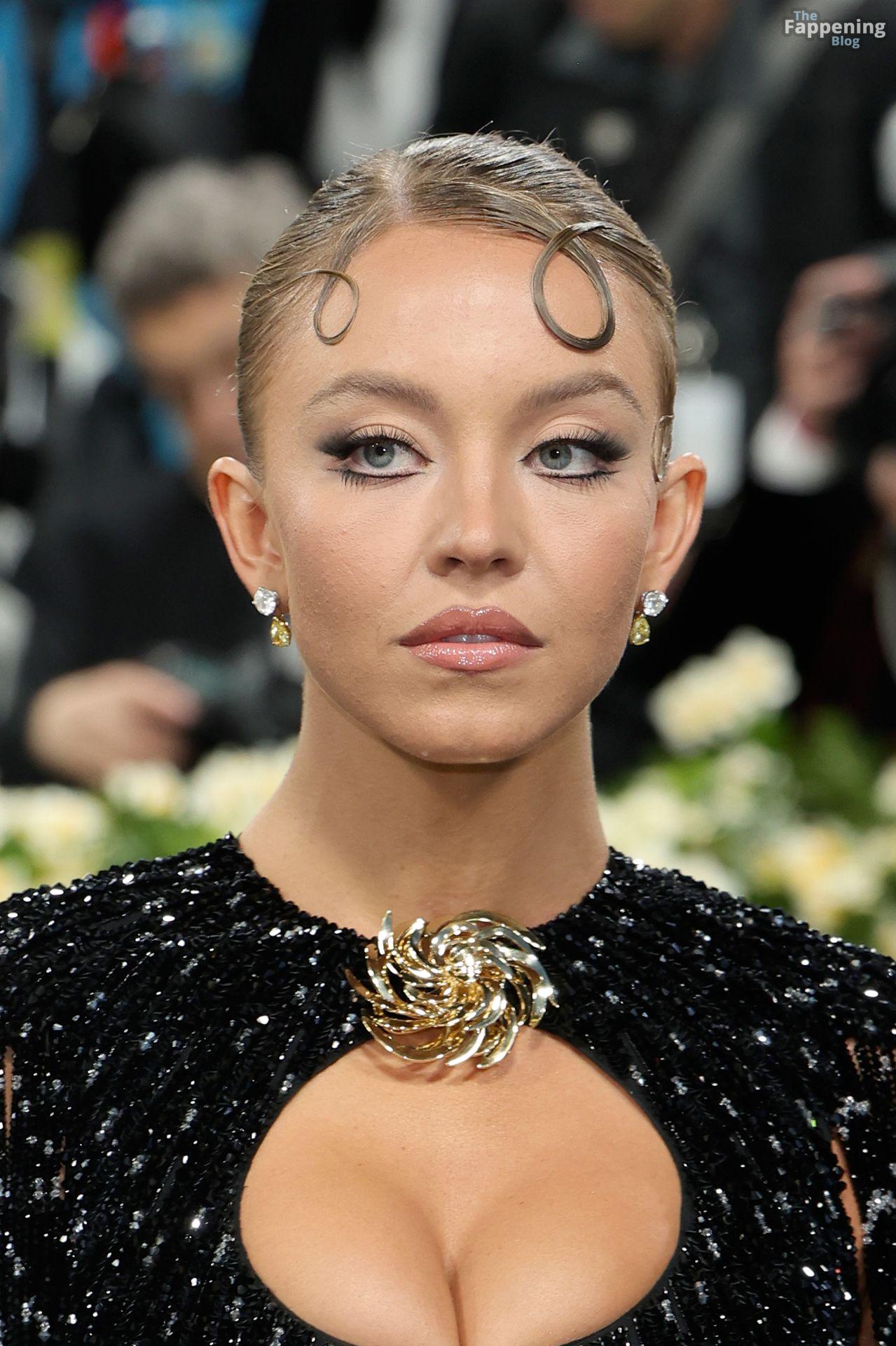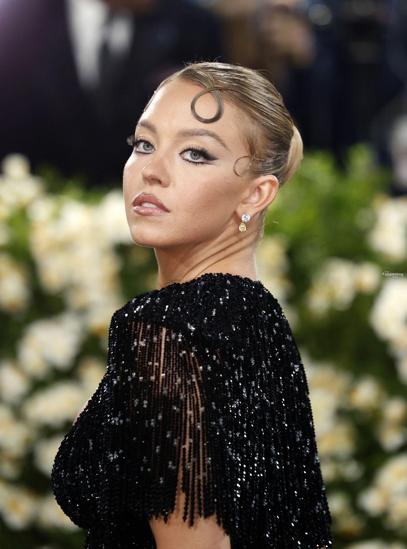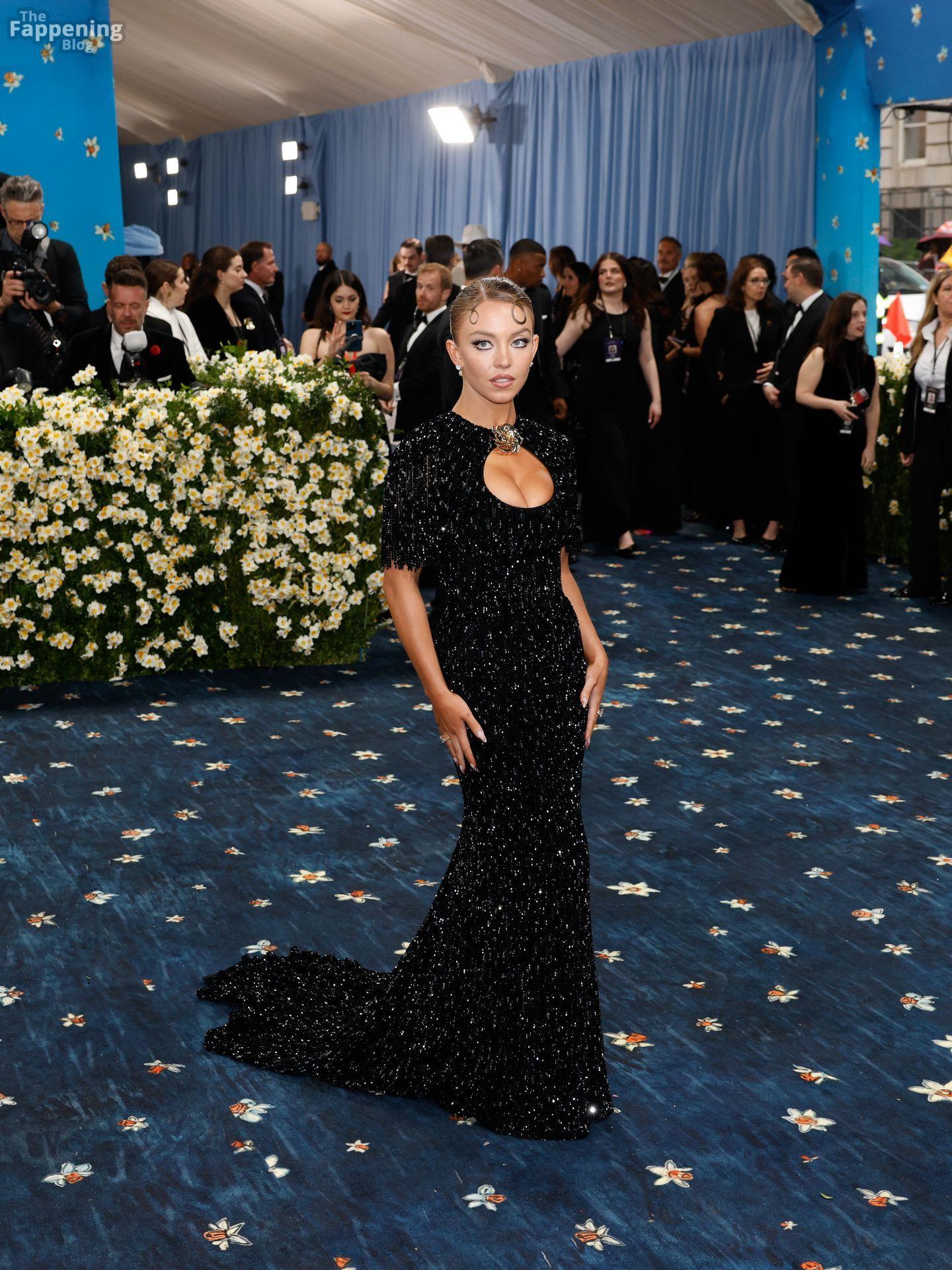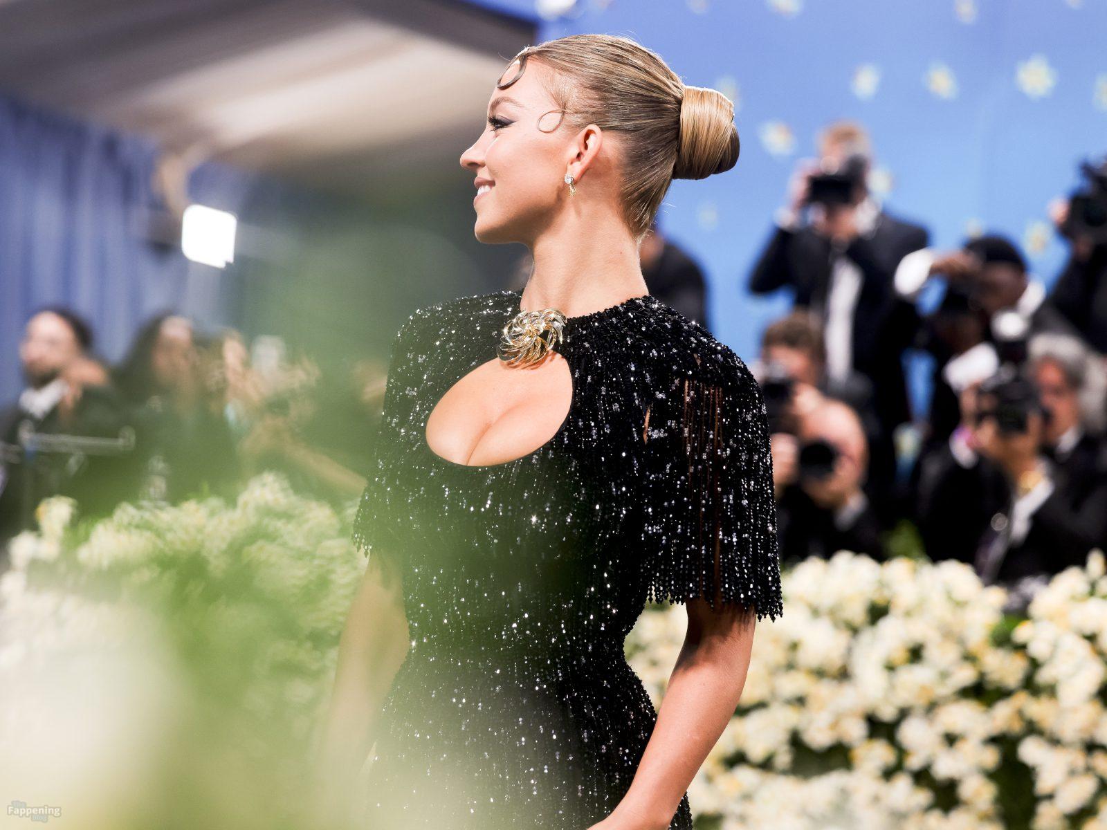 A estrela do Fappening Sydney Sweeney esteve no Met Gala 2025, chegando com um vestido preto de lantejoulas que realçava suas curvas.