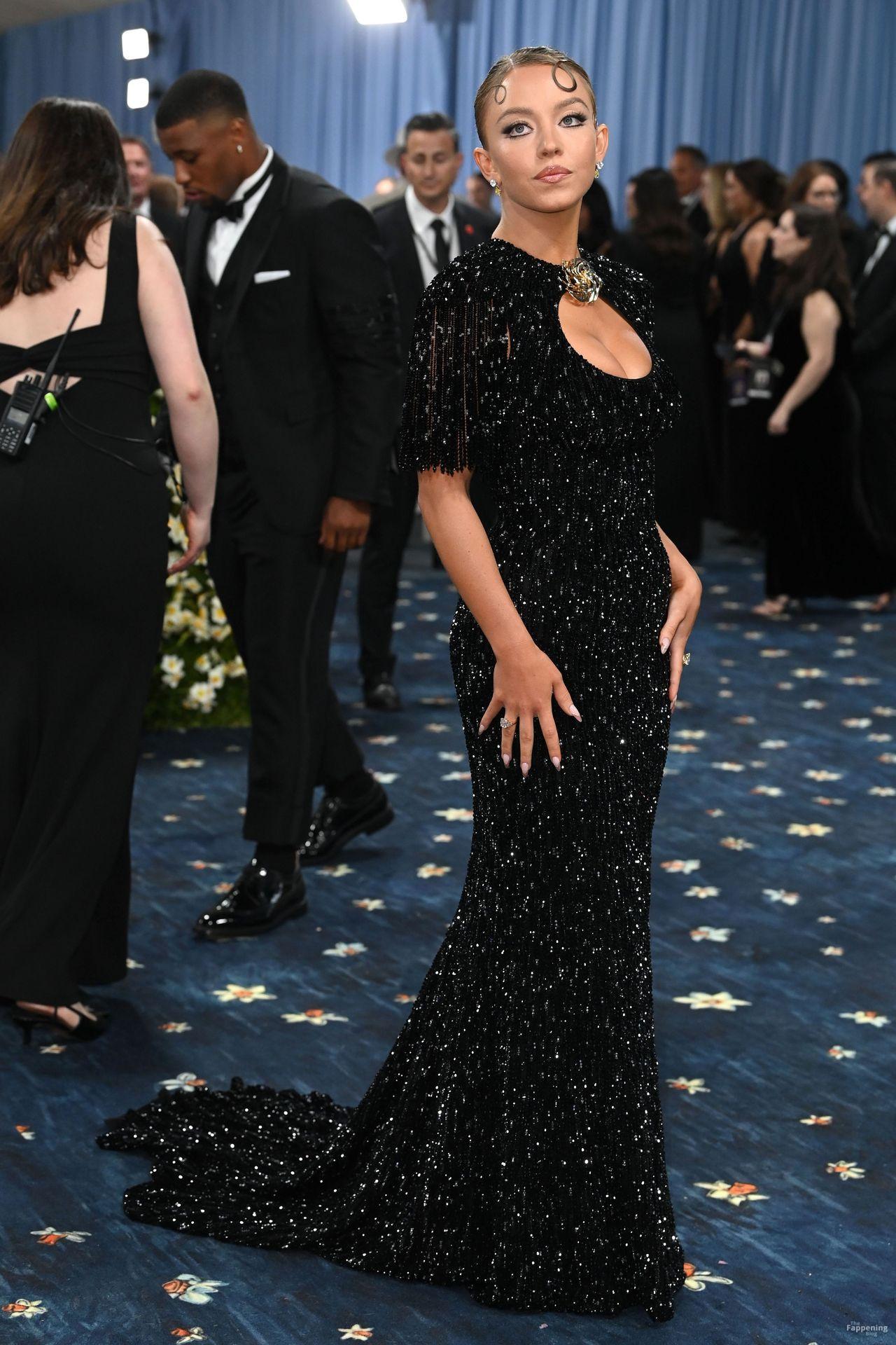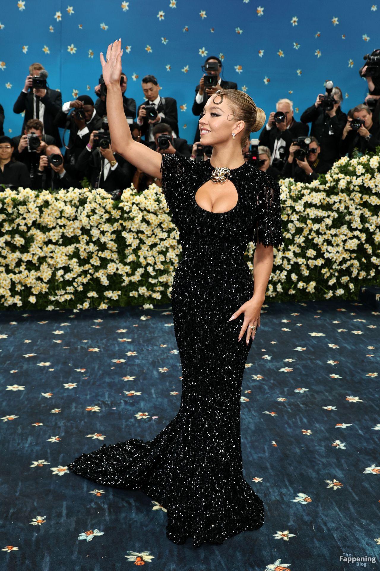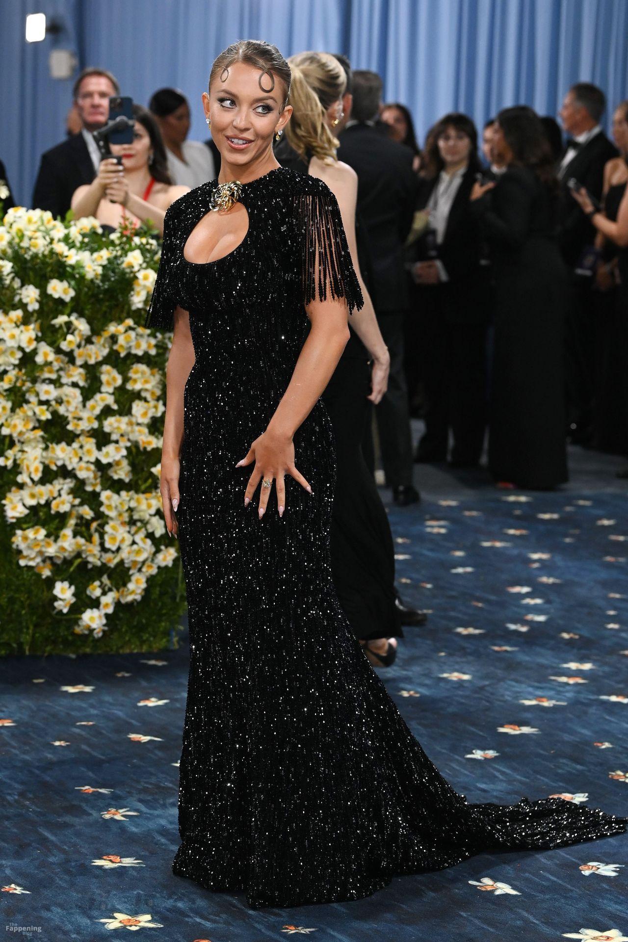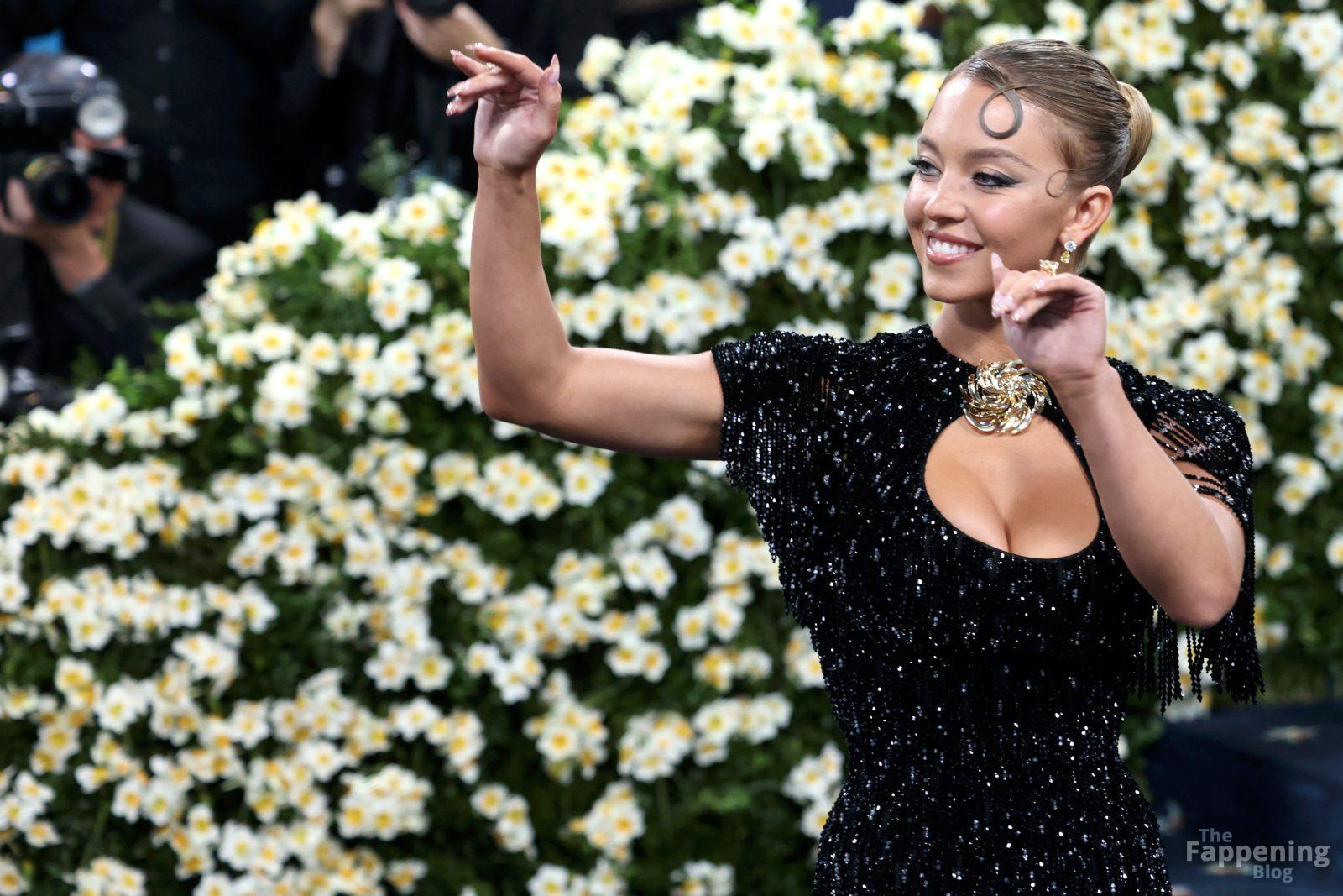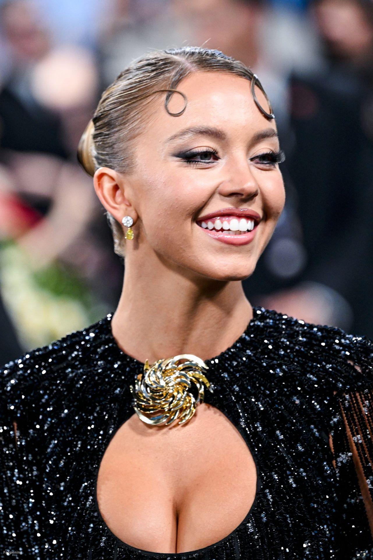 A estrela do Fappening Sydney Sweeney esteve no Met Gala 2025, chegando com um vestido preto de lantejoulas que realçava suas curvas.