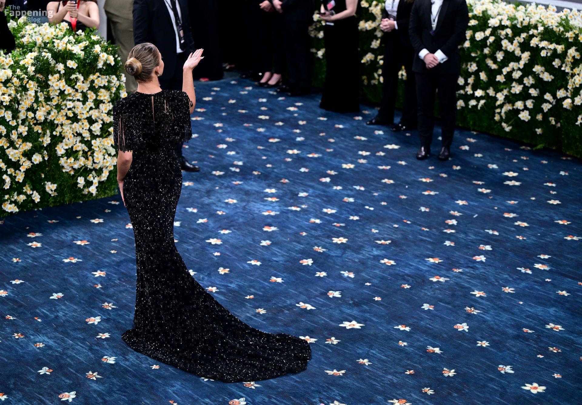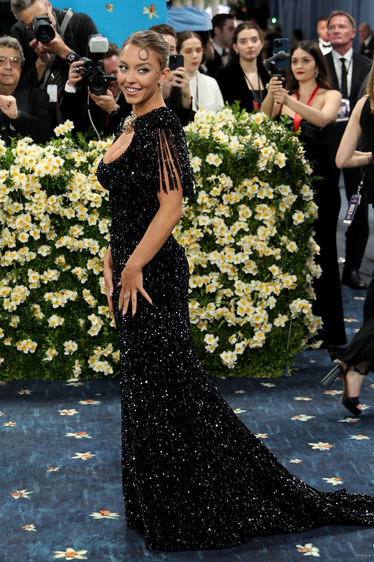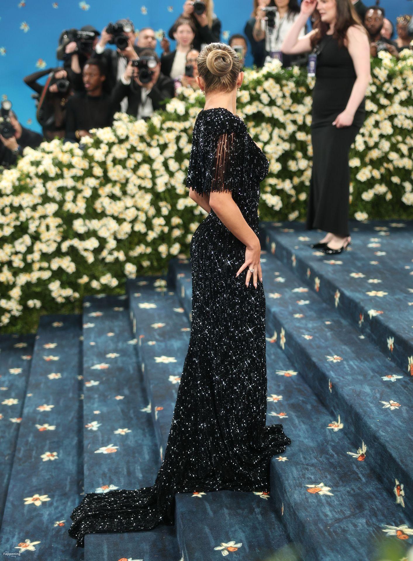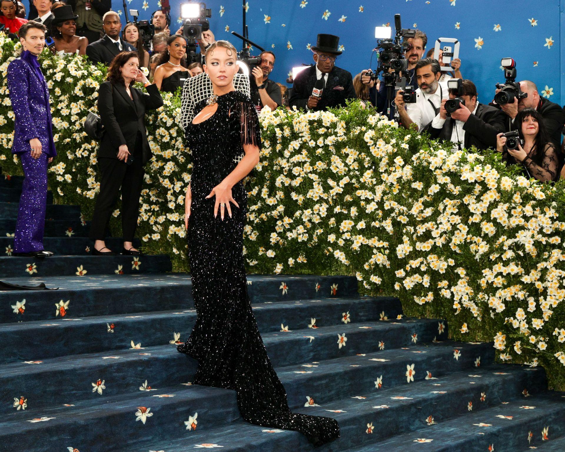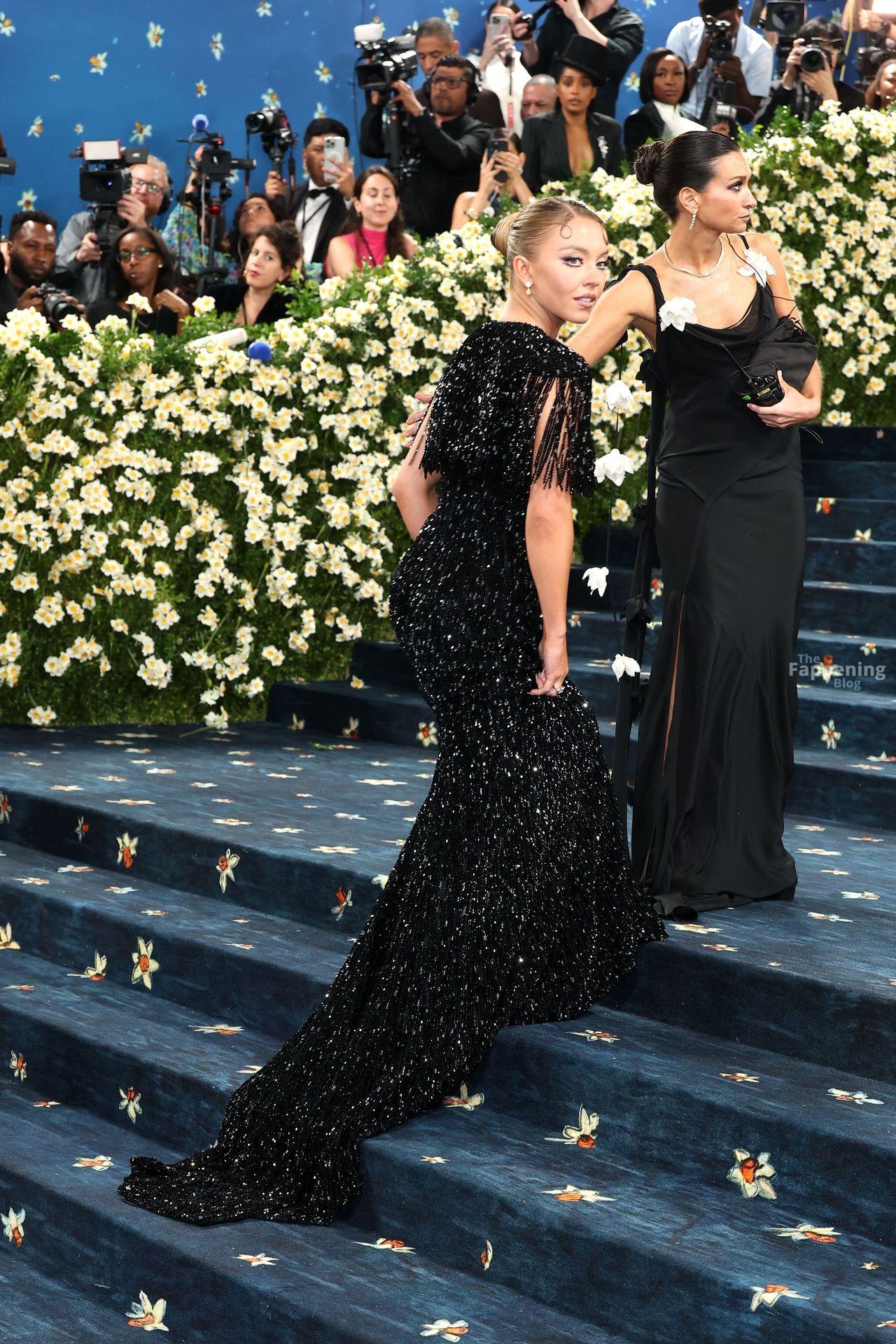 A estrela do Fappening Sydney Sweeney esteve no Met Gala 2025, chegando com um vestido preto de lantejoulas que realçava suas curvas.