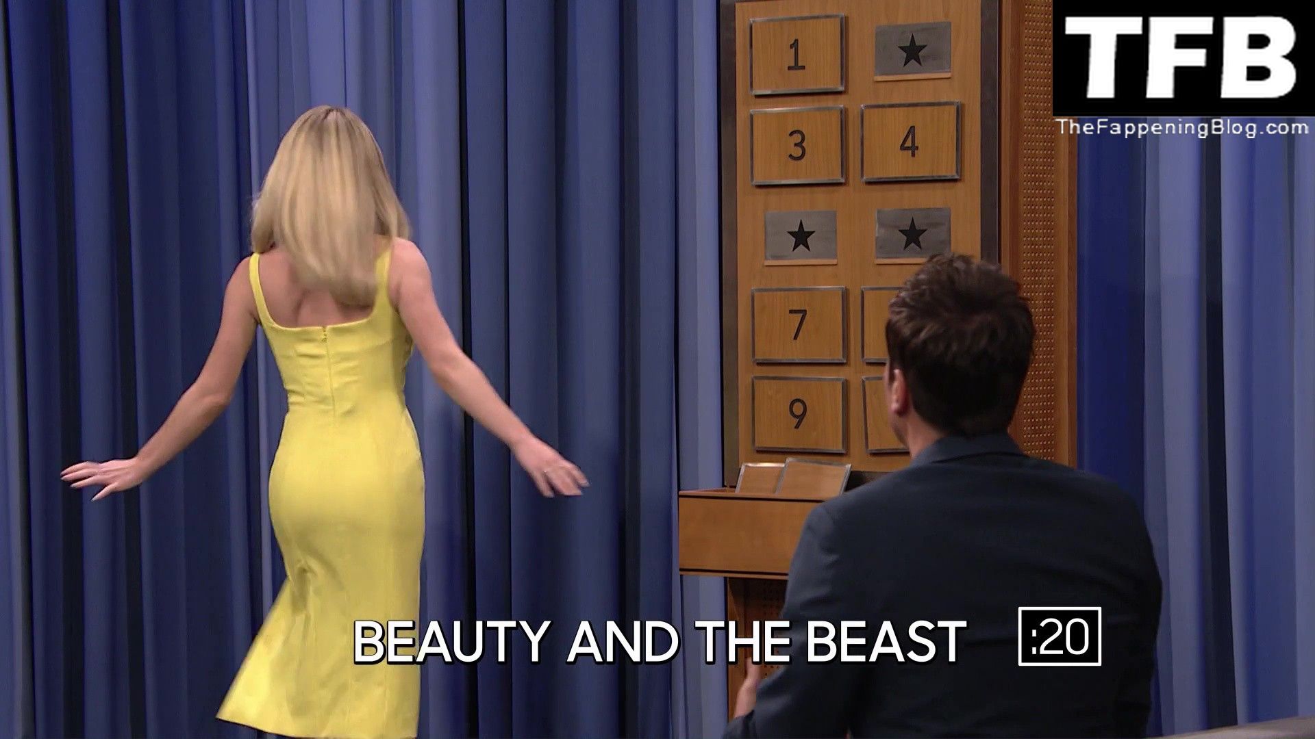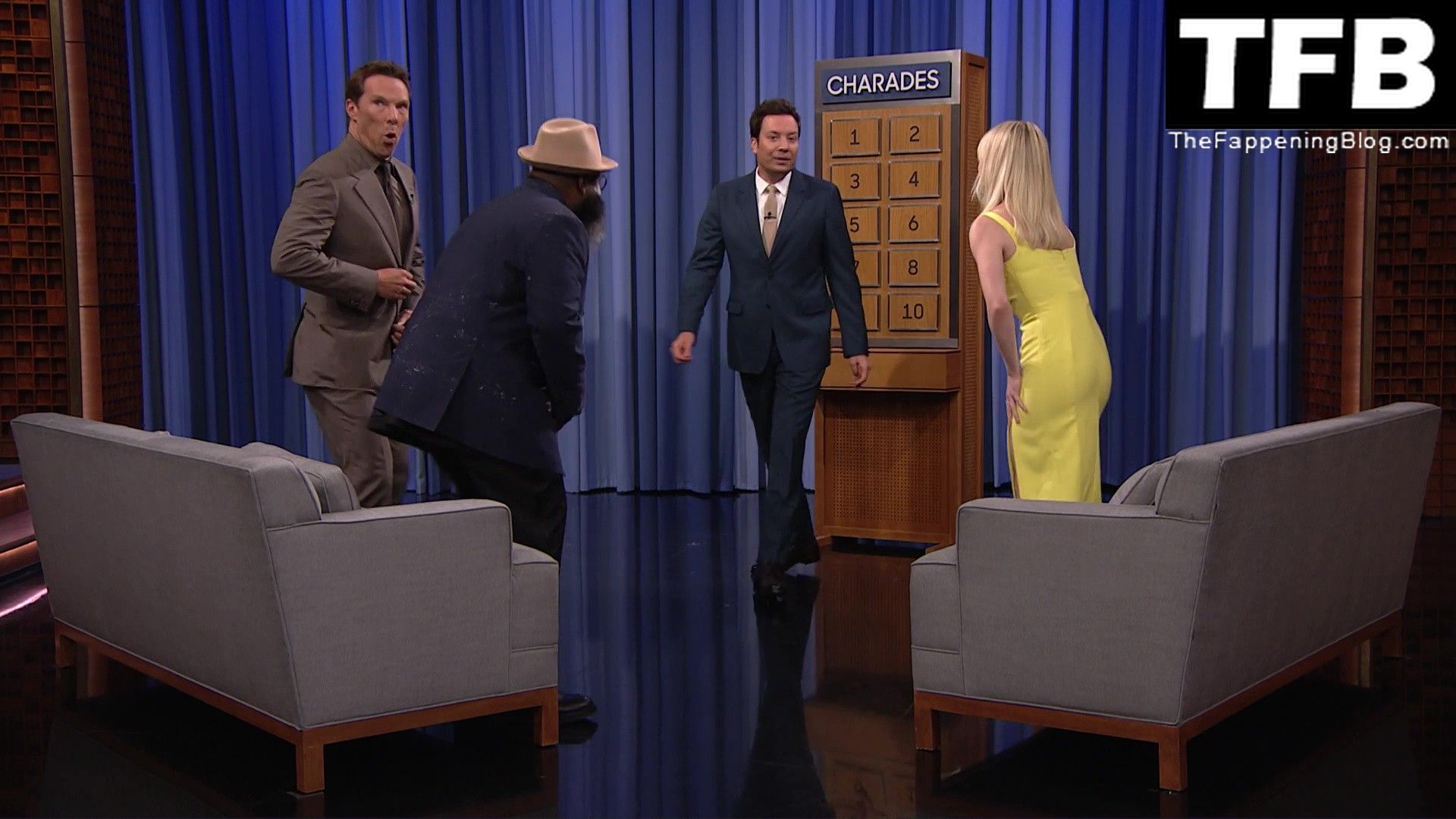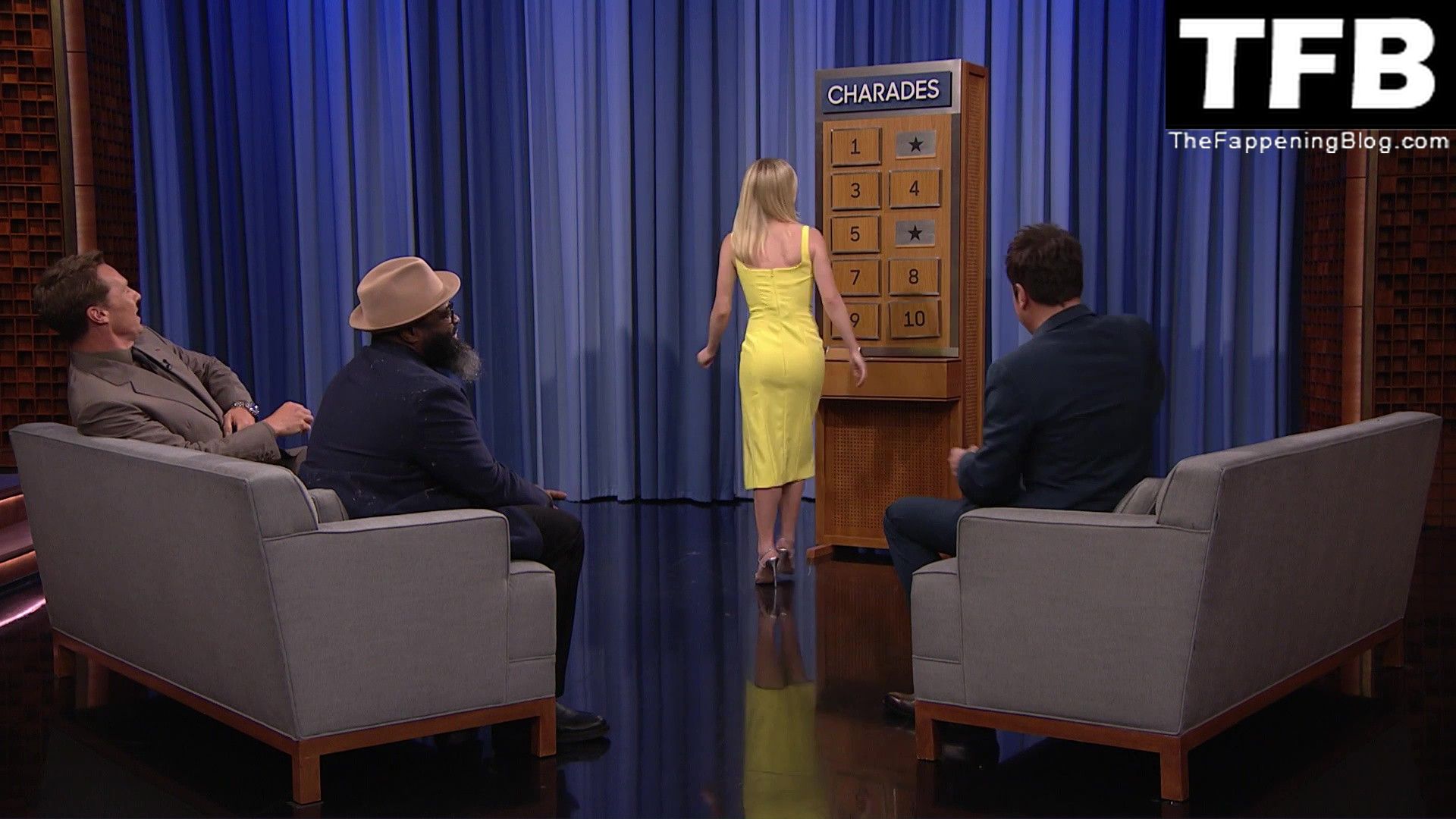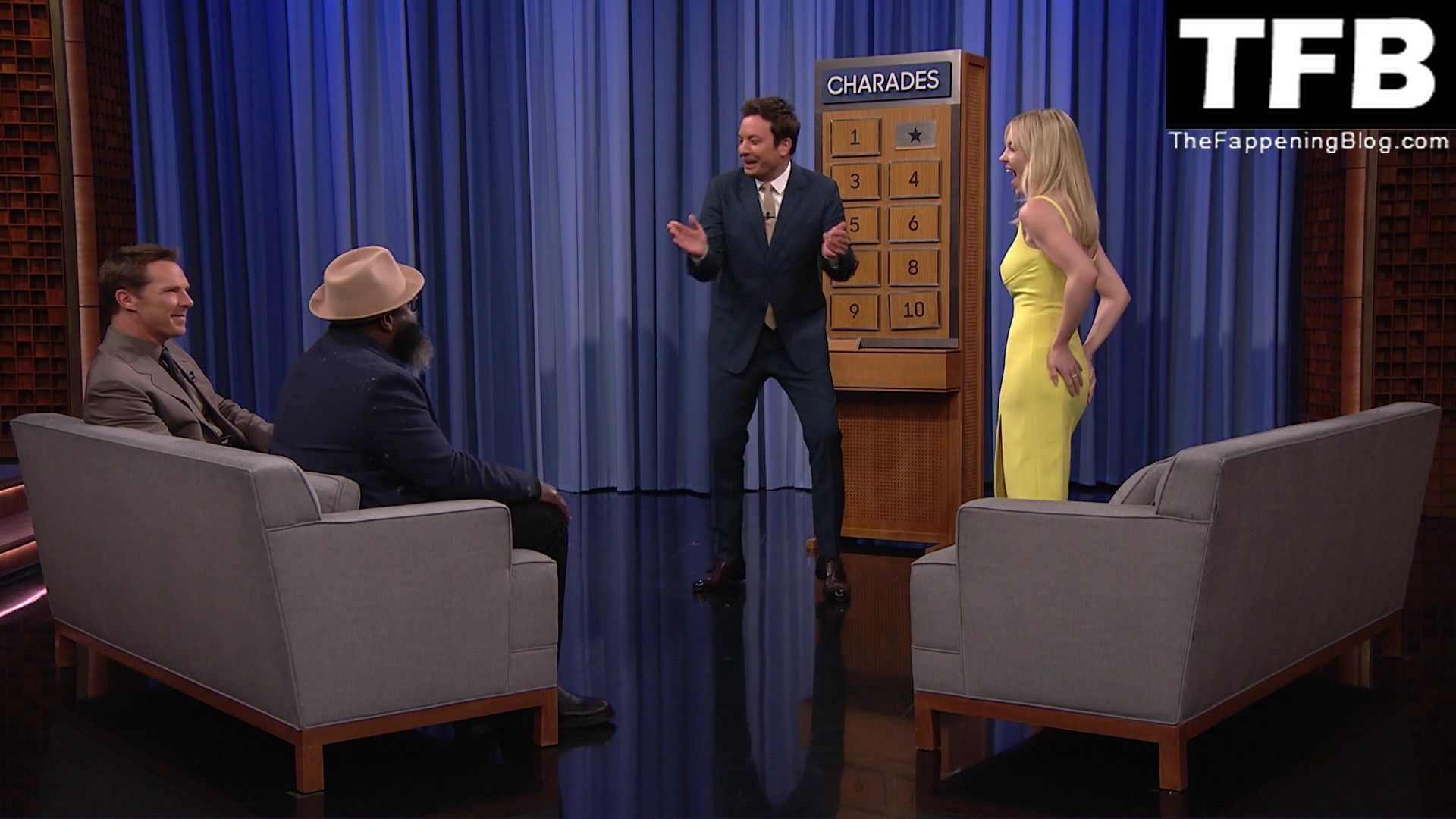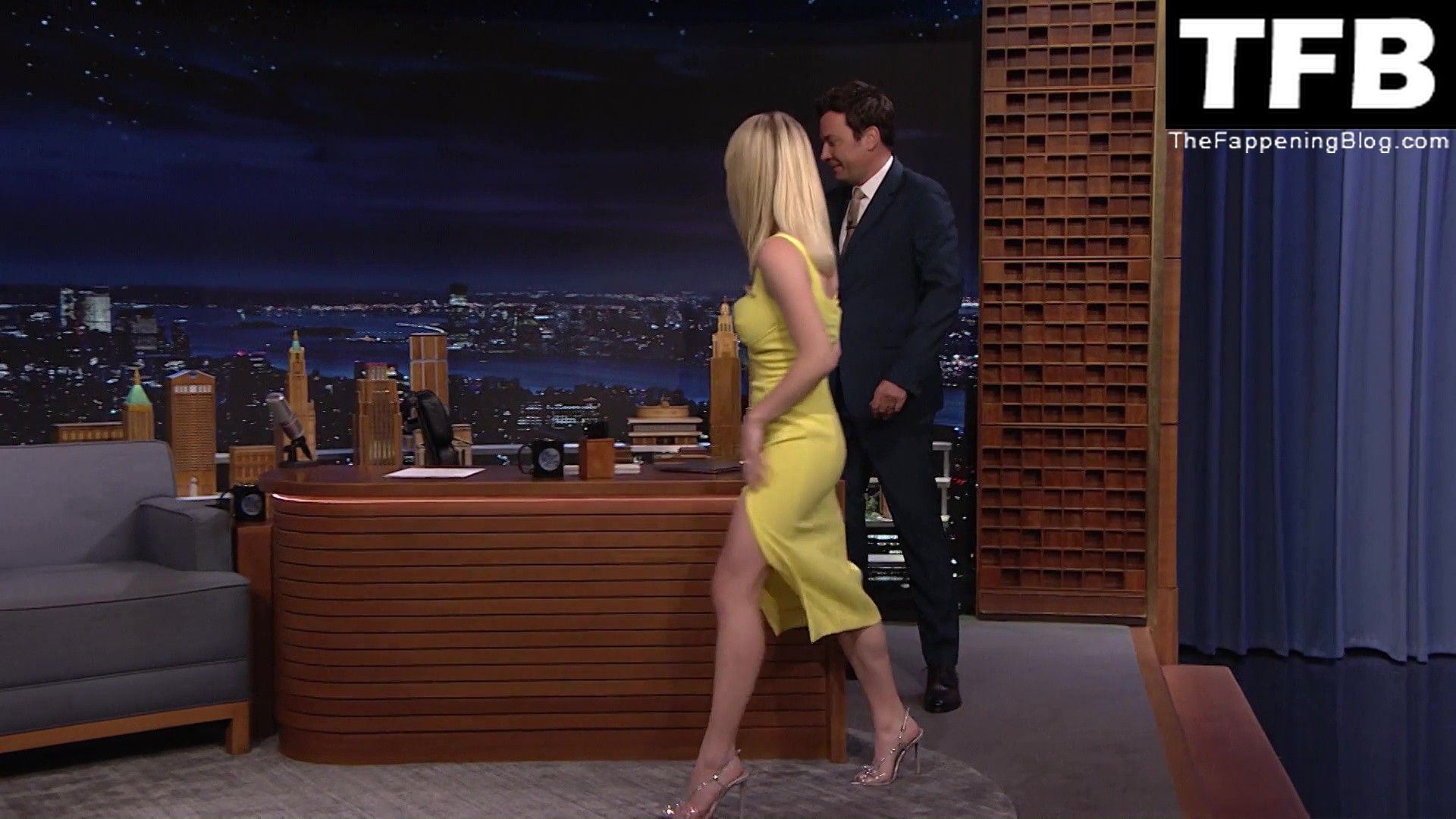 Sydney Sweeney exibe seu decote sexy e mostra seu mamilo no programa “The Tonight Show with Jimmy Fallon” (maio de 2022).