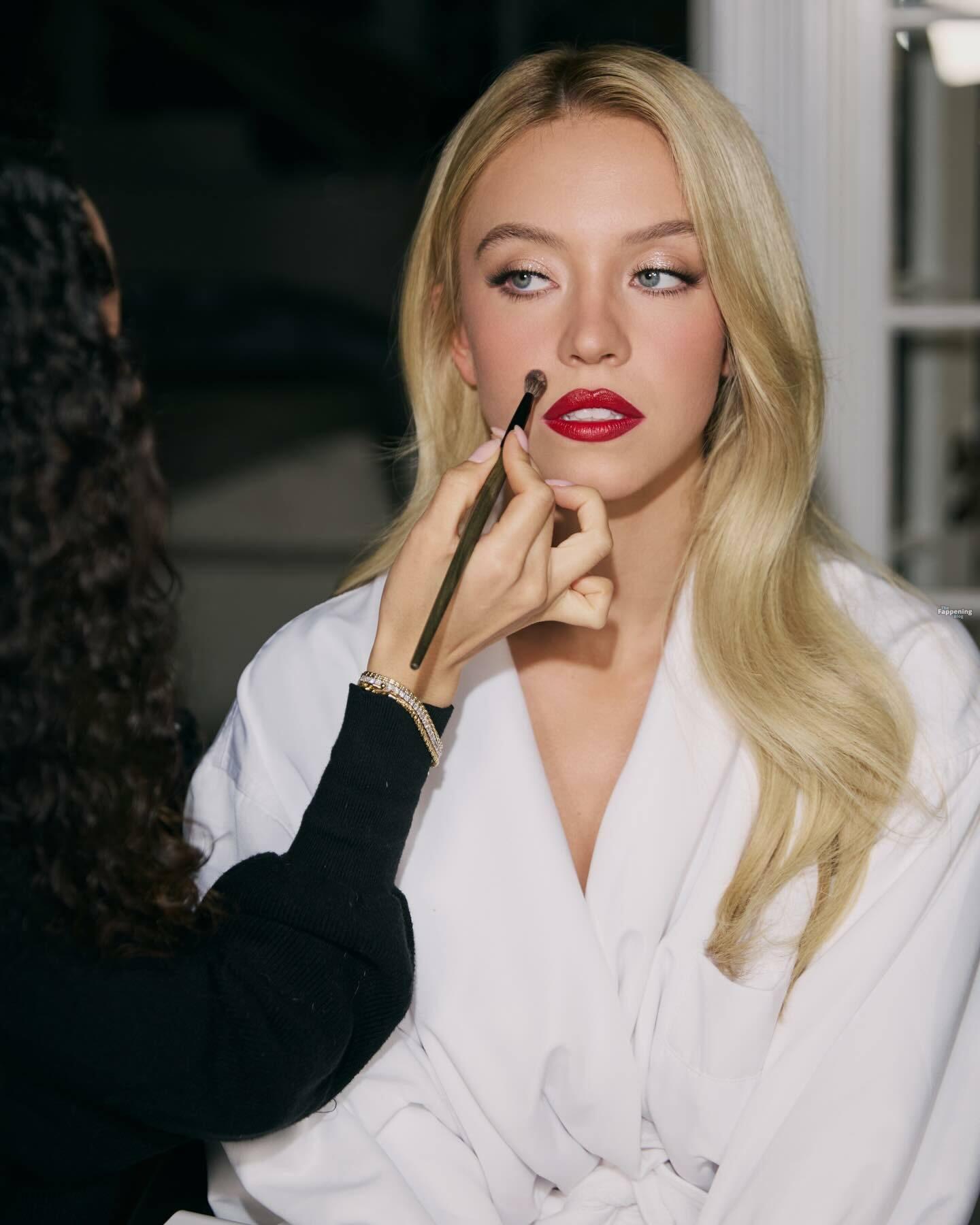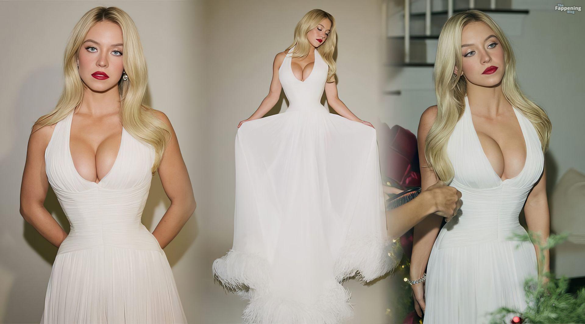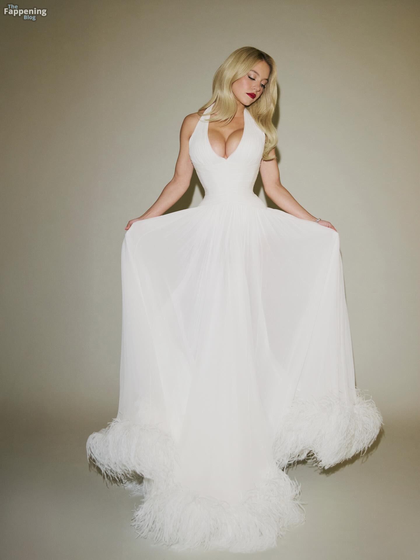 Sydney Sweeney exibe seus seios, posando com um vestido branco decotado para o ensaio de Sarah Krick antes do evento principal.
