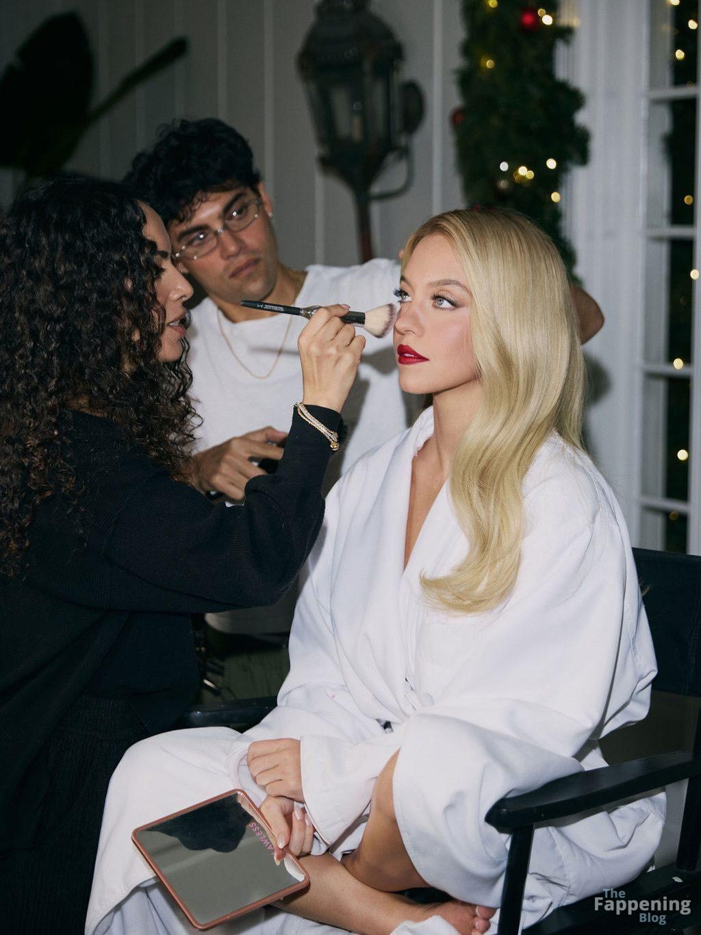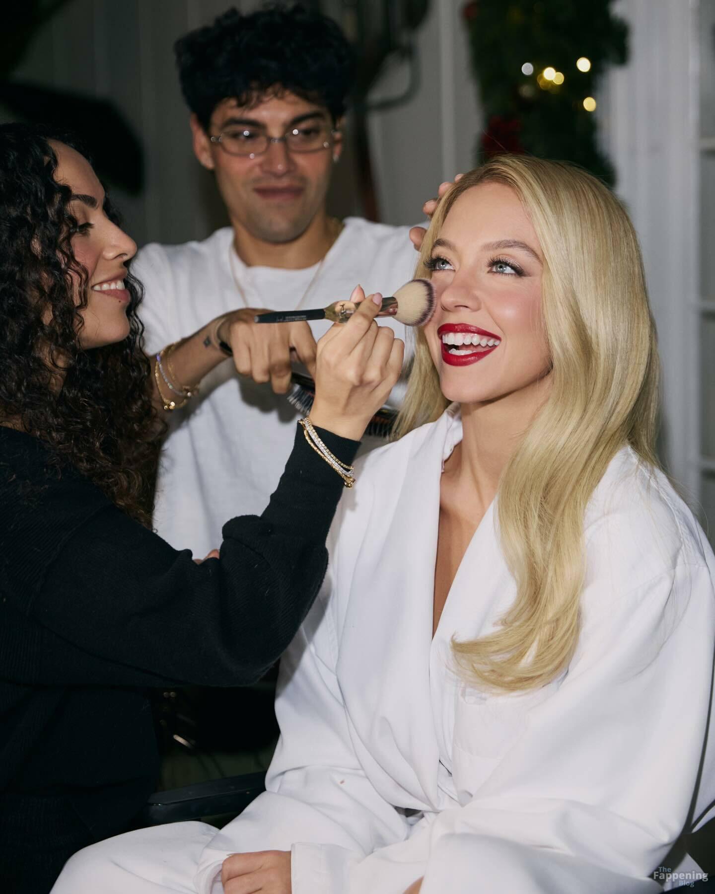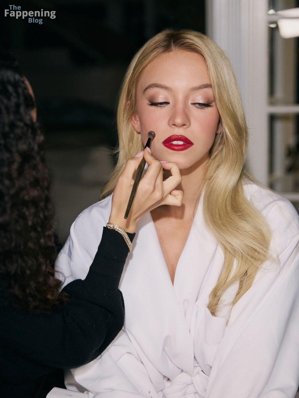Sydney Sweeney exibe seus seios, posando com um vestido branco decotado para o ensaio de Sarah Krick antes do evento principal.