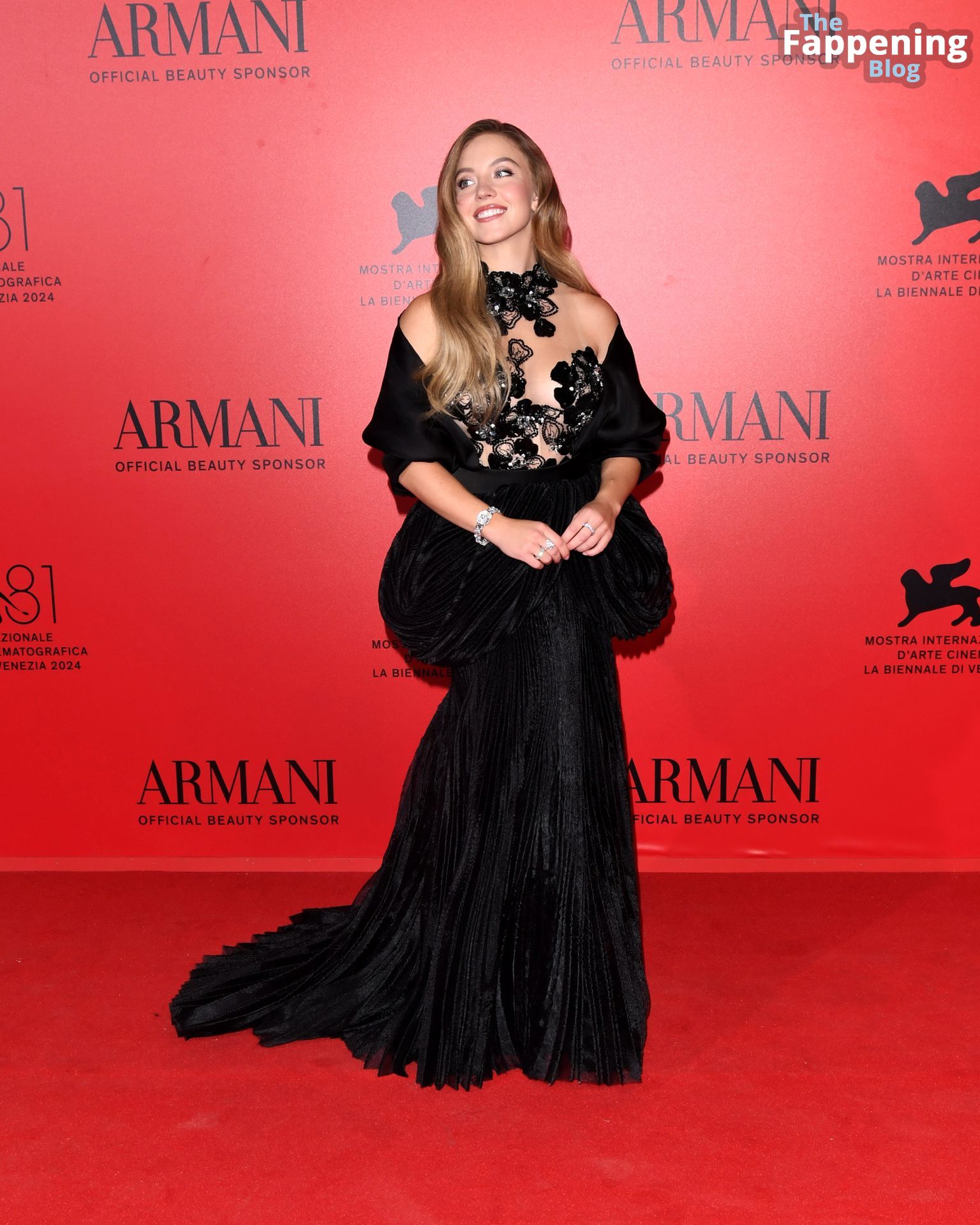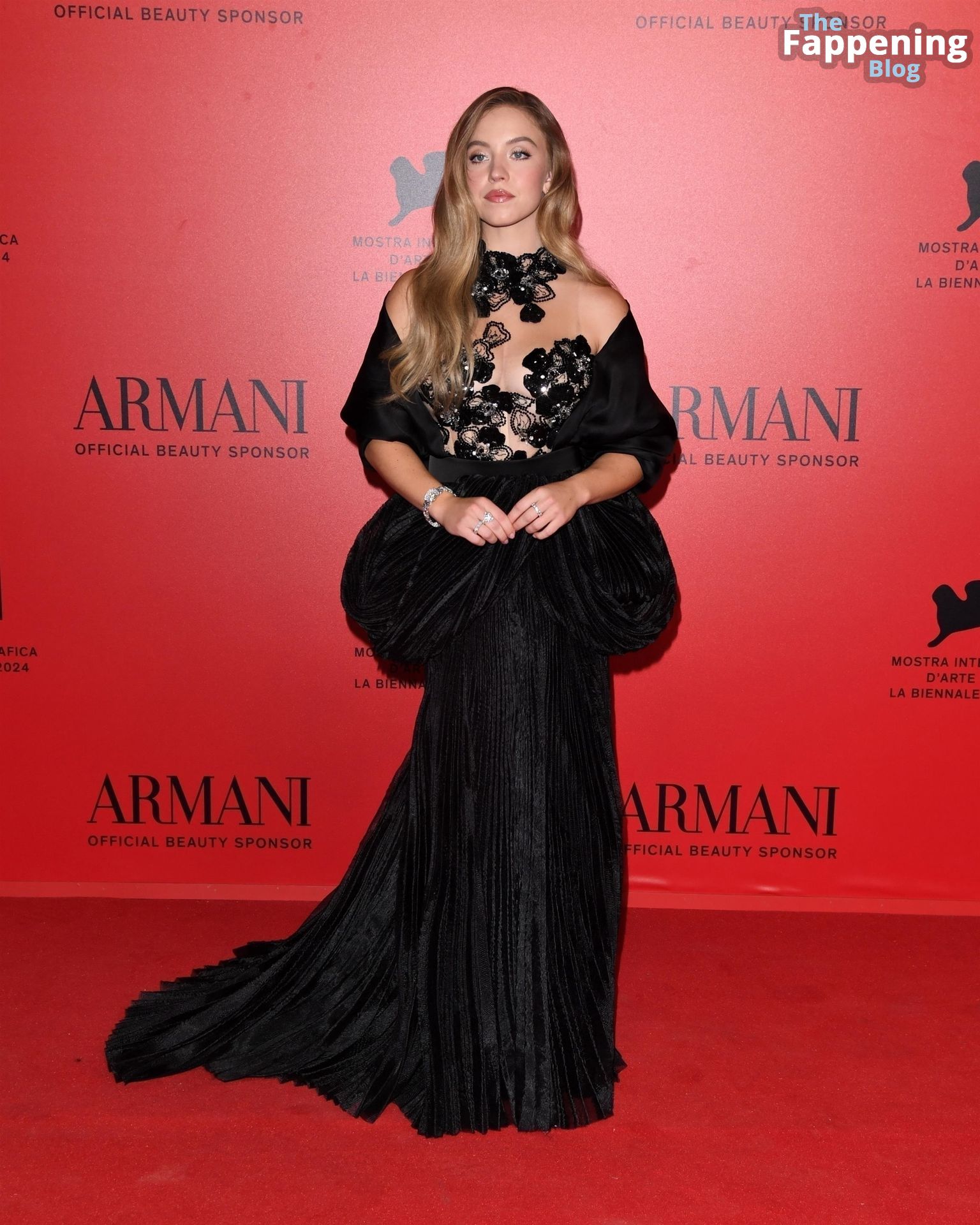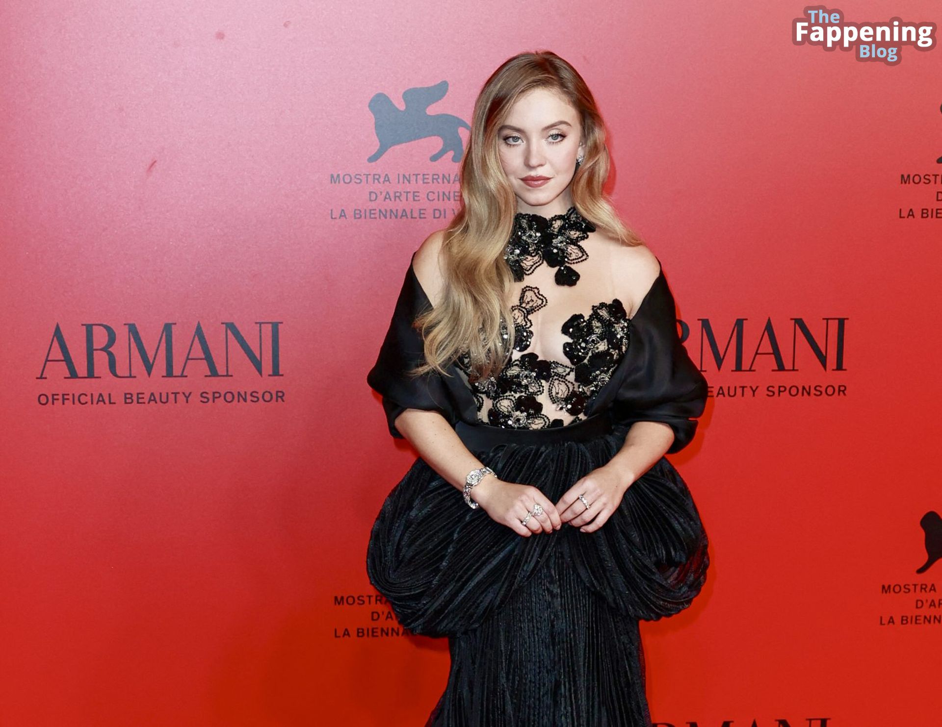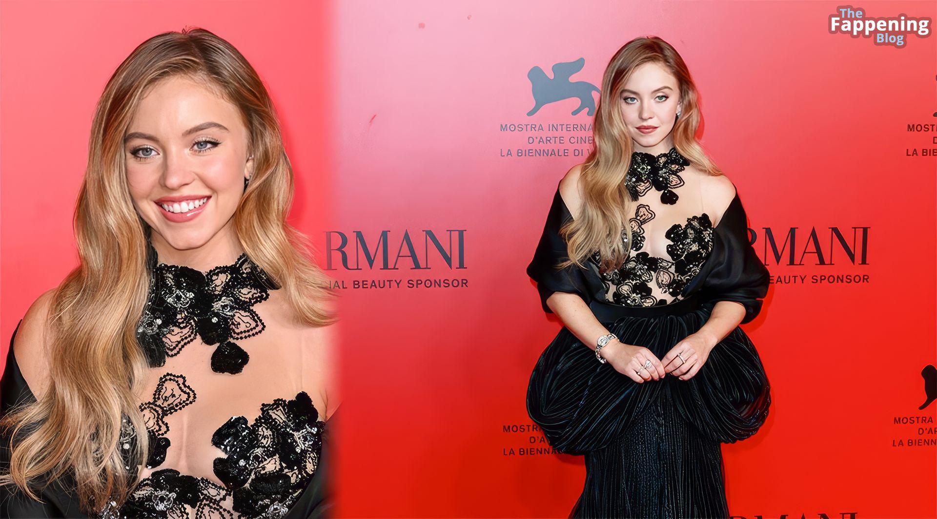 A estrela do Fappening e atriz Sydney Sweeney exibiu seu decote no Jantar da Armani Beauty durante o Festival de Cinema de Veneza, e seu visual estava quente.