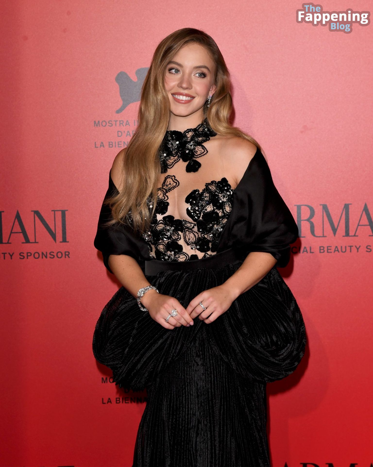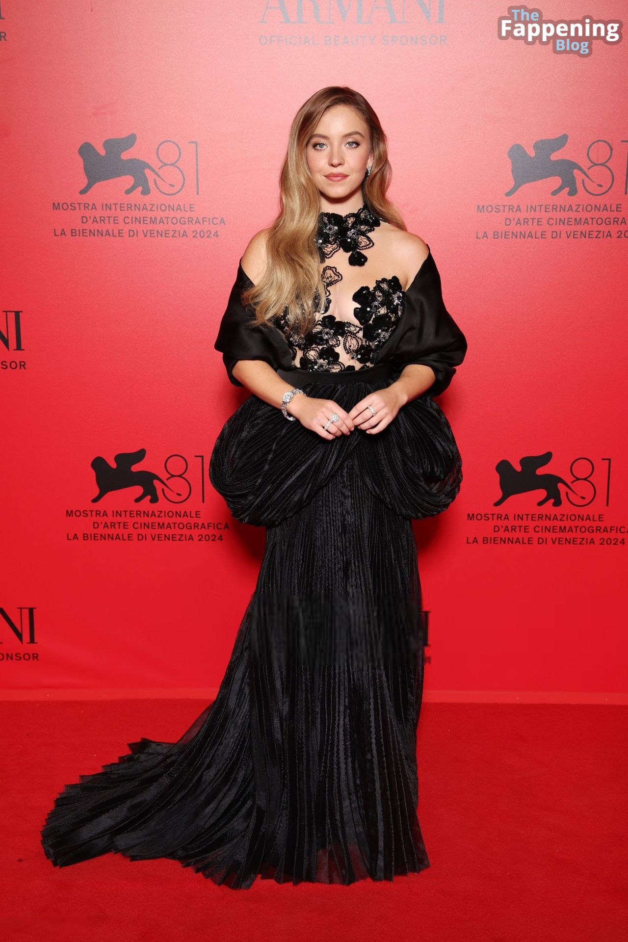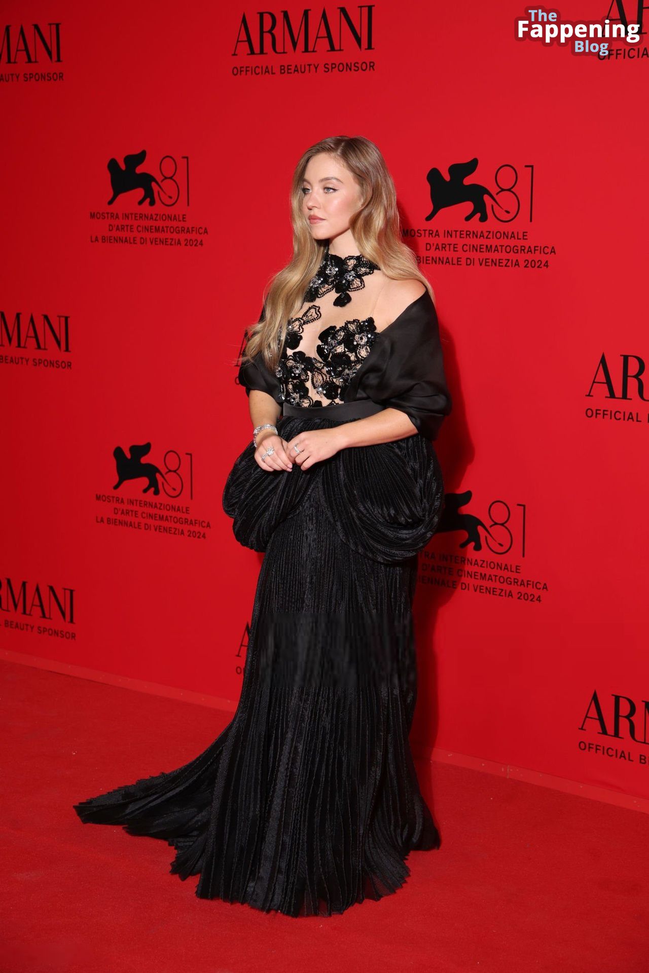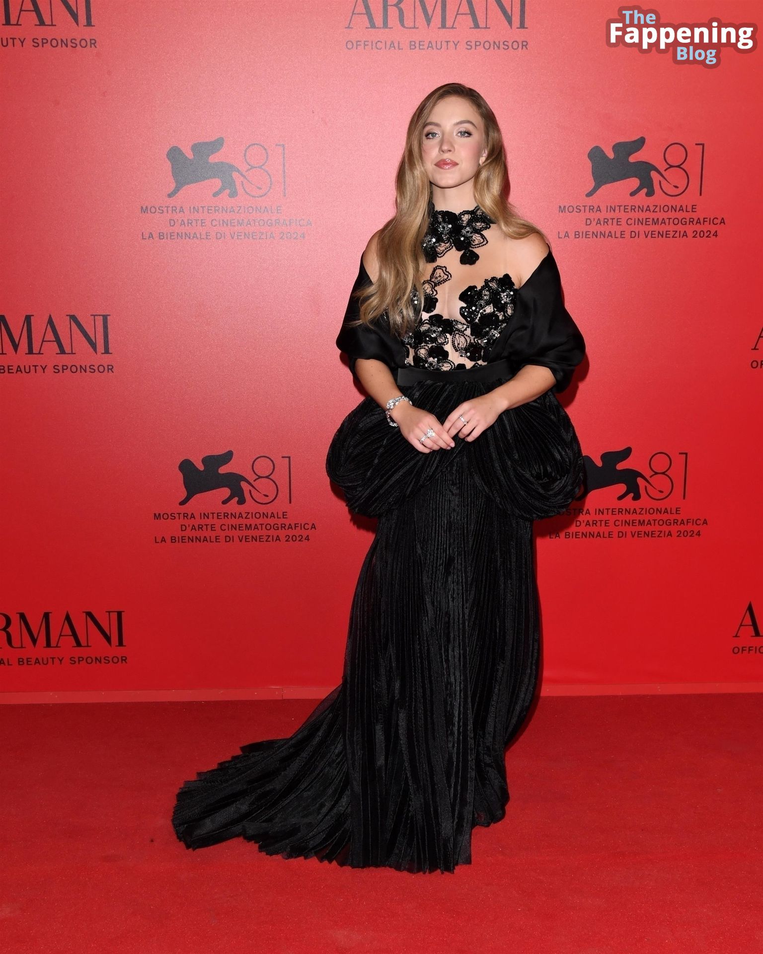 A estrela do Fappening e atriz Sydney Sweeney exibiu seu decote no Jantar da Armani Beauty durante o Festival de Cinema de Veneza, e seu visual estava quente.