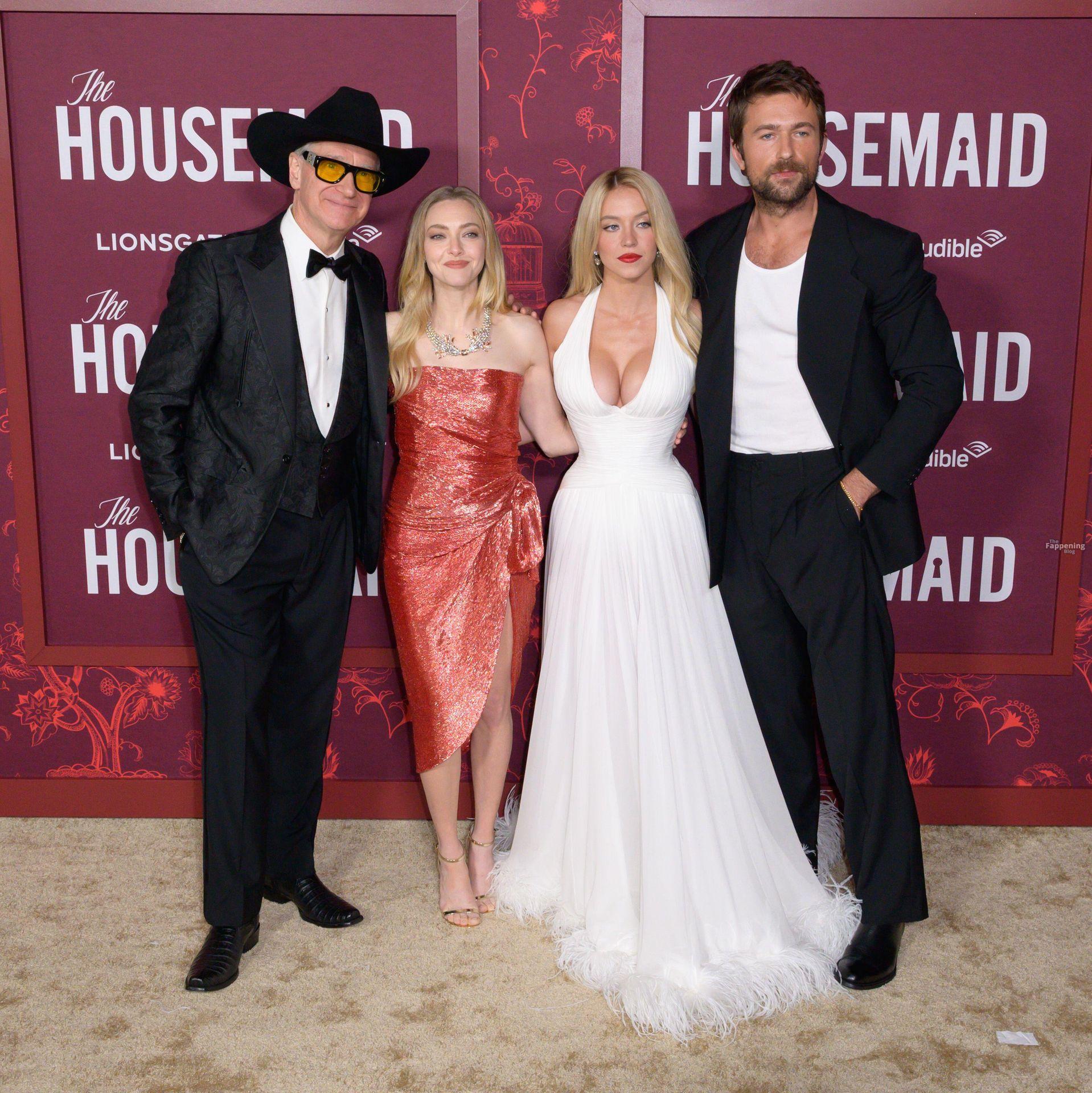 A estrela americana de The Fappening, atriz e produtora Sydney Sweeney, vestindo um vestido totalmente personalizado da Galia Lahav com joias finas da Jacob & Co., chega à Premiere em Los Angeles de ‘The Housemaid’ da Lionsgate, realizada no TCL Chinese Theatre IMAX.