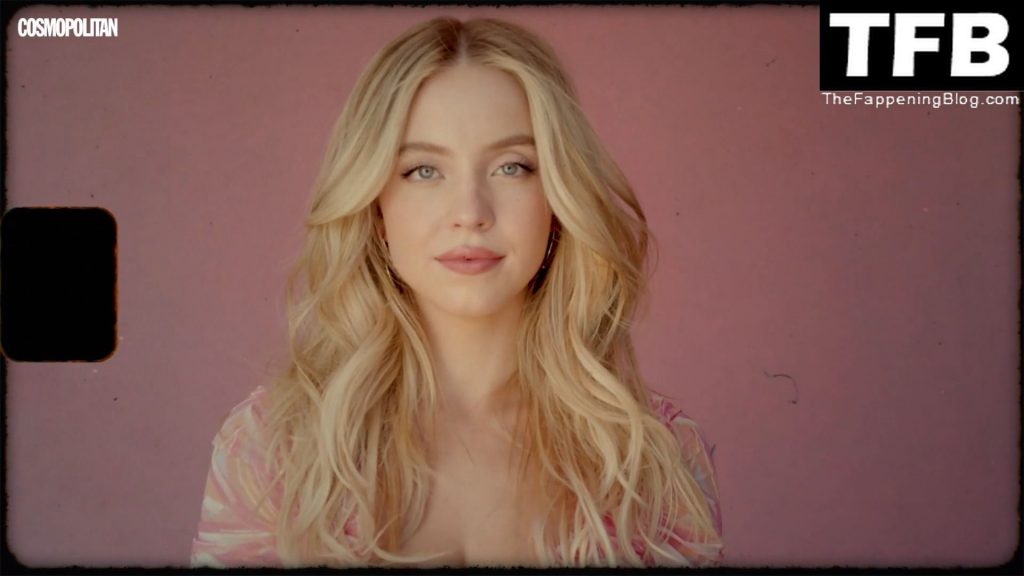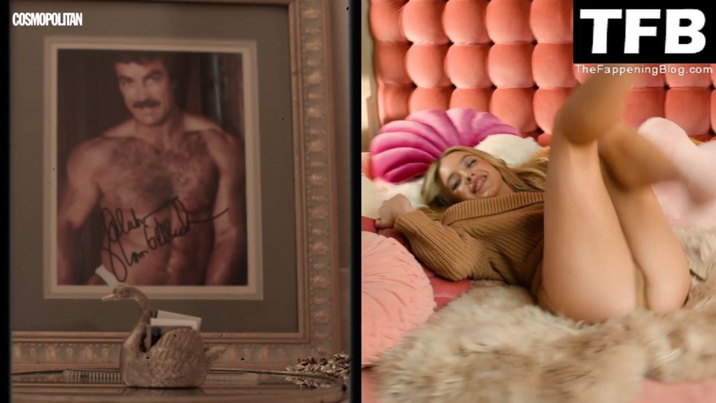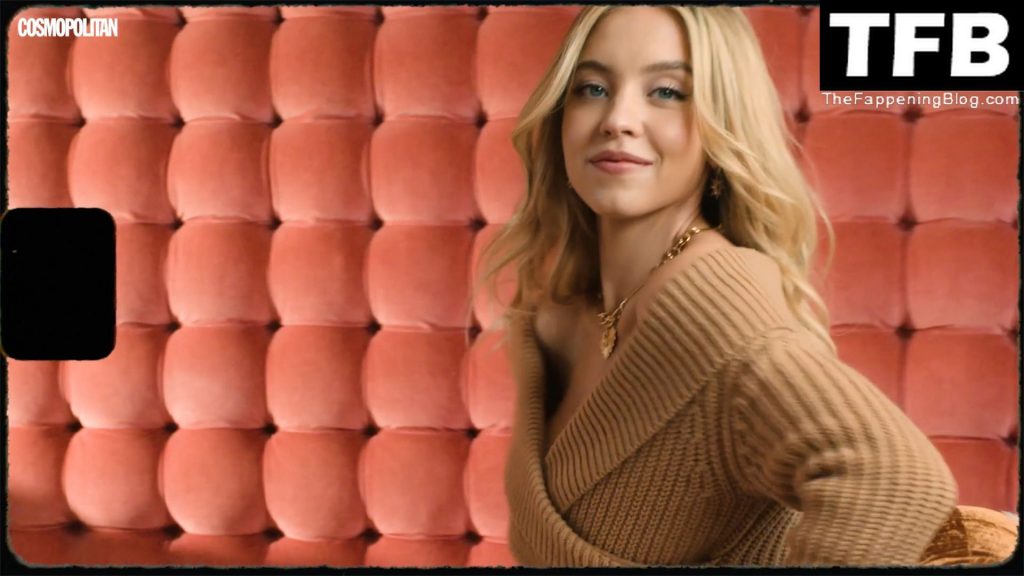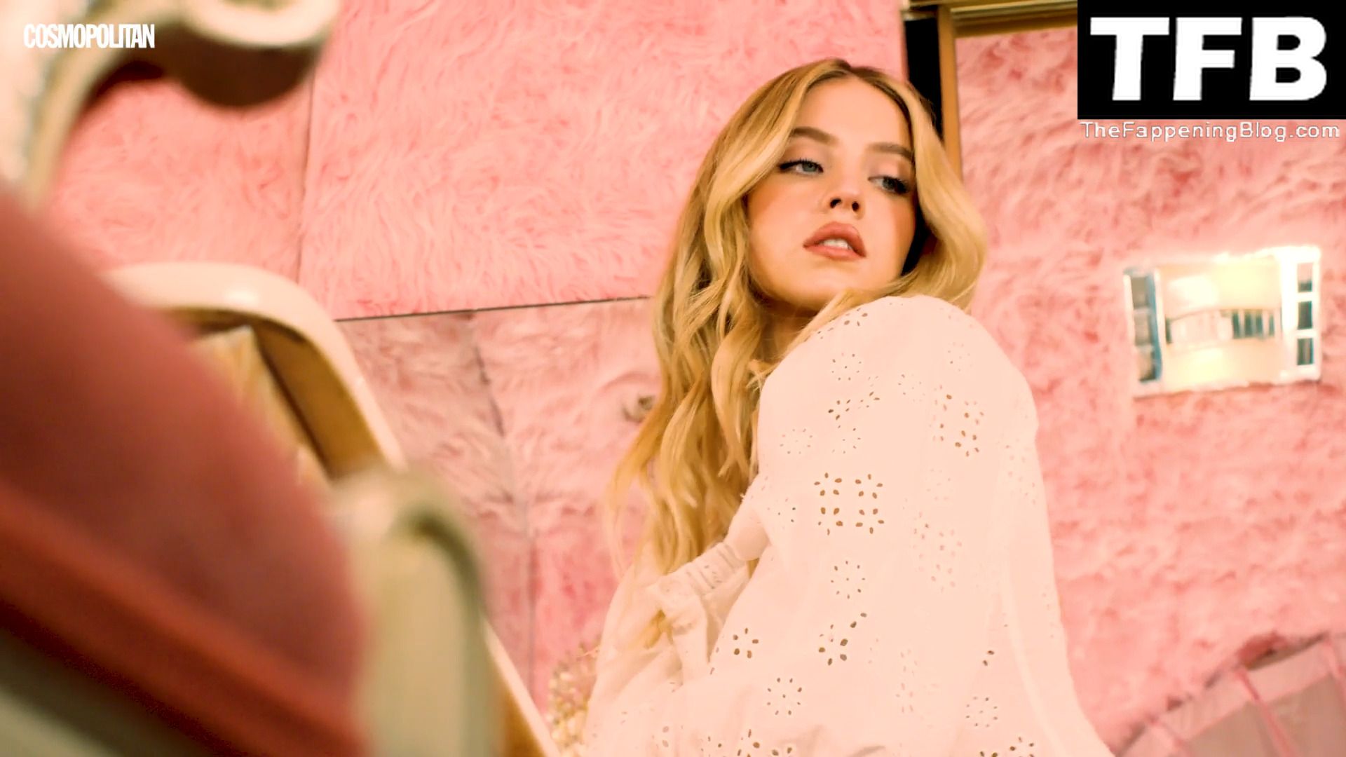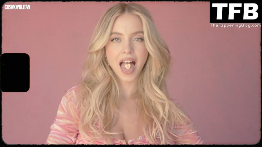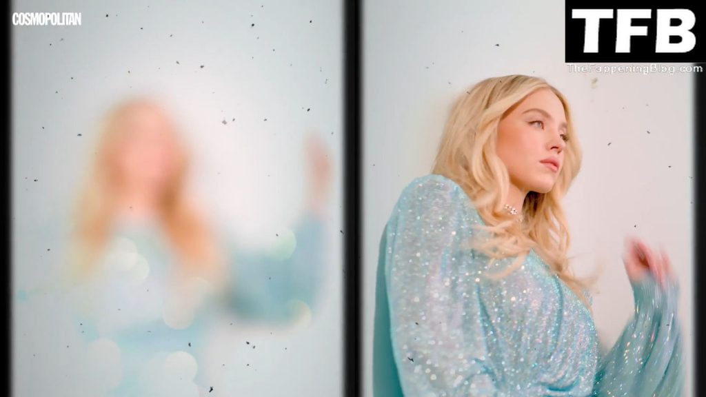 A atriz Sydney Sweeney fica topless enquanto usa uma calcinha de strass brilhante em um ensaio na banheira retrô para a Cosmopolitan (2022).