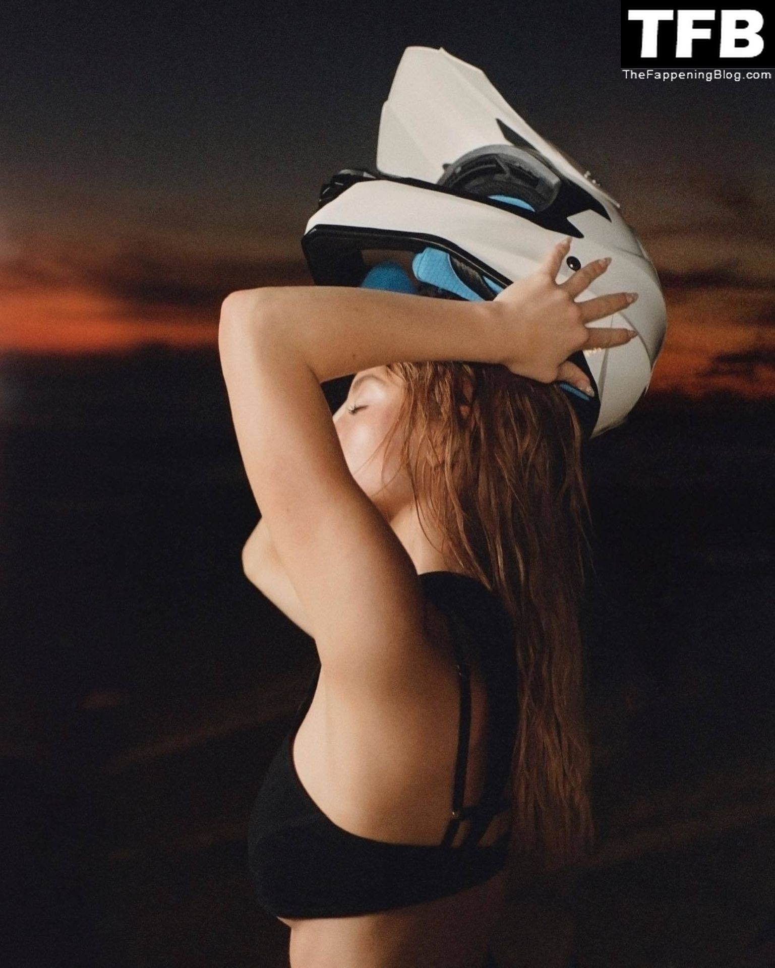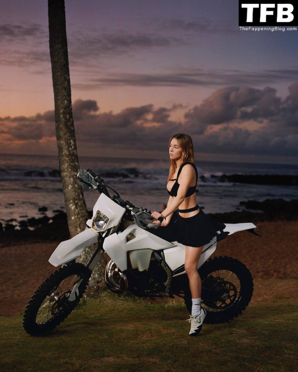 A estrela de “Euphoria” posa para fotos em praias deslumbrantes enquanto usa uma minissaia preta e um top bralette combinando. Em uma imagem, Sydney aparece usando um par de Nike.