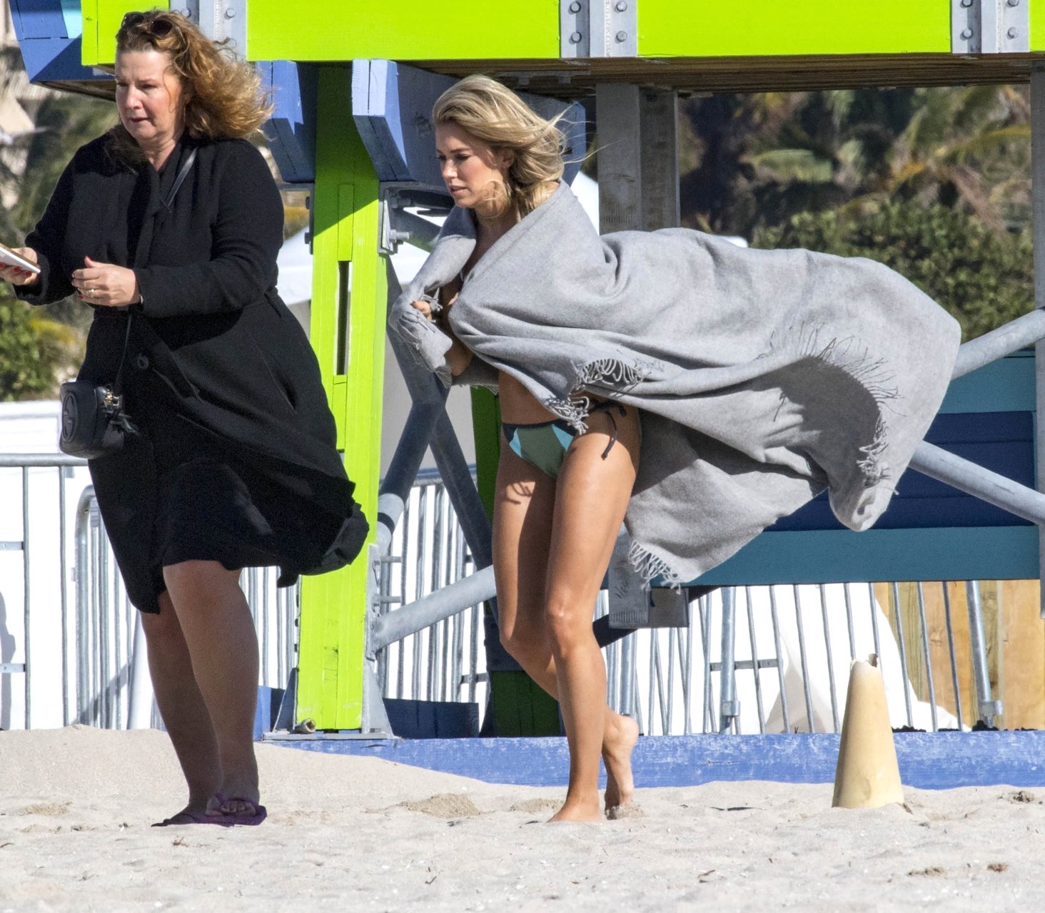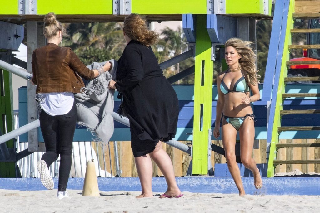 Sylvie Meis faz um novo ensaio fotográfico para sua nova coleção de biquínis em Miami Beach, 01/04/2018. Sylvie Meis é uma personalidade da televisão holandesa, atriz (Costa!), modelo de moda de origem indonésia. Idade: 39 anos.