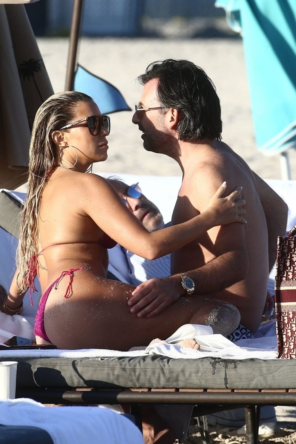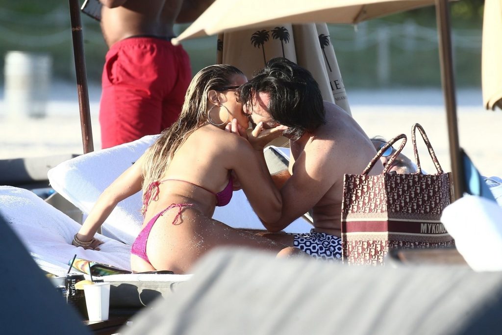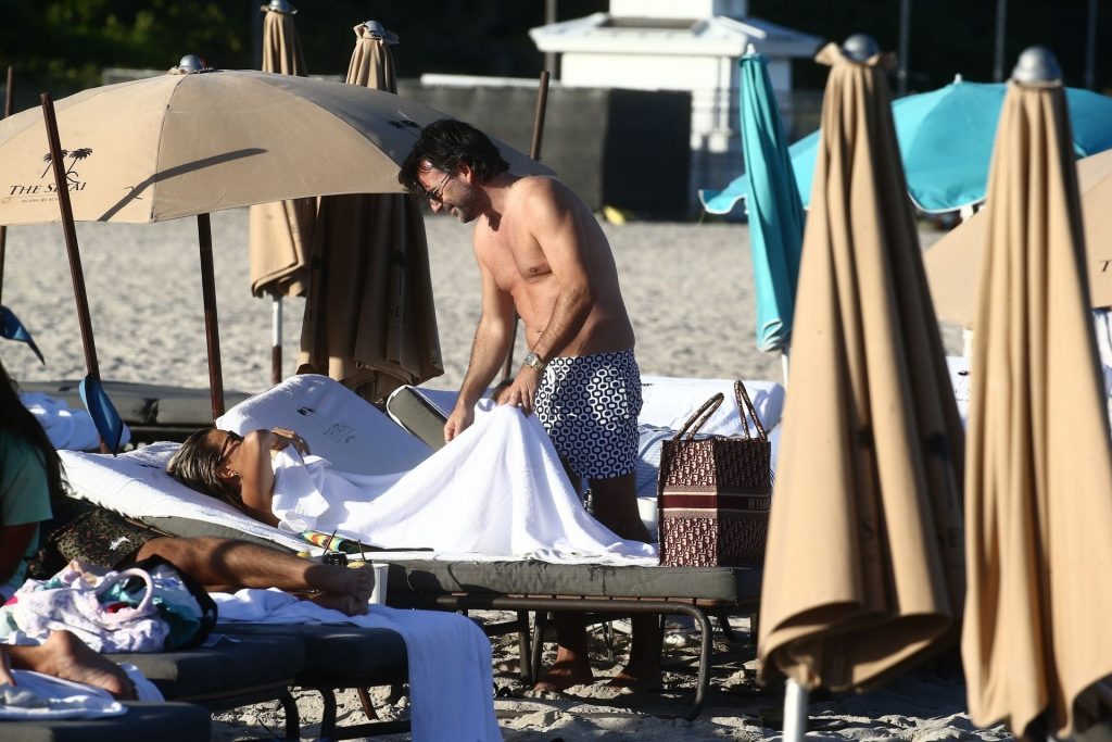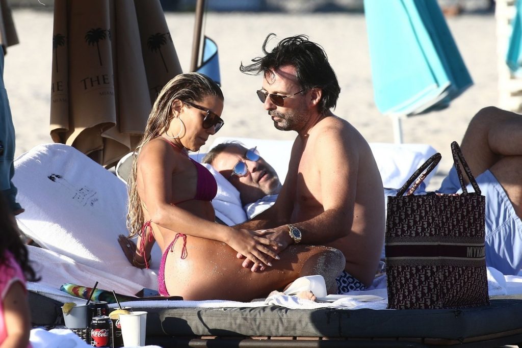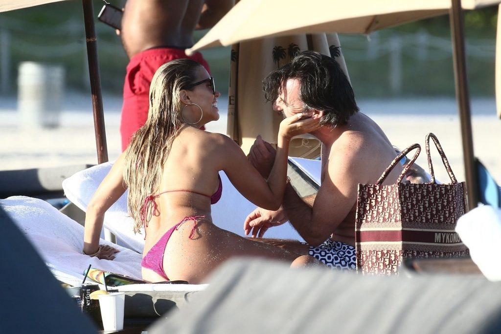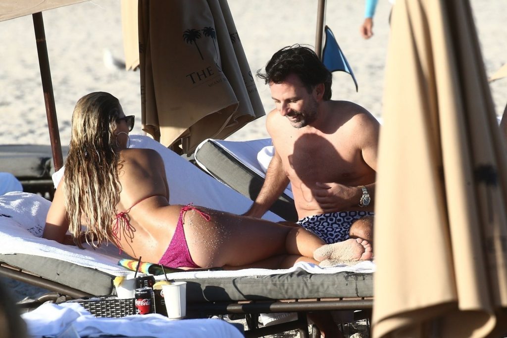 Sylvie Meis, 41, foi fotografada de biquíni roxo na praia em Miami Beach, 12/02/2019. Sylvie deu um mergulho no oceano com seu noivo e aproveitou o sol nas praias de Miami.