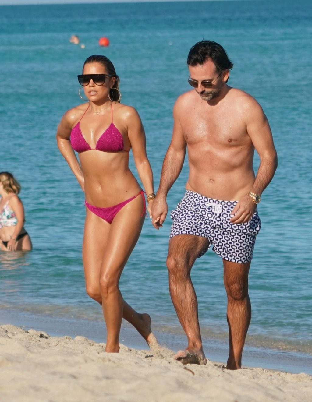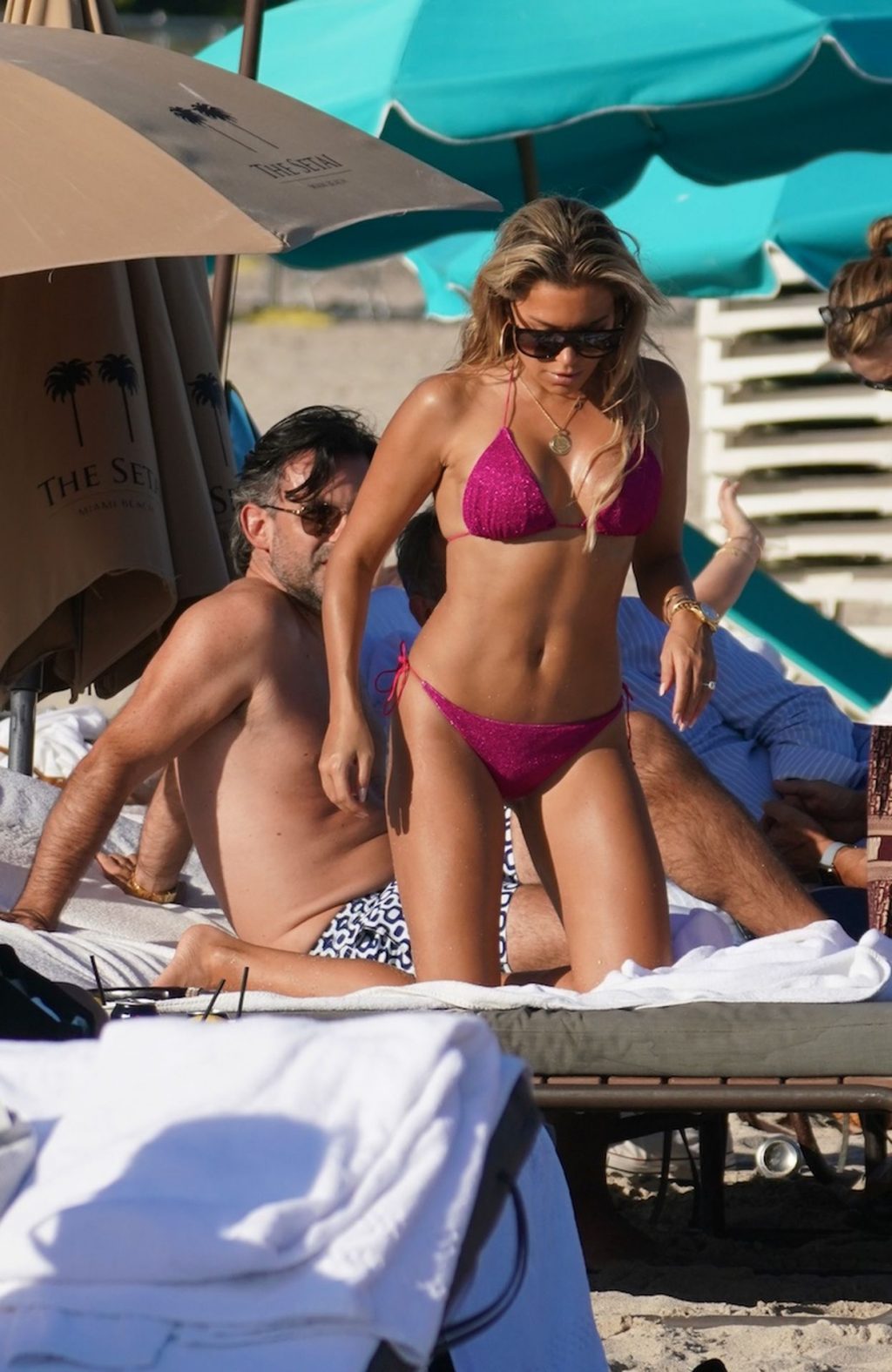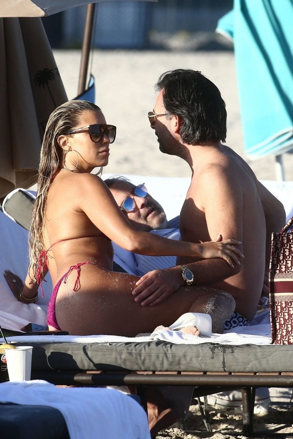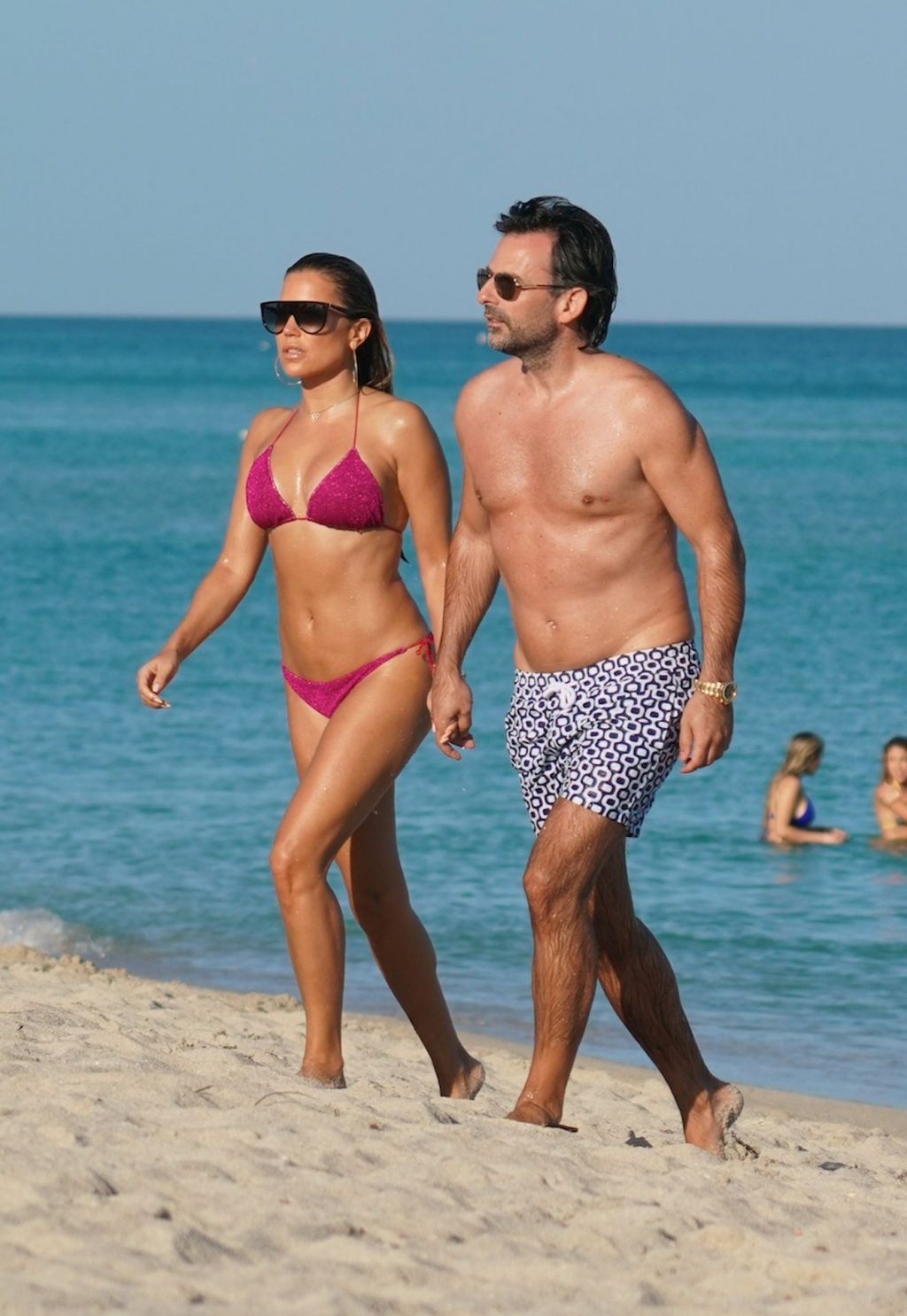 Sylvie Meis, 41, foi fotografada de biquíni roxo na praia em Miami Beach, 12/02/2019. Sylvie deu um mergulho no oceano com seu noivo e aproveitou o sol nas praias de Miami.