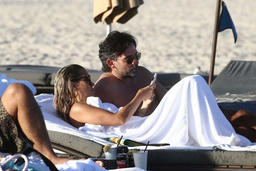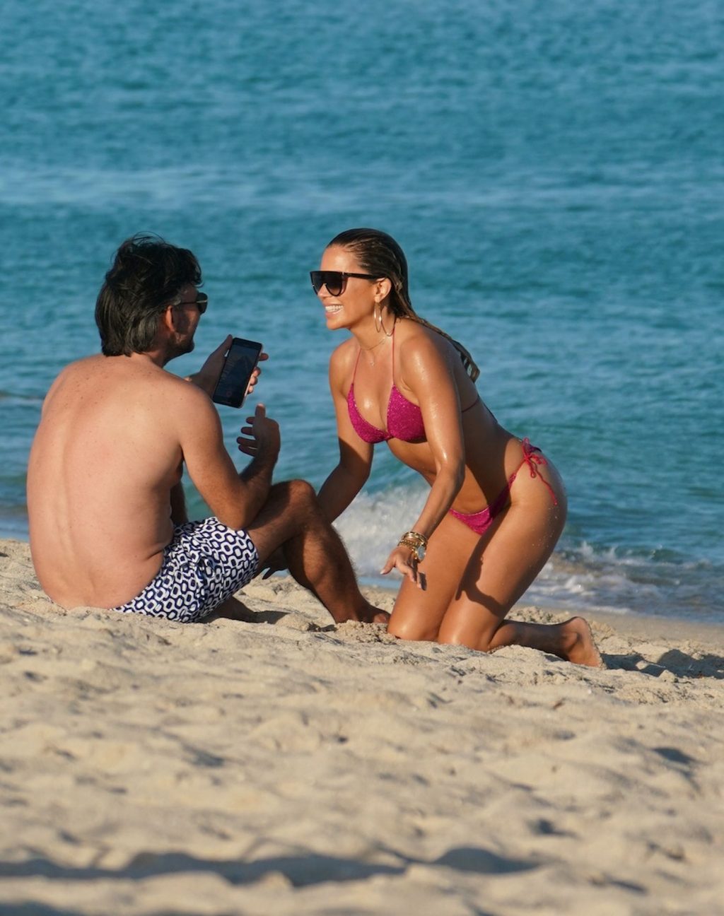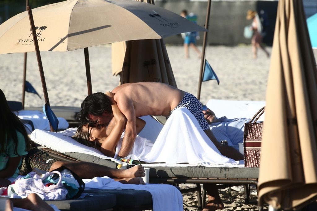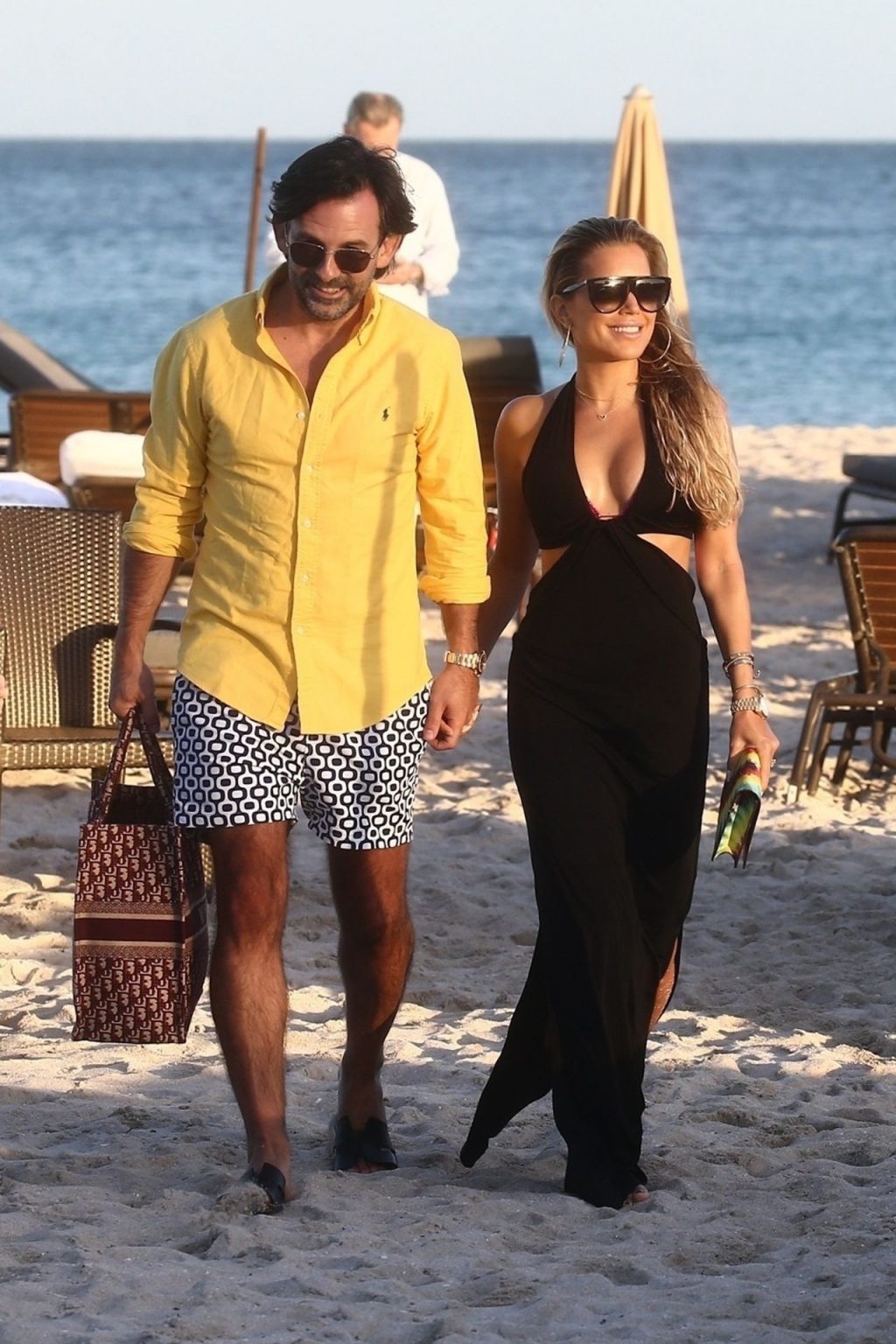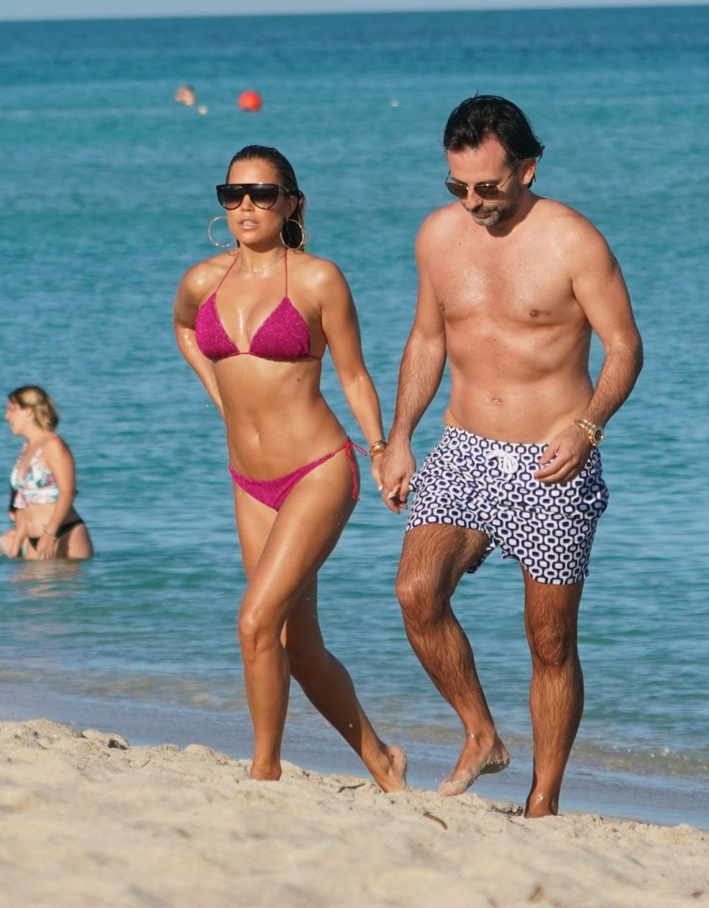 Sylvie Meis, 41, foi fotografada de biquíni roxo na praia em Miami Beach, 12/02/2019. Sylvie deu um mergulho no oceano com seu noivo e aproveitou o sol nas praias de Miami.