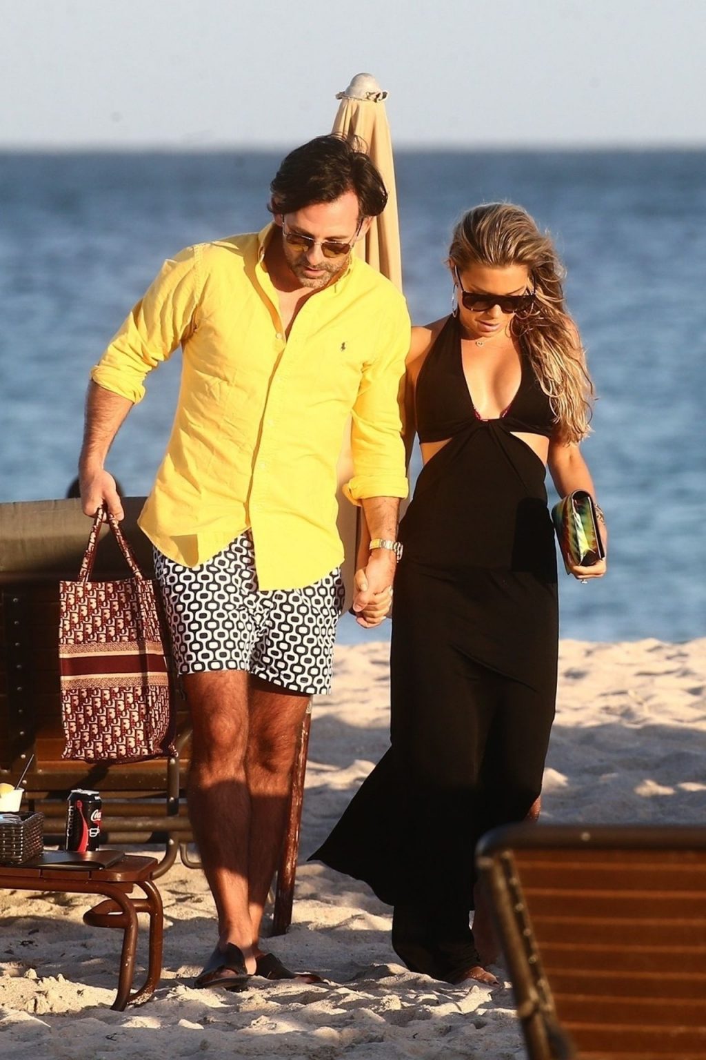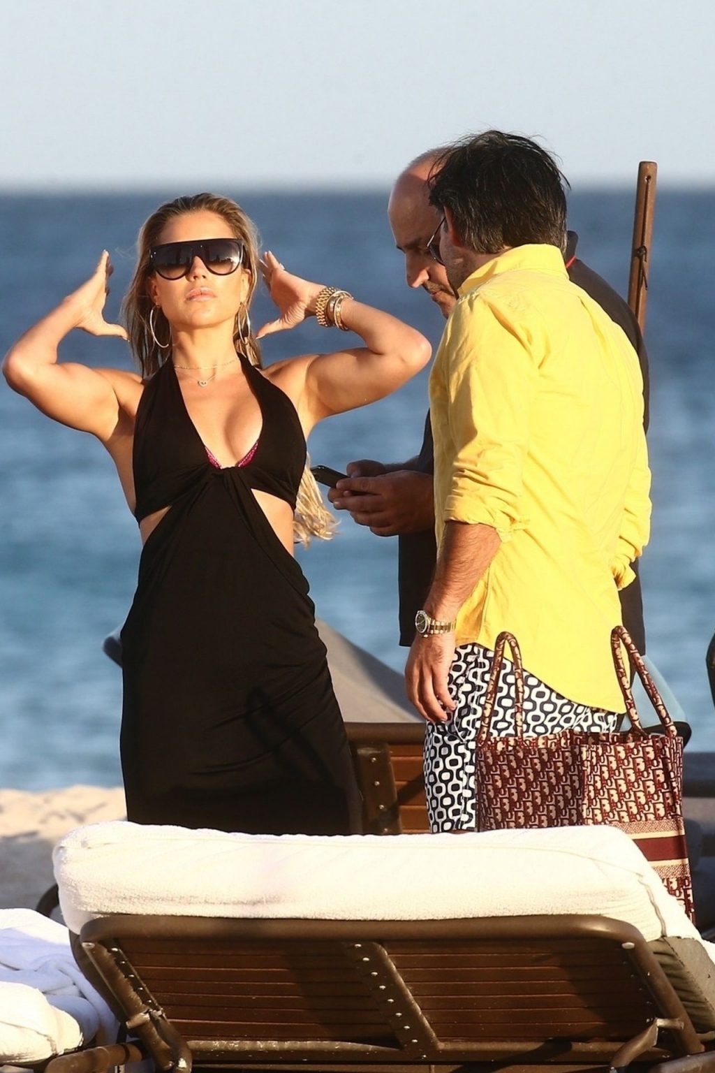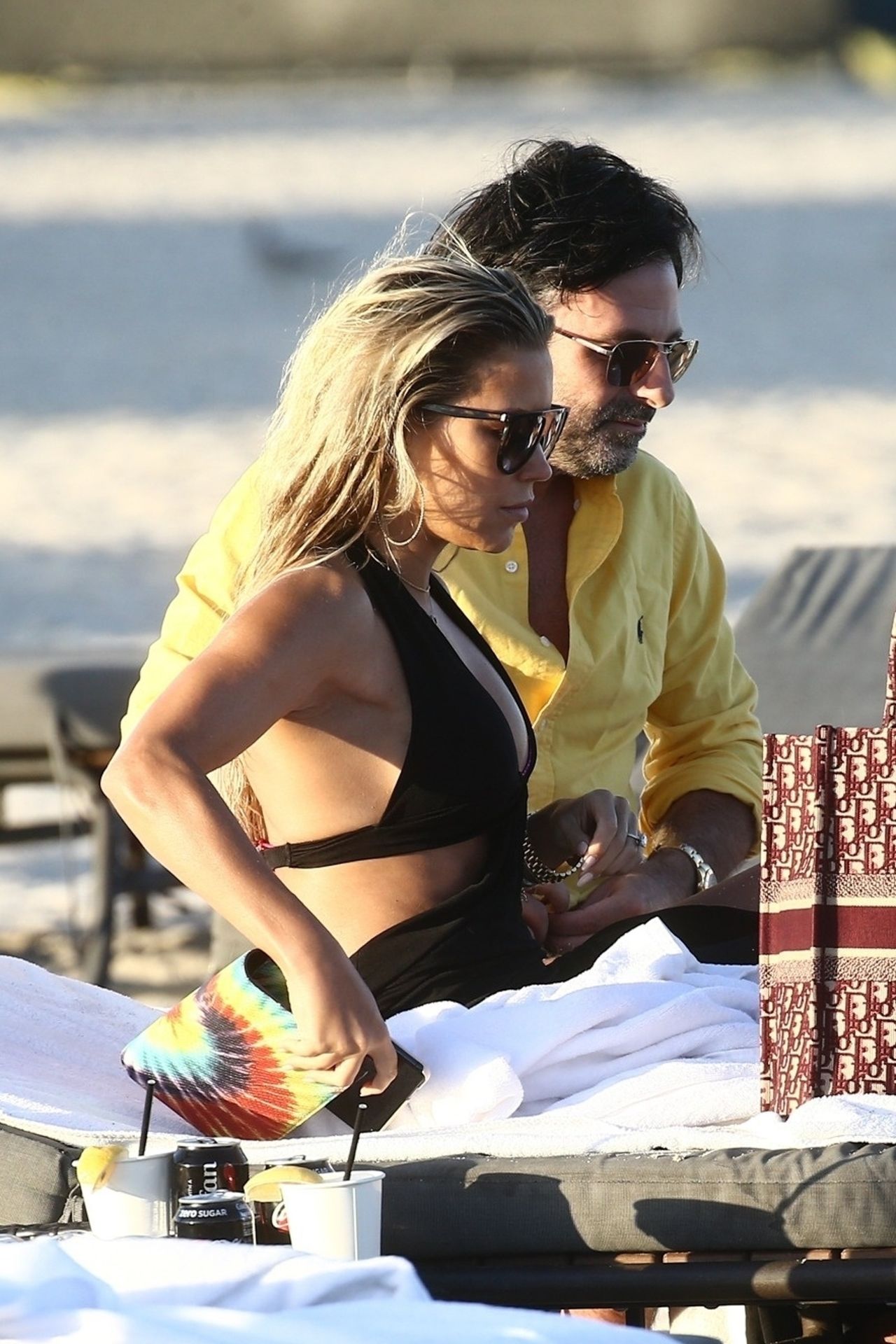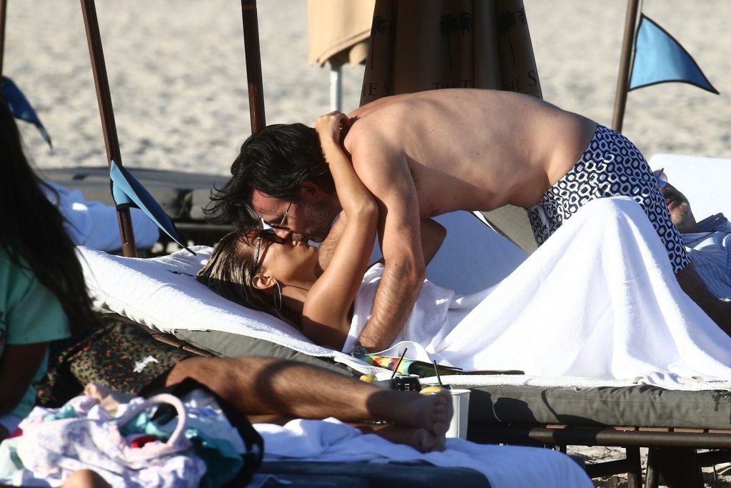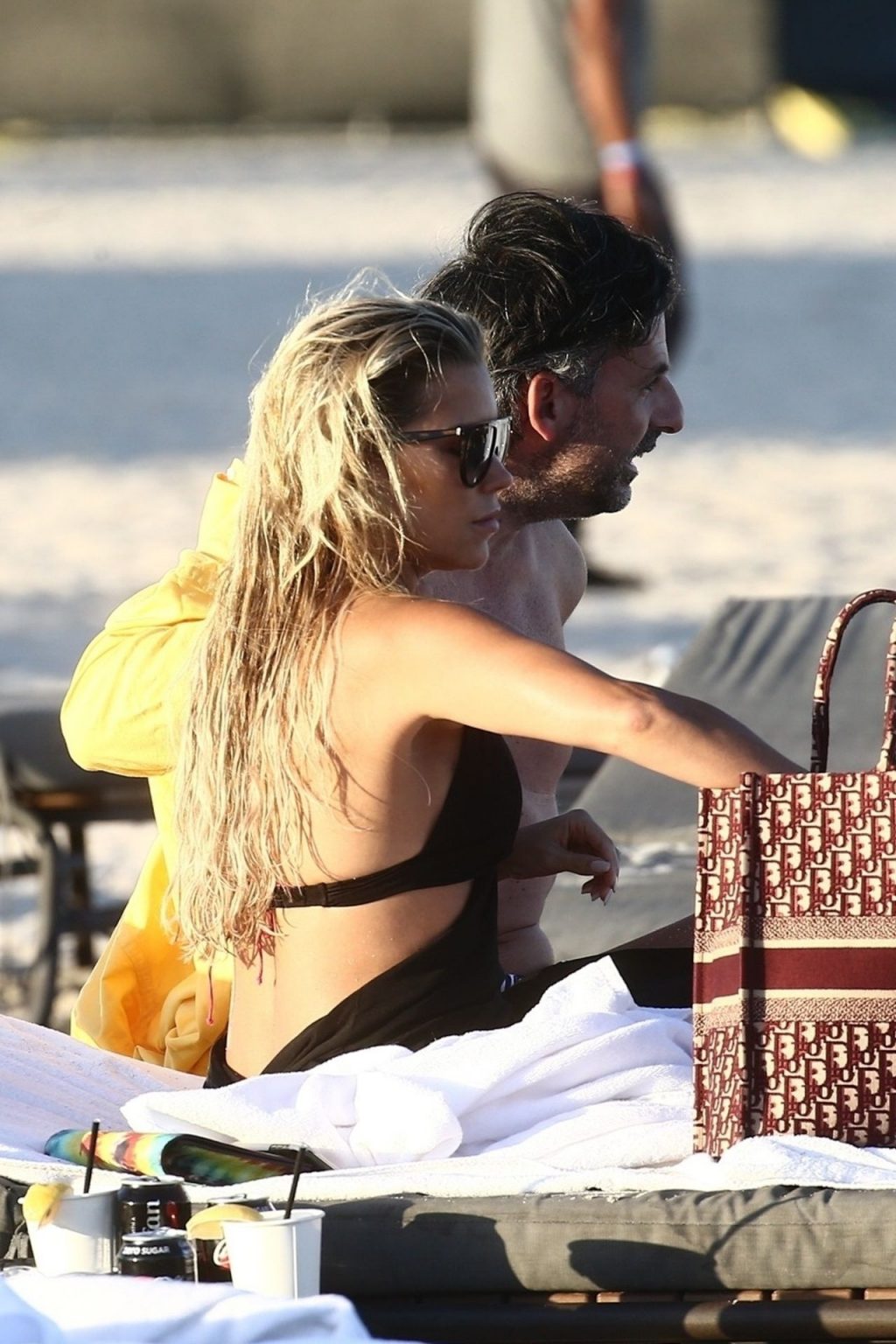 Sylvie Meis, 41, foi fotografada de biquíni roxo na praia em Miami Beach, 12/02/2019. Sylvie deu um mergulho no oceano com seu noivo e aproveitou o sol nas praias de Miami.