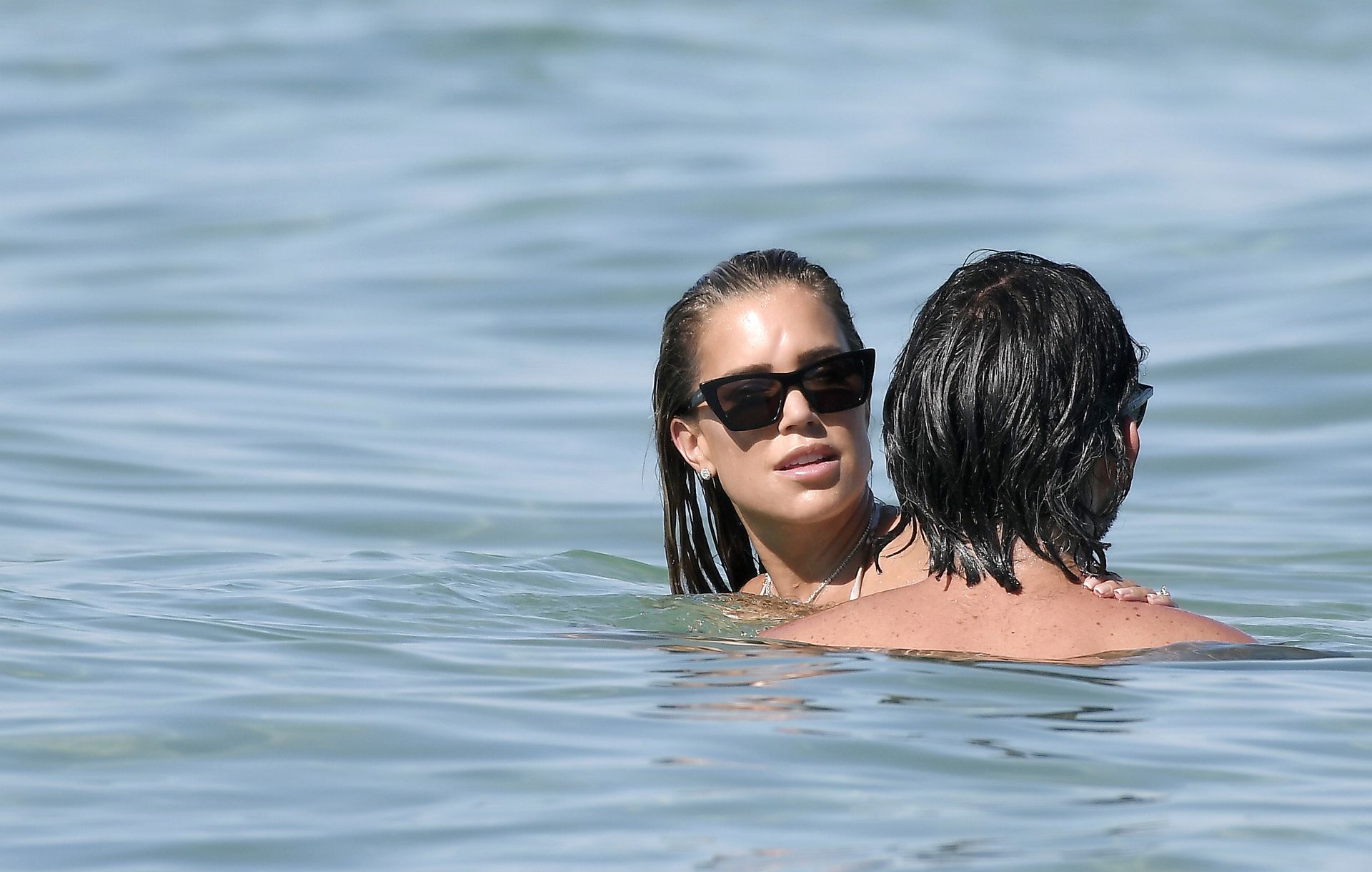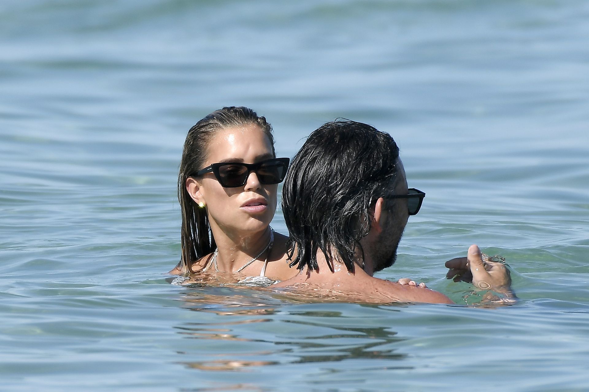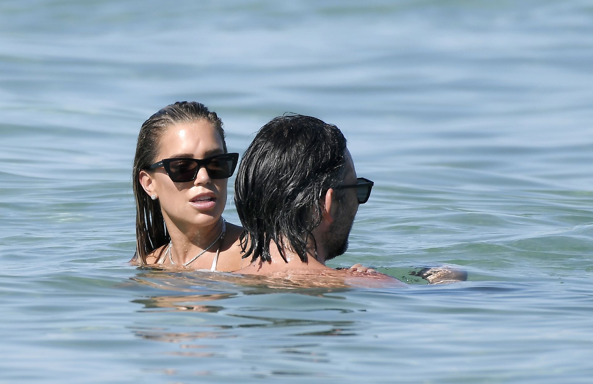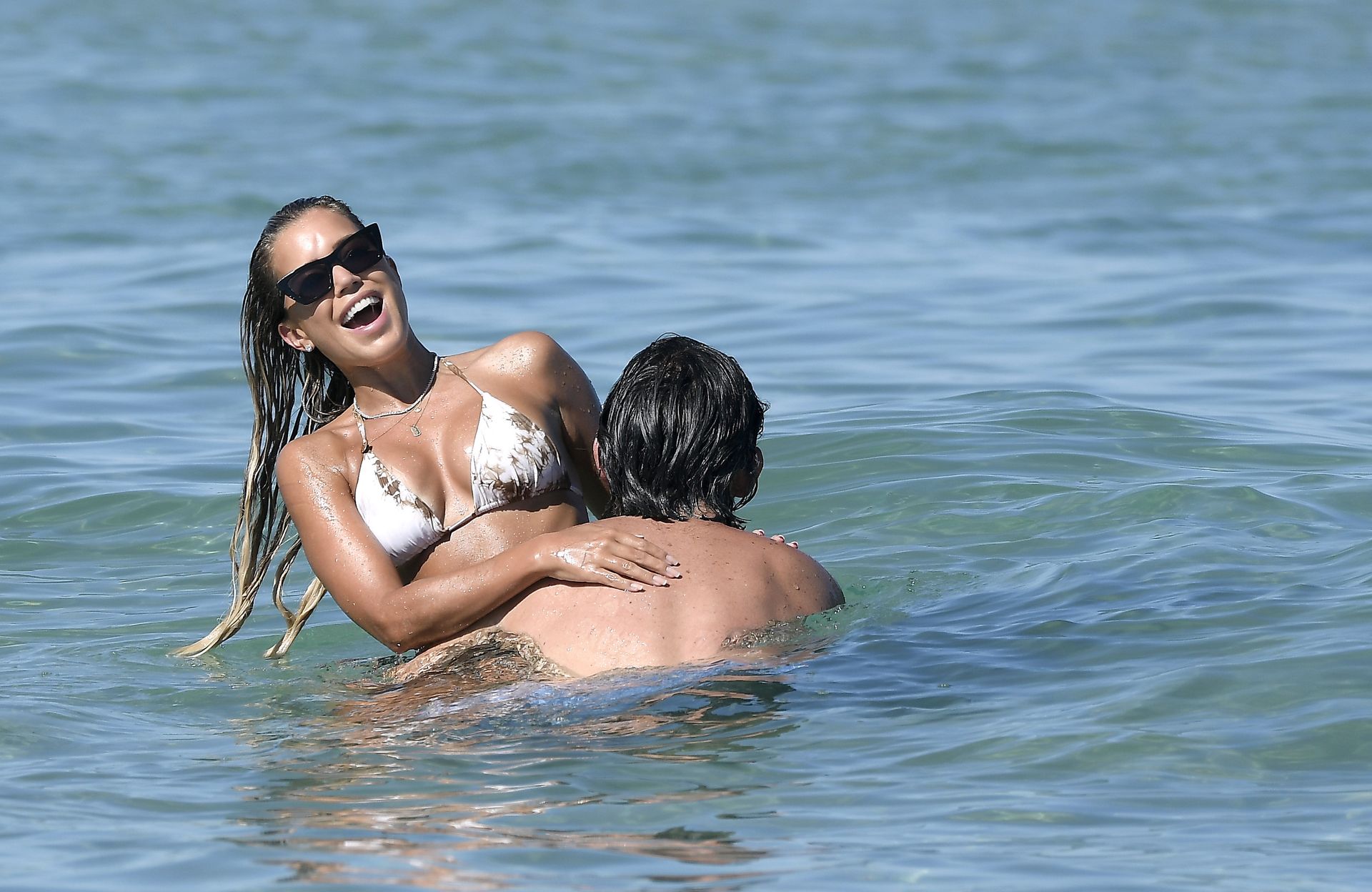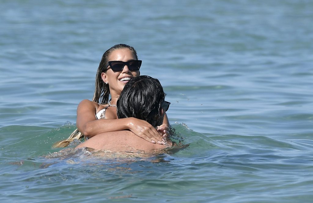 Recém-noiva, Sylvie Meis exibe seu corpo incrivelmente sexy de biquíni enquanto aproveita o sol com seu novo amor, o artista Niclas Castello, na praia La Reserve em Saint Tropez, 07/08/2020.
