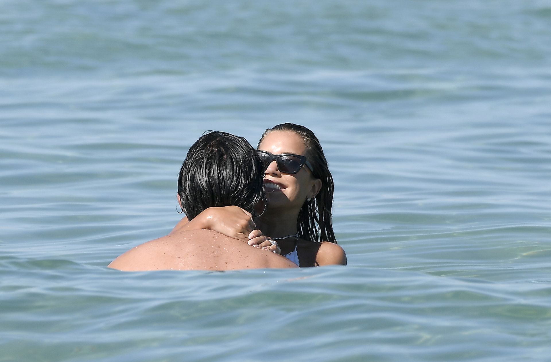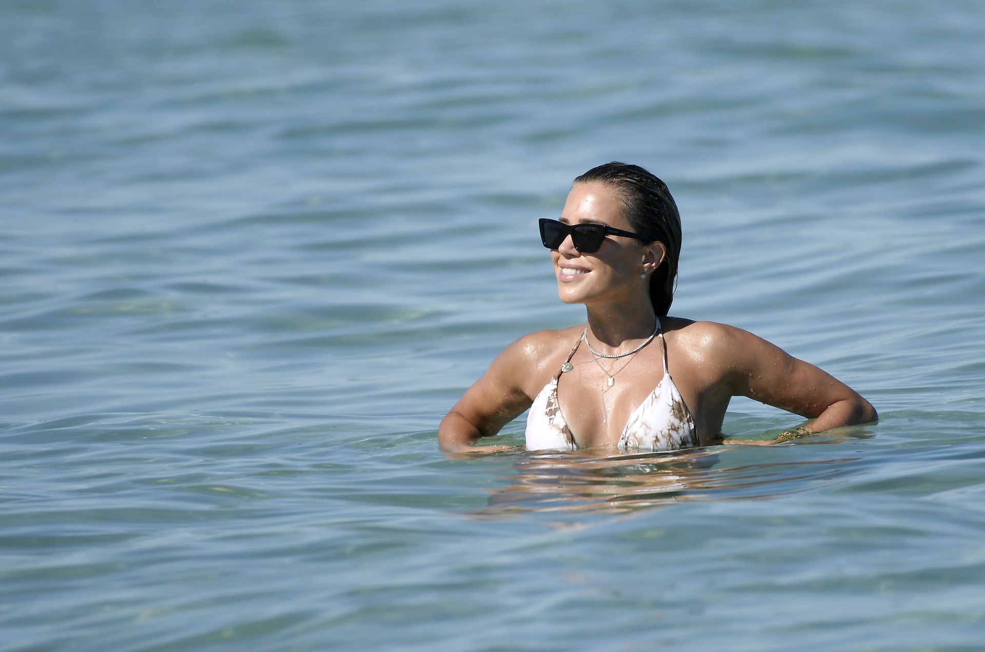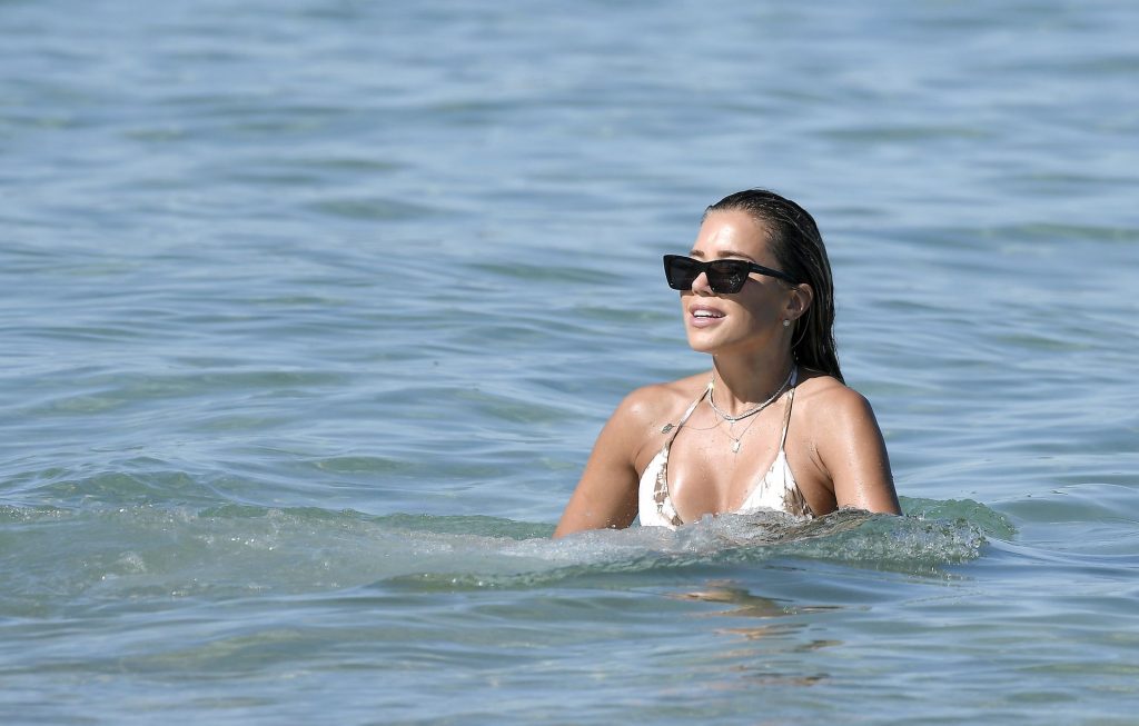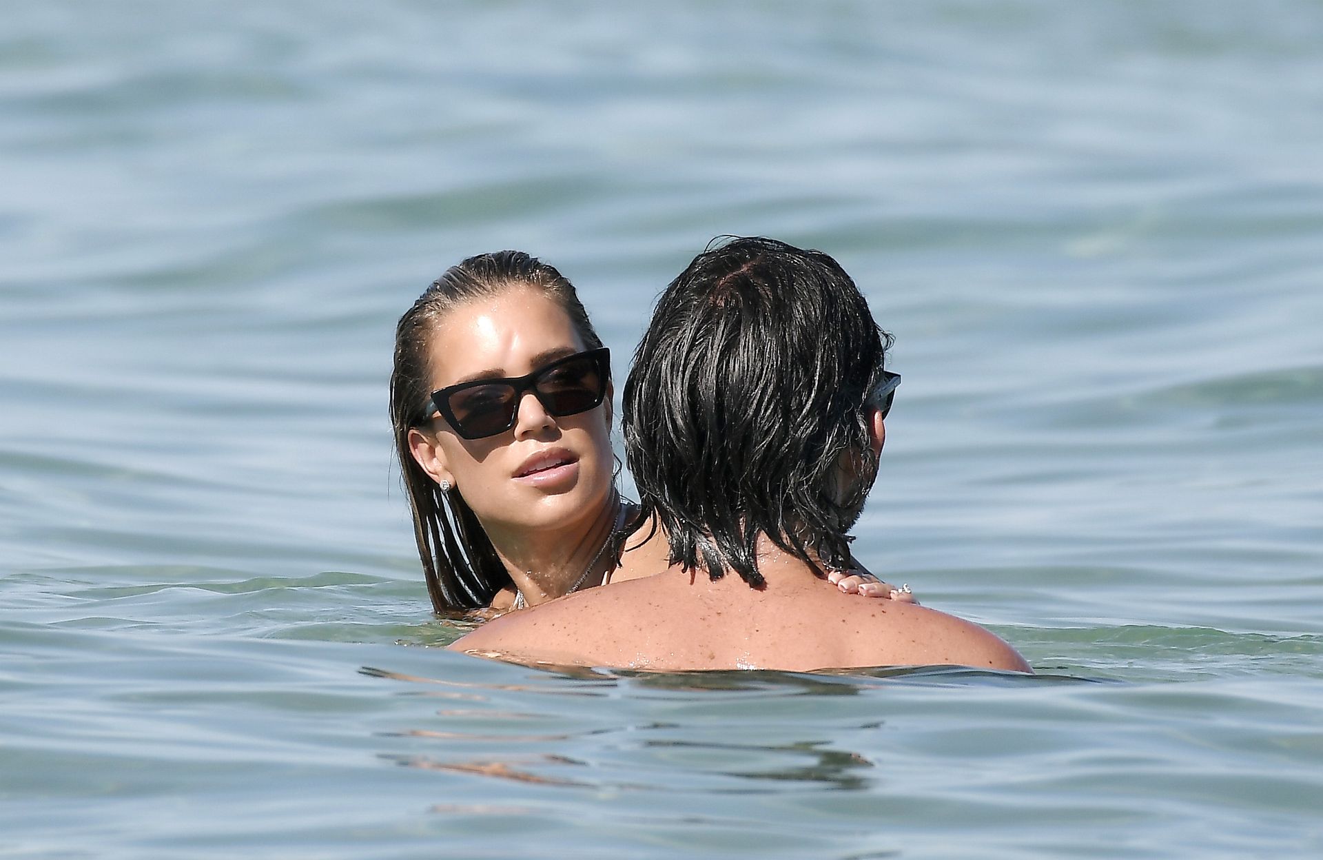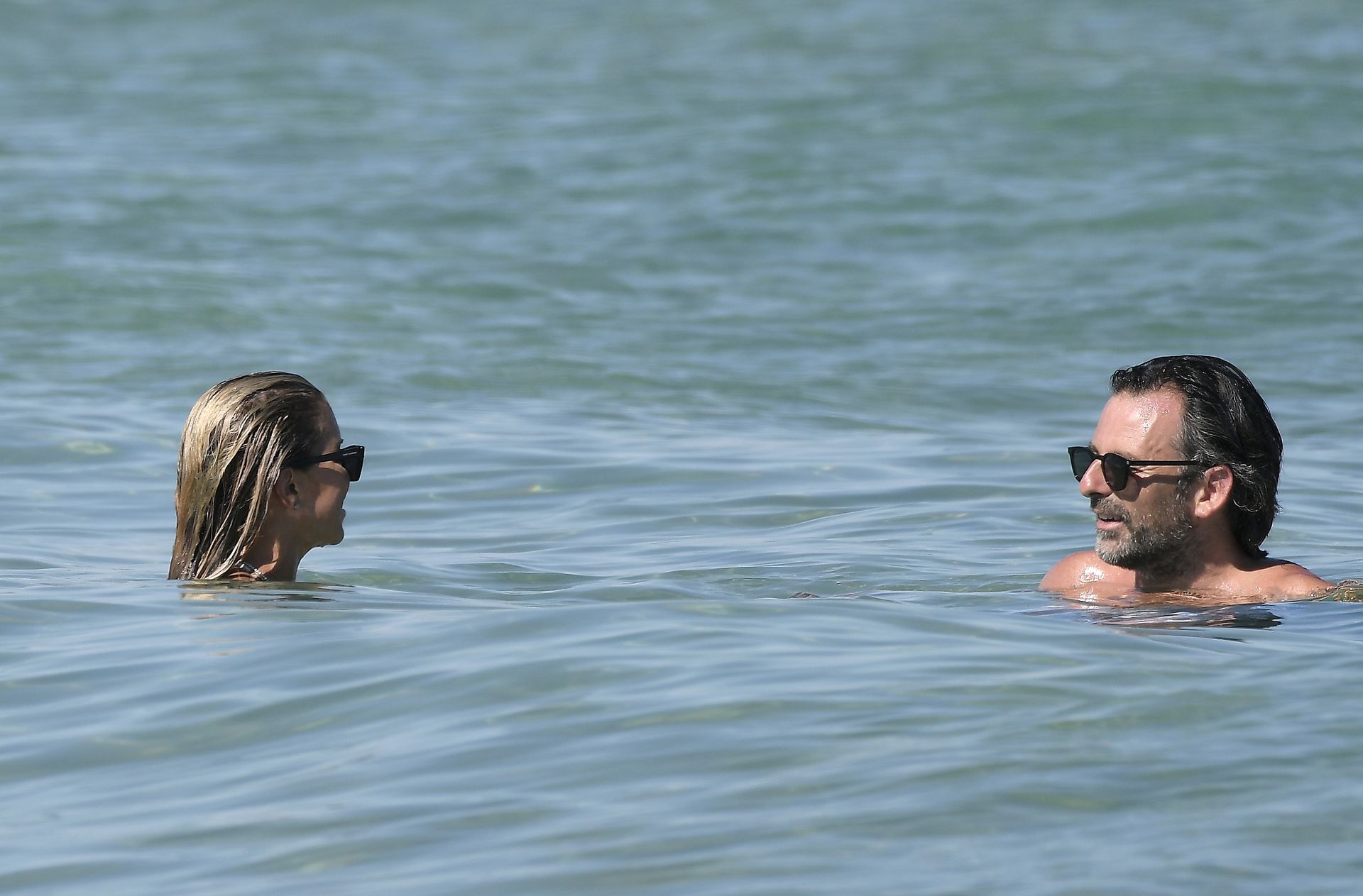 Recém-noiva, Sylvie Meis exibe seu corpo incrivelmente sexy de biquíni enquanto aproveita o sol com seu novo amor, o artista Niclas Castello, na praia La Reserve em Saint Tropez, 07/08/2020.