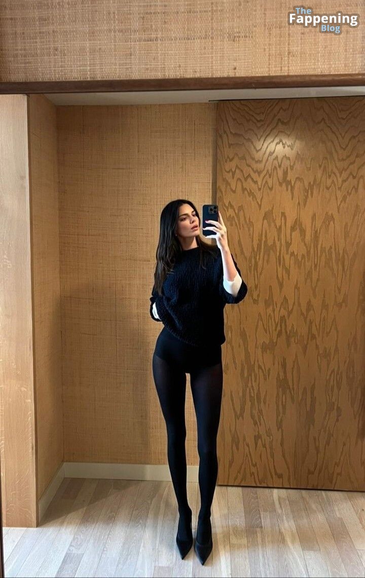 Kendall Jenner escolheu um look da nova coleção Primavera-Verão da Bottega Veneta – meia-calça preta, um suéter e scarpins clássicos, mas Kendall não usou saia!