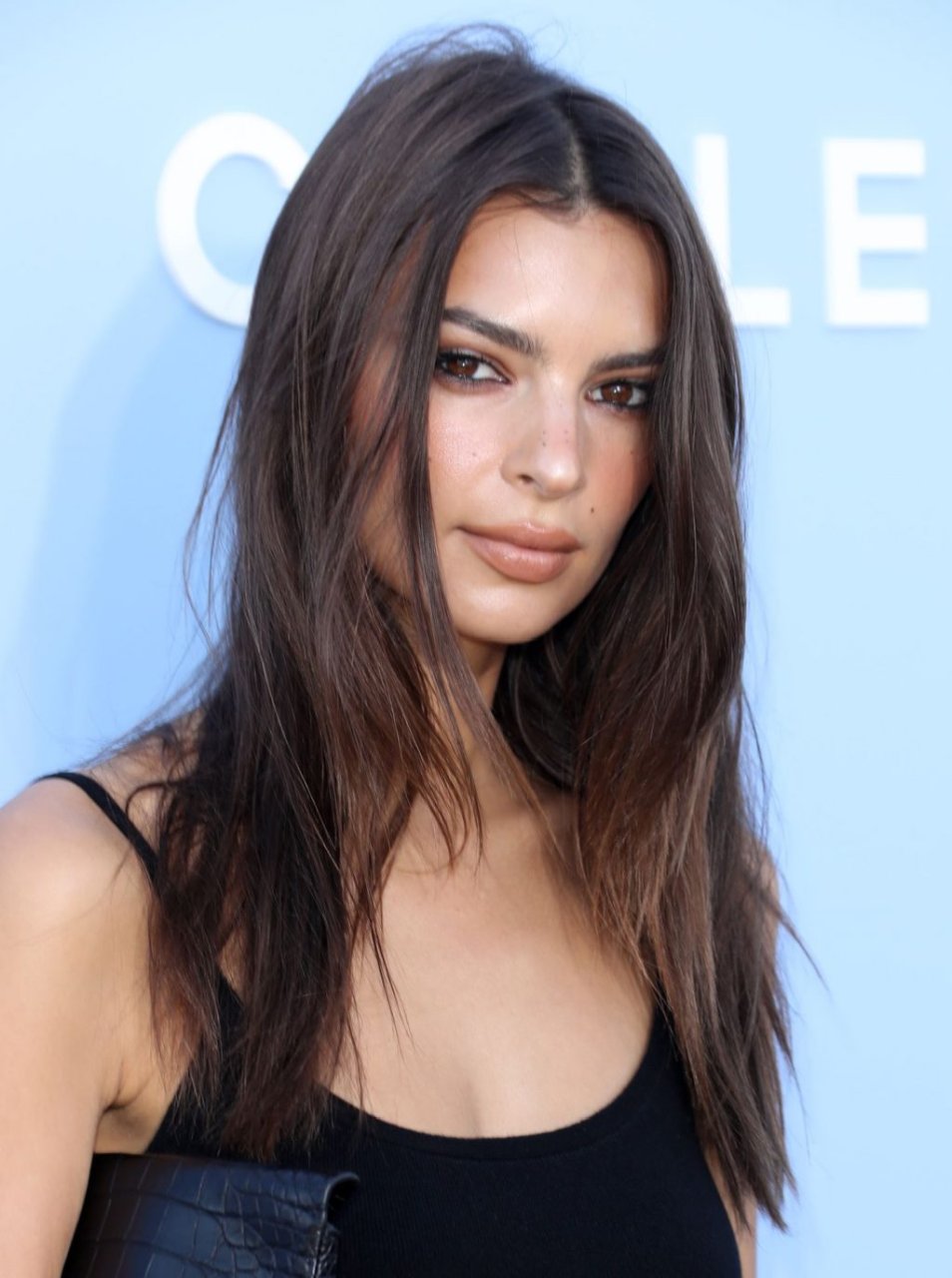 Model Emily Ratajkowski exibe seu decote enquanto descansa na praia com seu próprio maiô e um chapéu – Instagram, 14/10/2019.
