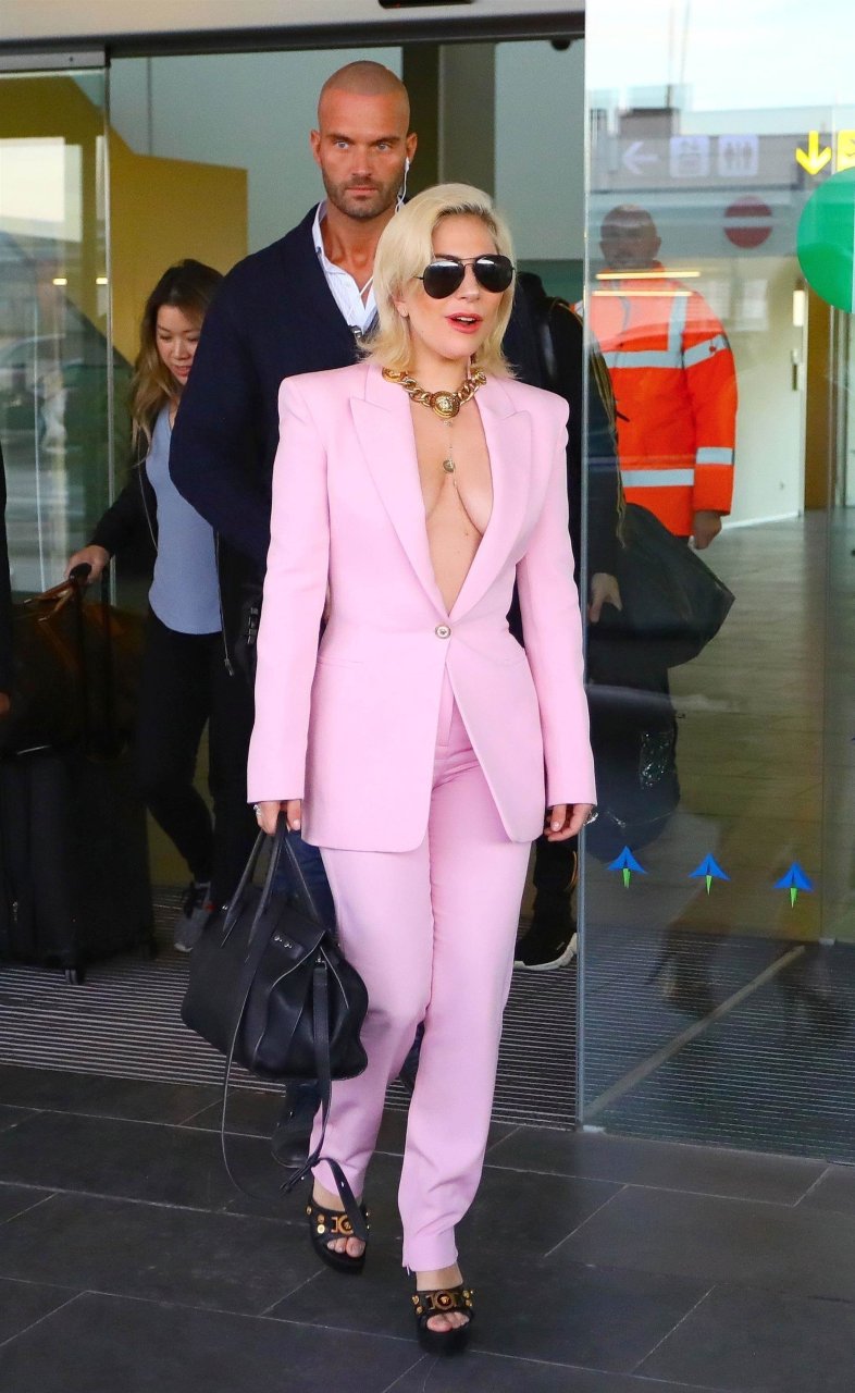 Lady Gaga sem sutiã chega ao Aeroporto Barcelona-El Prat em Barcelona, Espanha, 01/11/2018. Stefani Joanne Angelina Germanotta é cantora, compositora e atriz. Idade: 31 anos.