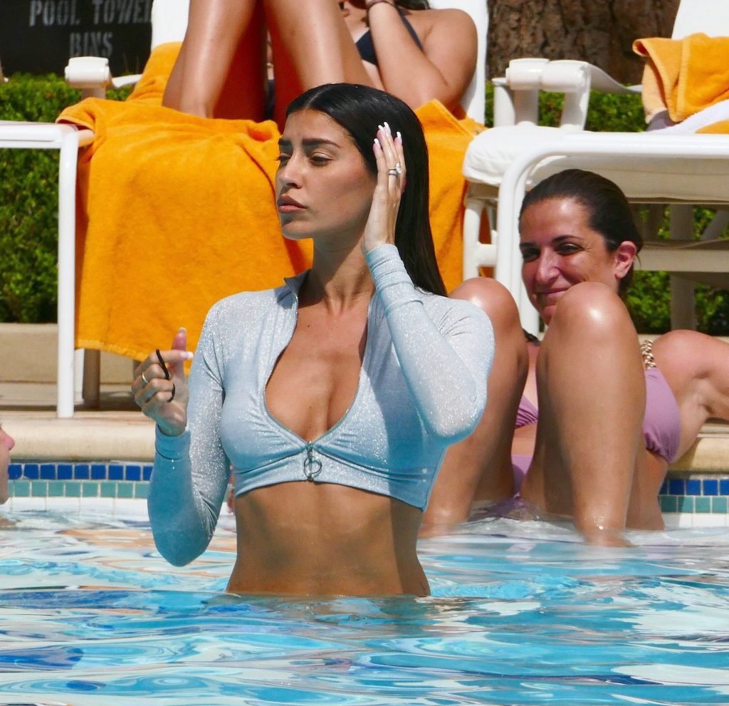 Nicole Williams exibe suas curvas e tem um momento de filme dos anos 80 “Curtindo a Vida Adoidado” ao entrar na piscina e depois sair para a alegria dos convidados da piscina dentro de seu hotel de luxo em Las Vegas, 19/08/2019.