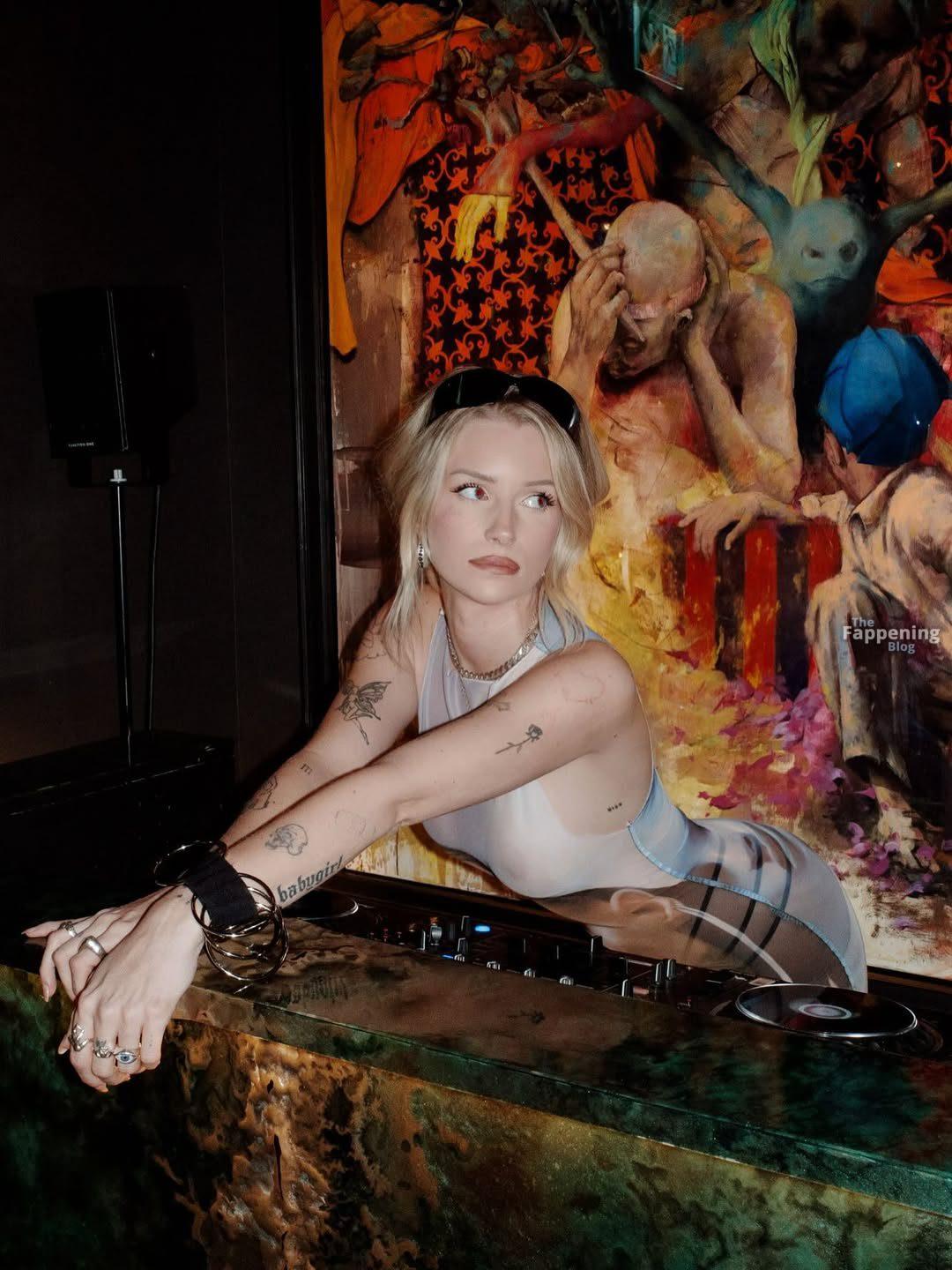 Lottie Moss posa com um vestido transparente, exibindo seus seios nus. Confira o visual sensual da sua noite selvagem como DJ.