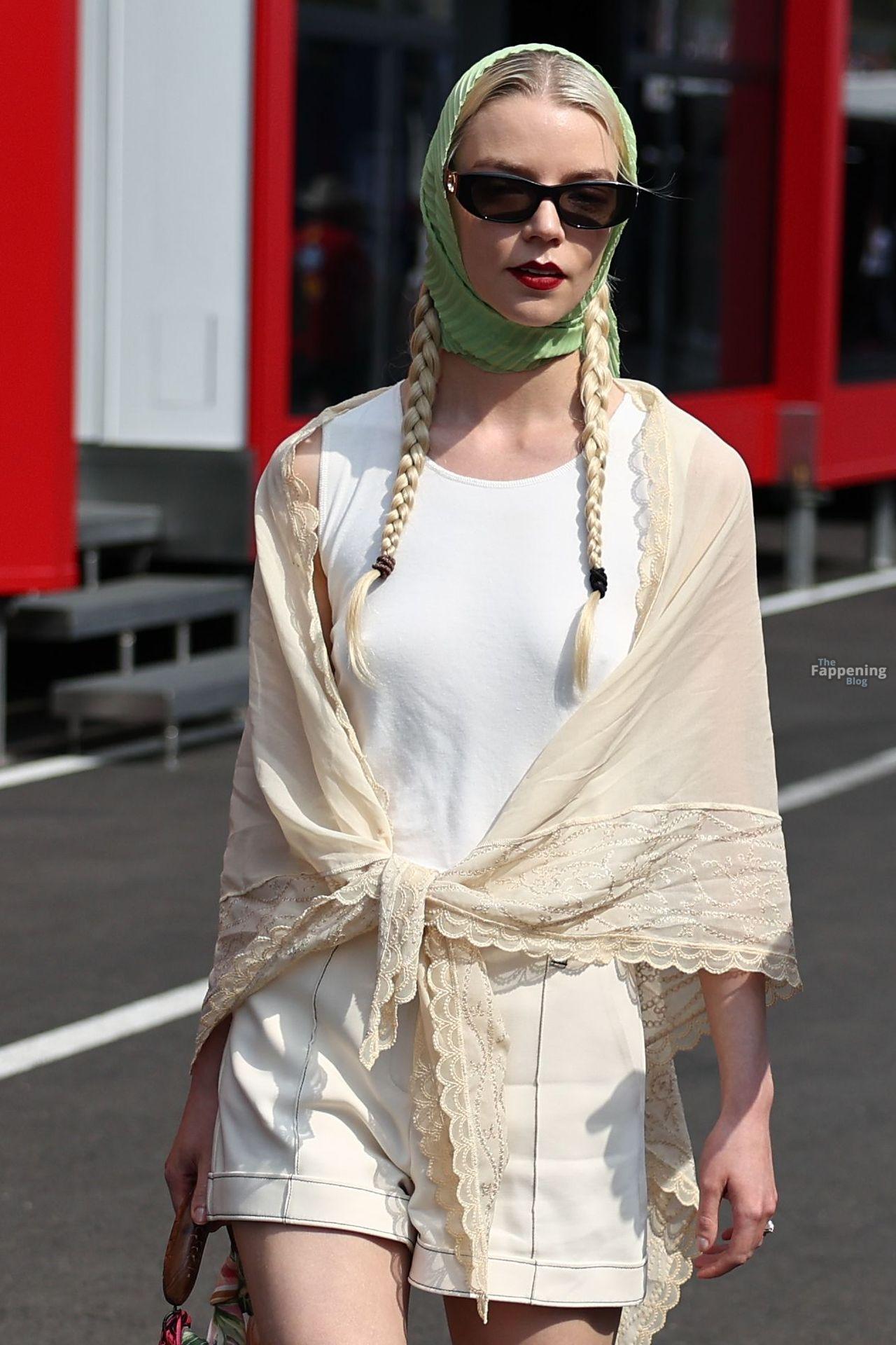 A atriz Anya Taylor-Joy foi vista sem sutiã na garagem da Scuderia Ferrari durante a classificação para o Grande Prêmio da Hungria de Fórmula 1 no Hungaroring, perto de Budapeste.