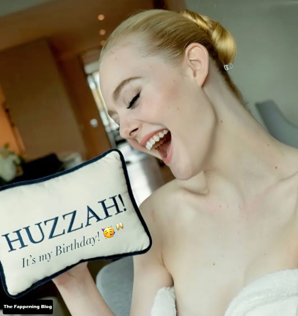 Elle Fanning exibe seu decote e um pouco de pele na foto das redes sociais abaixo.