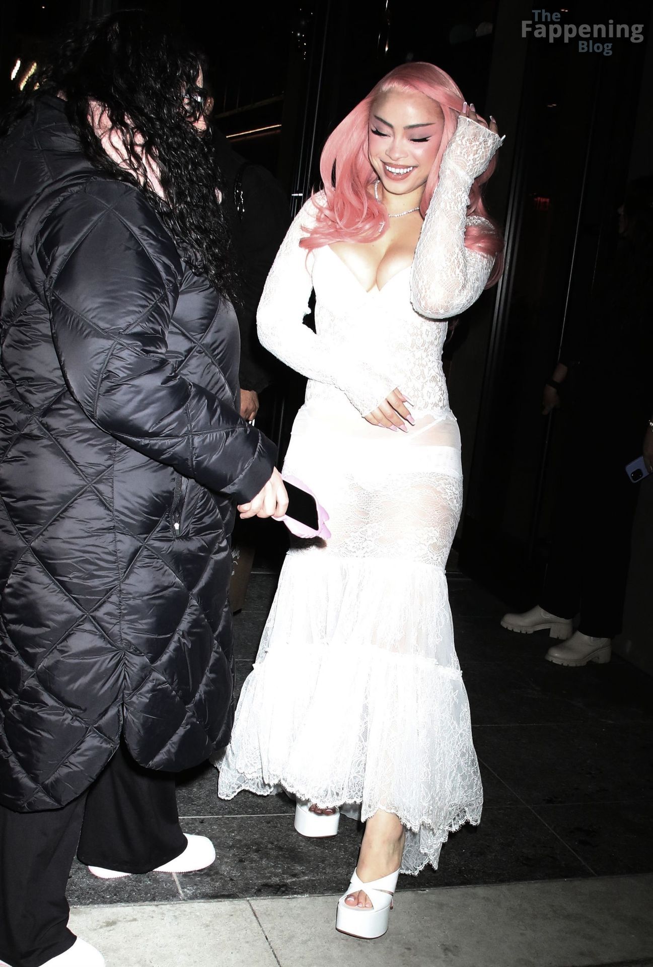 A rapper Ice Spice é vista em um vestido de renda no programa Watch What Happens Live with Andy Cohen.