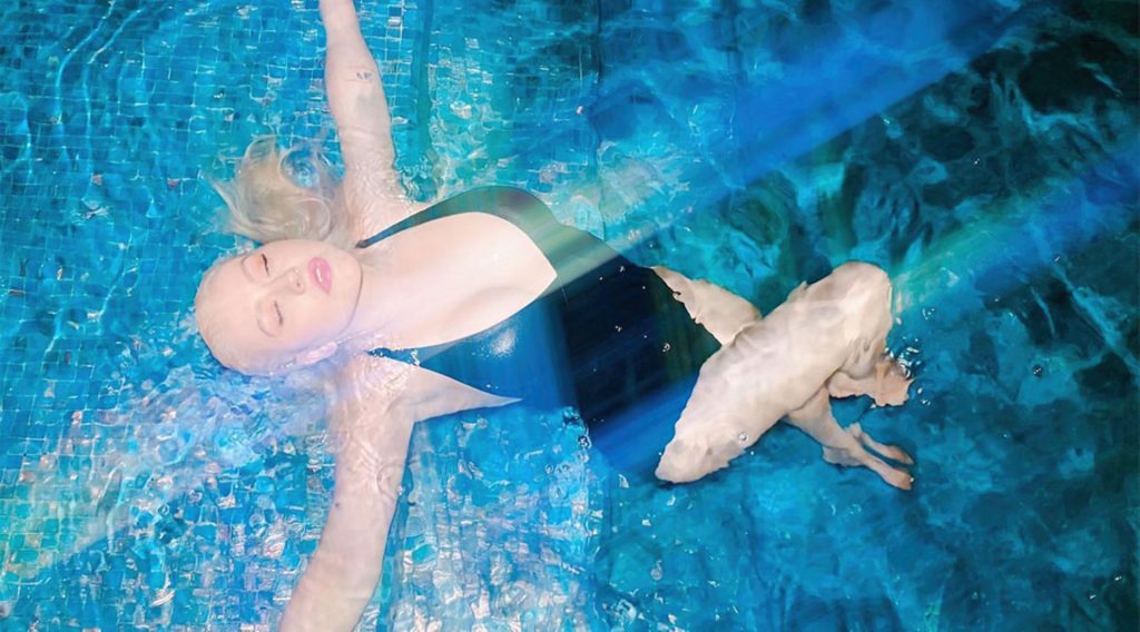 Cantora sexy Christina Aguilera exibe seus seios enquanto nada com maiô na piscina para seu ensaio fotográfico nas redes sociais, 16/05/2020.