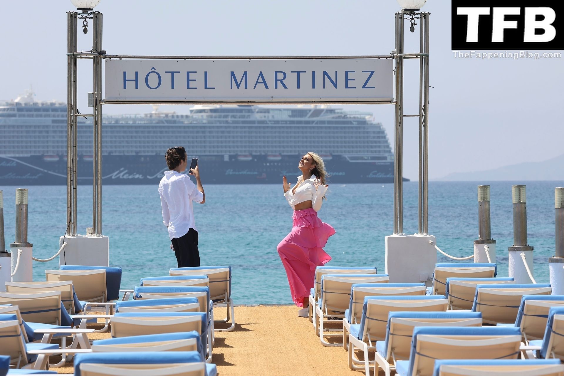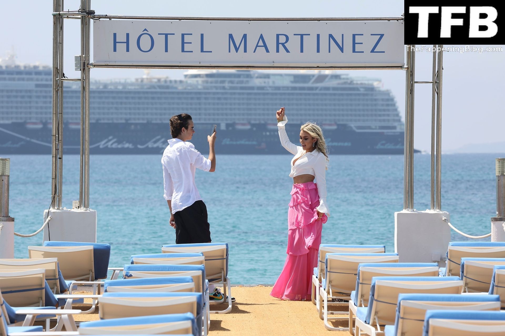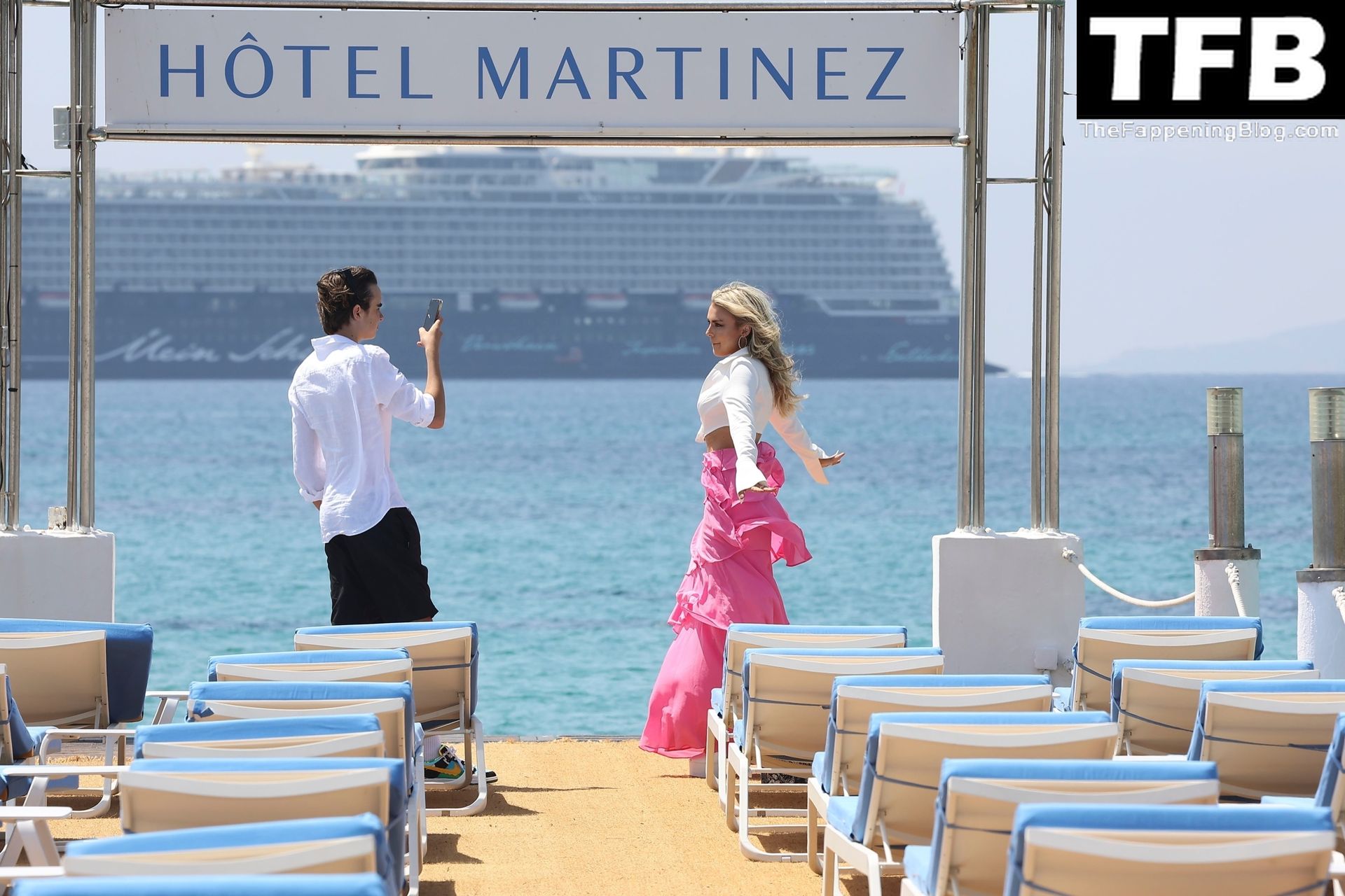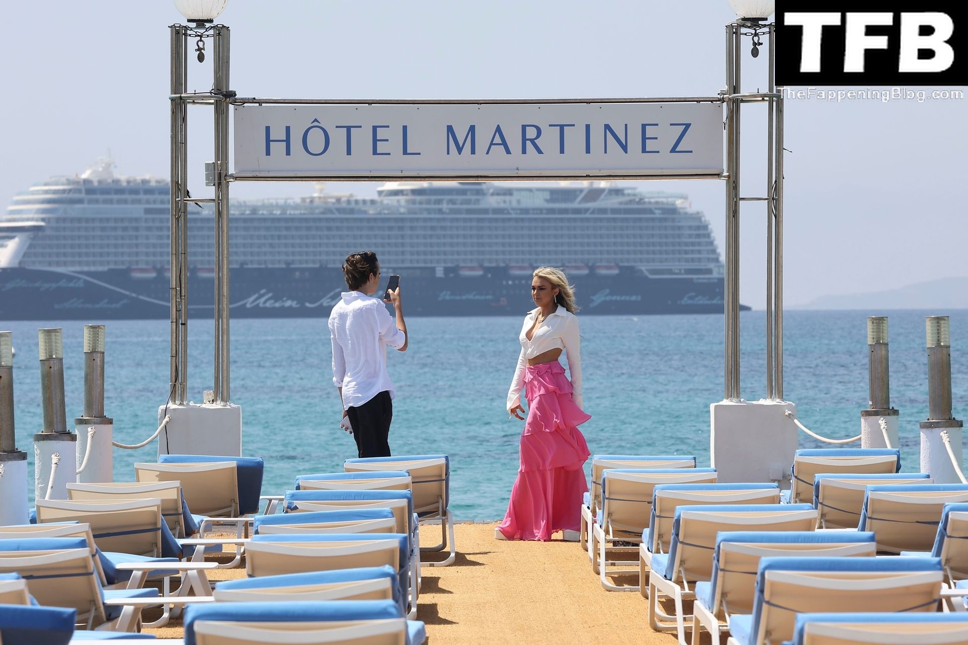 Tallia Storm é vista no Hotel Beach Martinez durante o 75º Festival de Cinema de Cannes em Cannes, 17/05/2022. A cantora do Reino Unido com seu irmão Tony aproveita estar sozinha na plataforma.