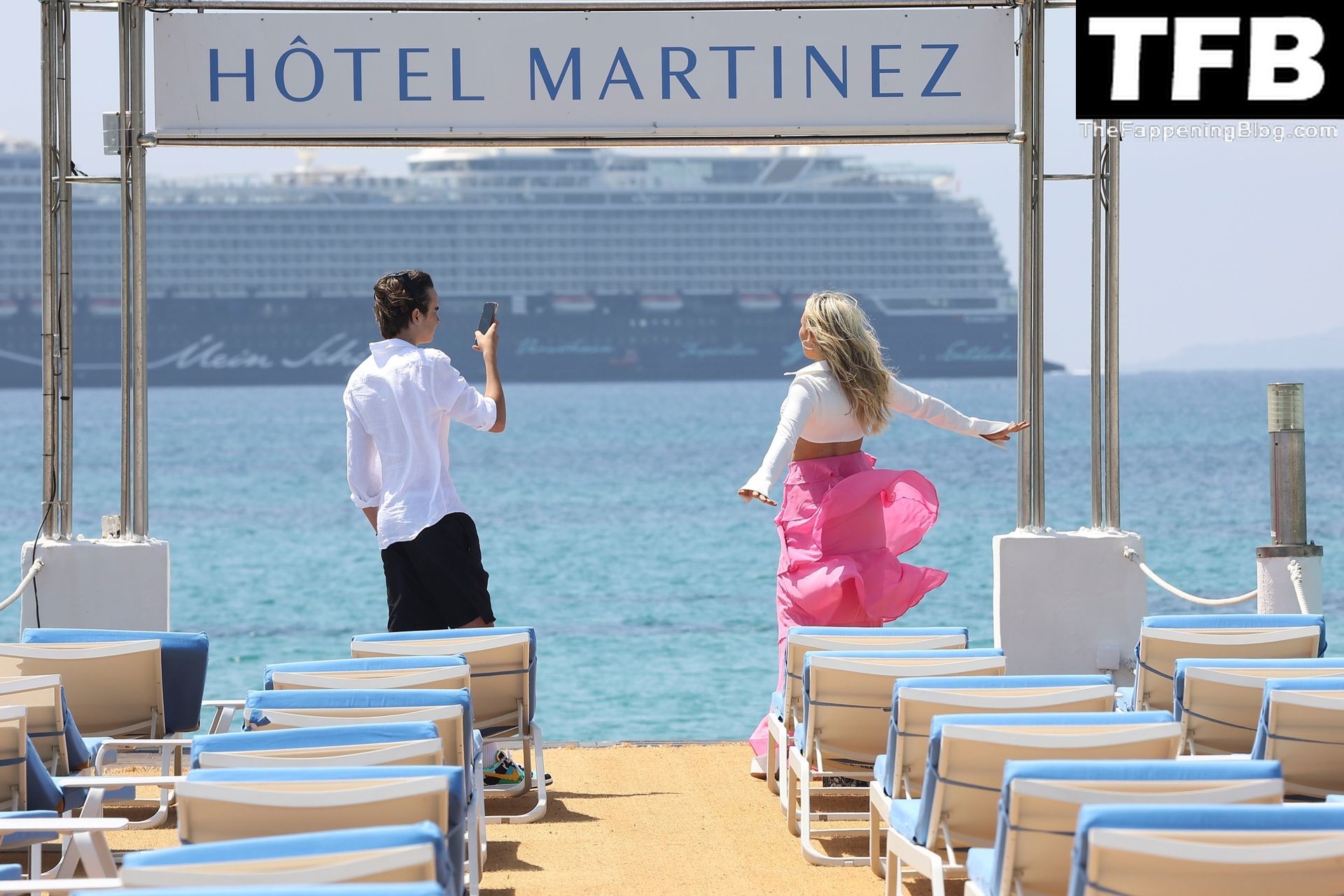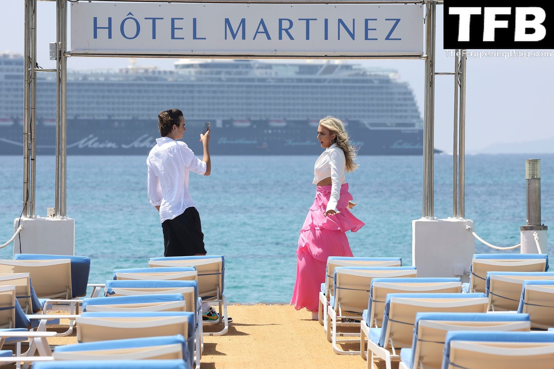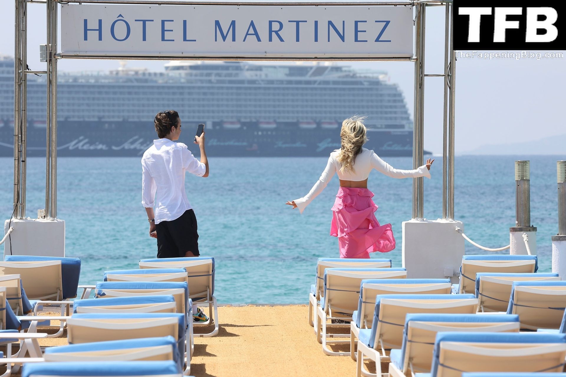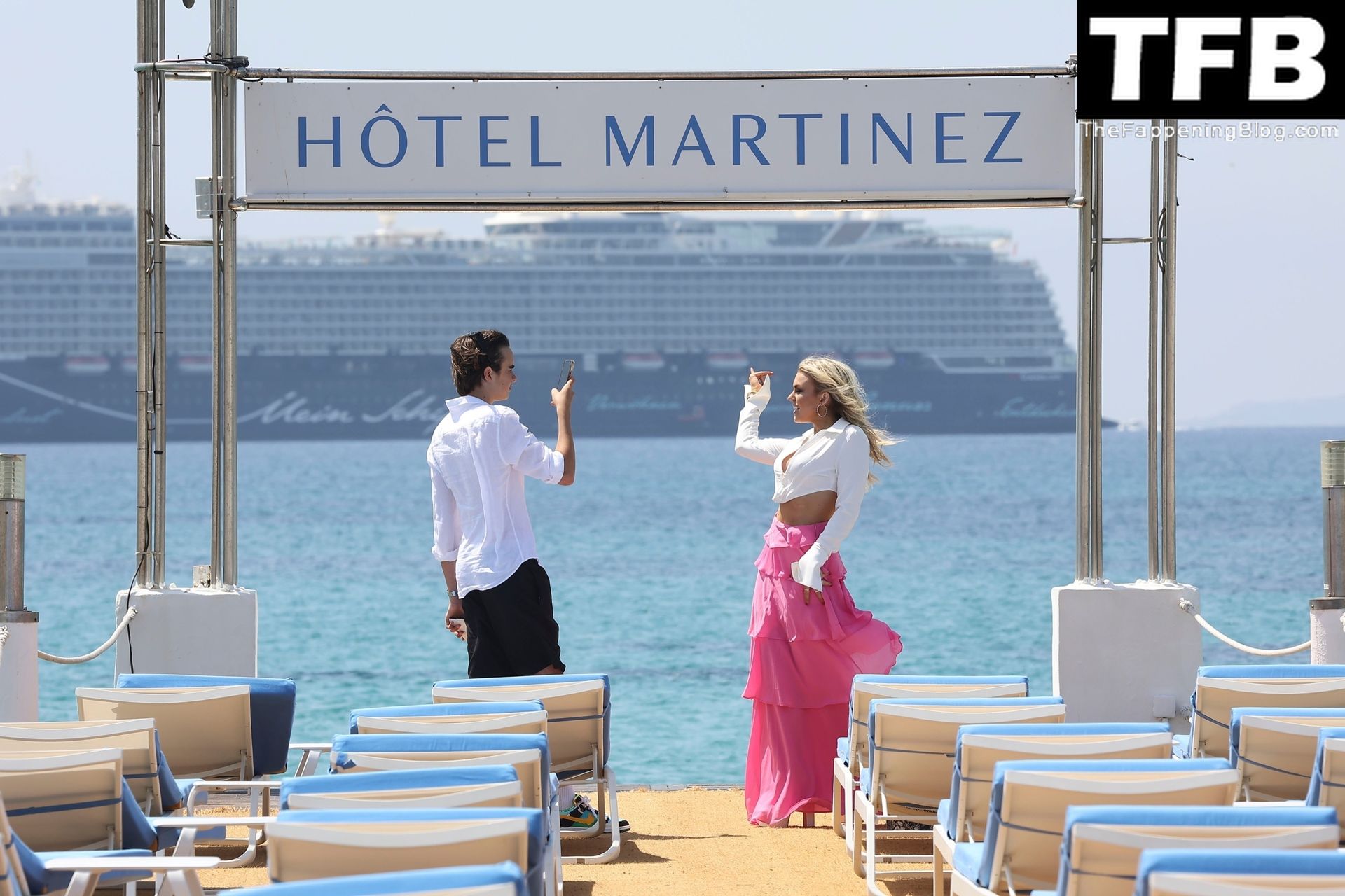 Tallia Storm é vista no Hotel Beach Martinez durante o 75º Festival de Cinema de Cannes em Cannes, 17/05/2022. A cantora do Reino Unido com seu irmão Tony aproveita estar sozinha na plataforma.