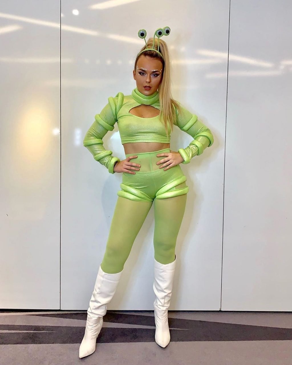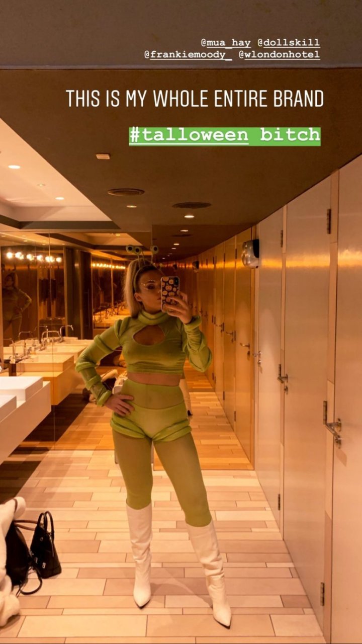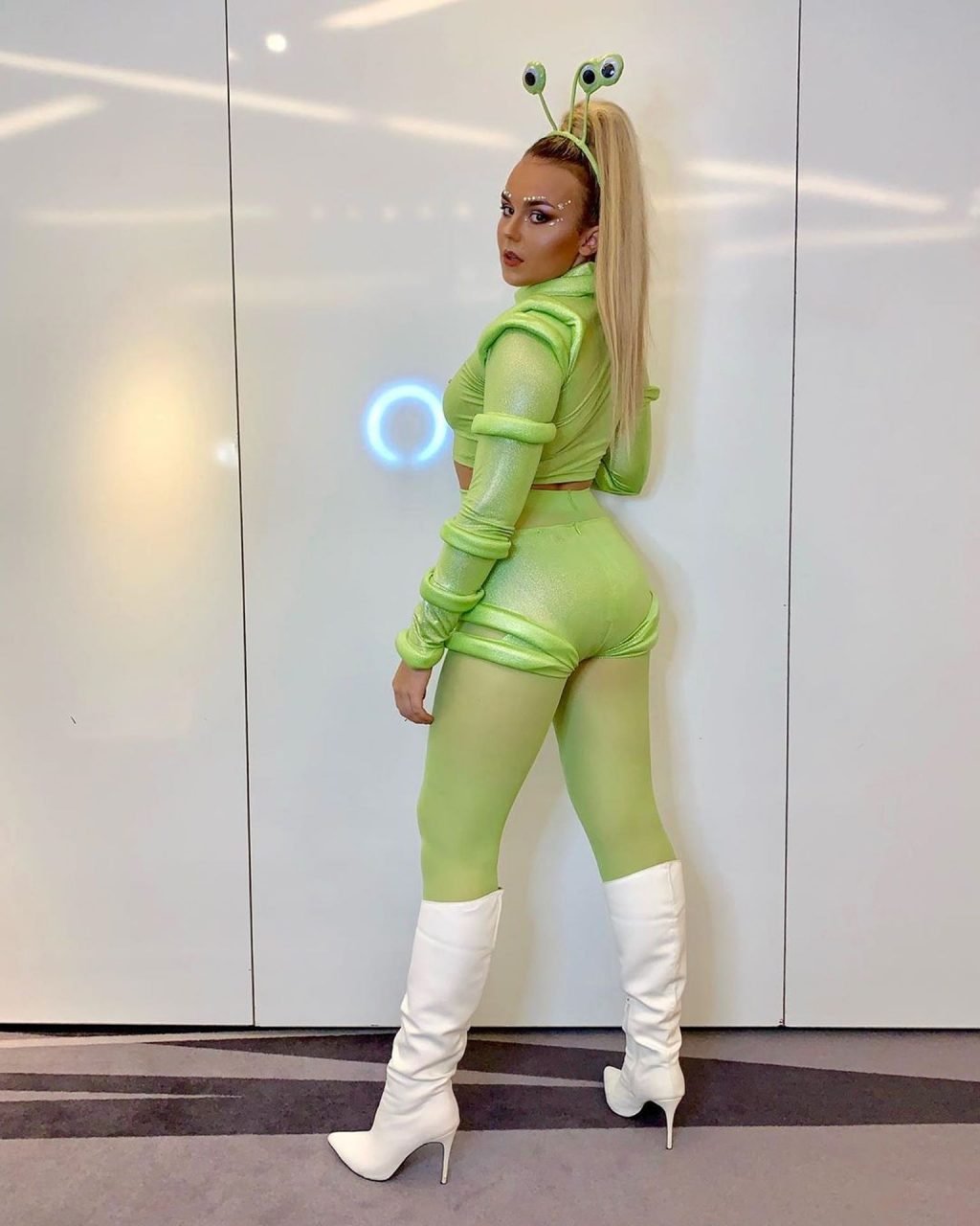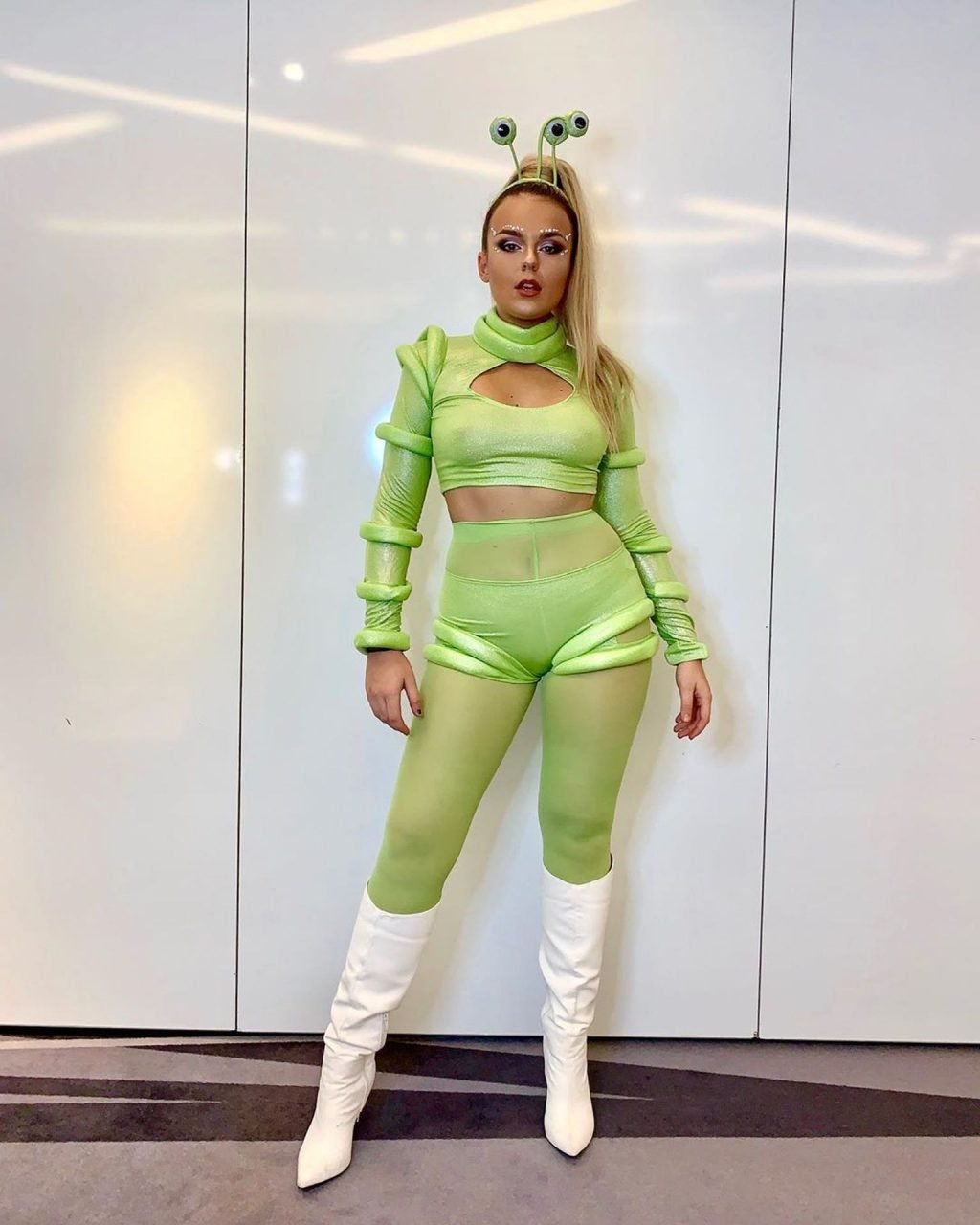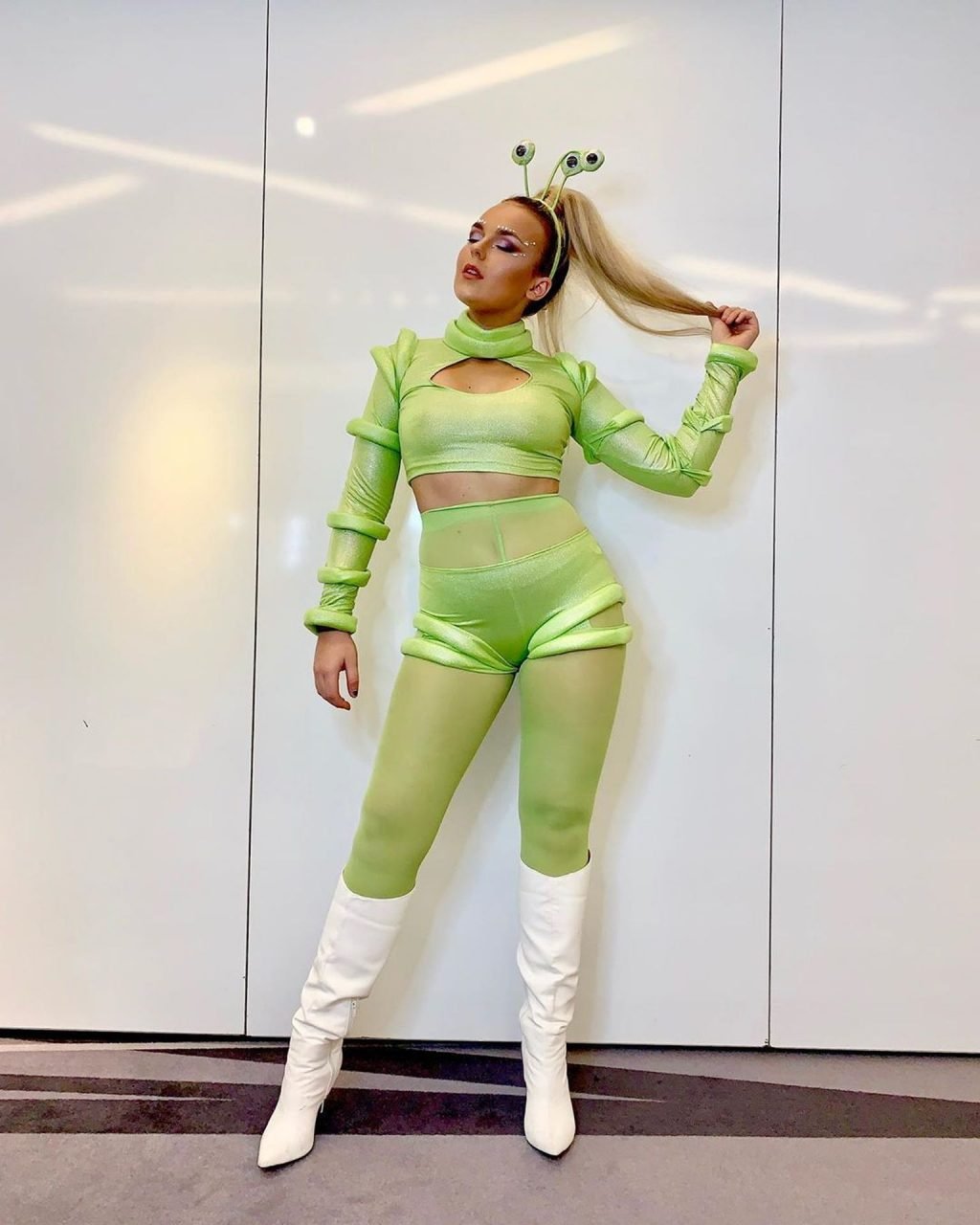 Singer Tallia Storm was pictured in a green costume while arriving at the Halloween party in London, 10/25/2019.