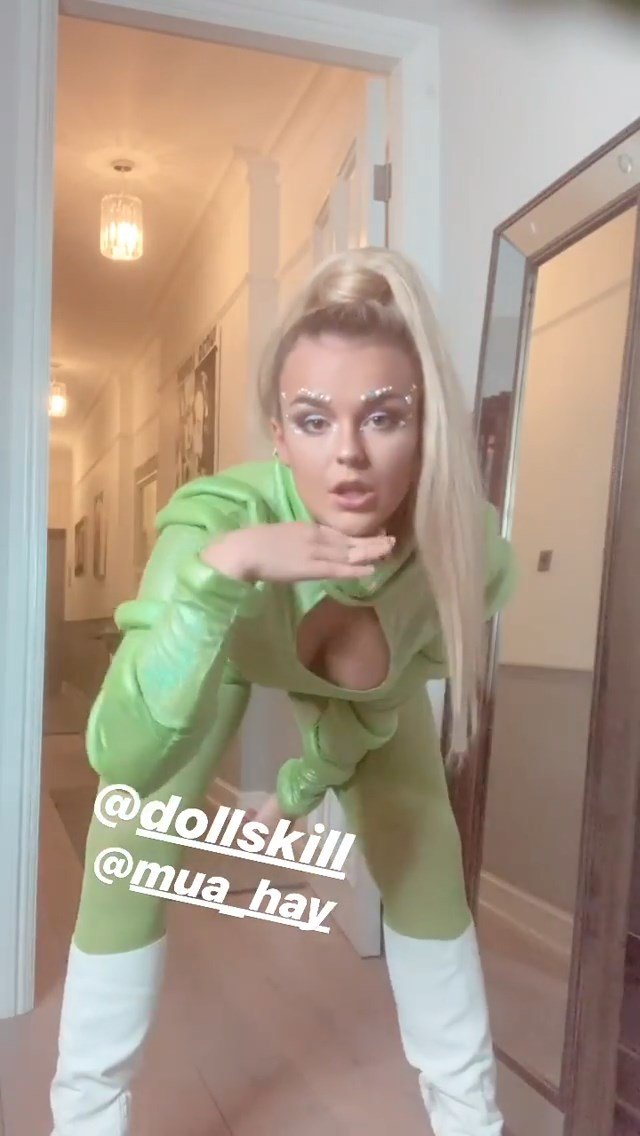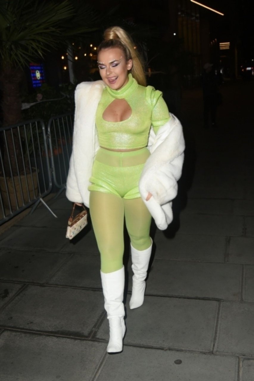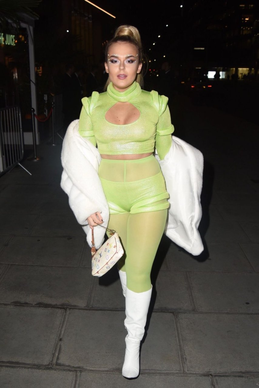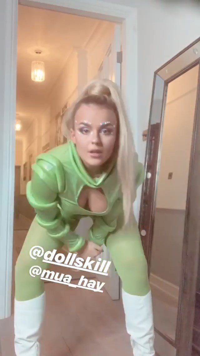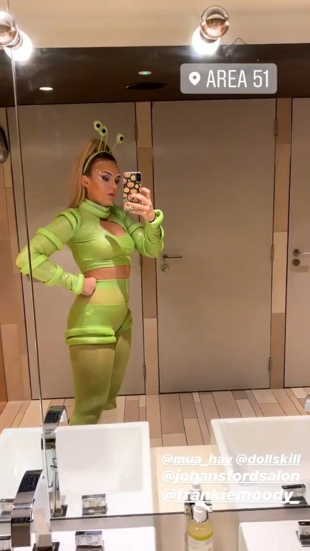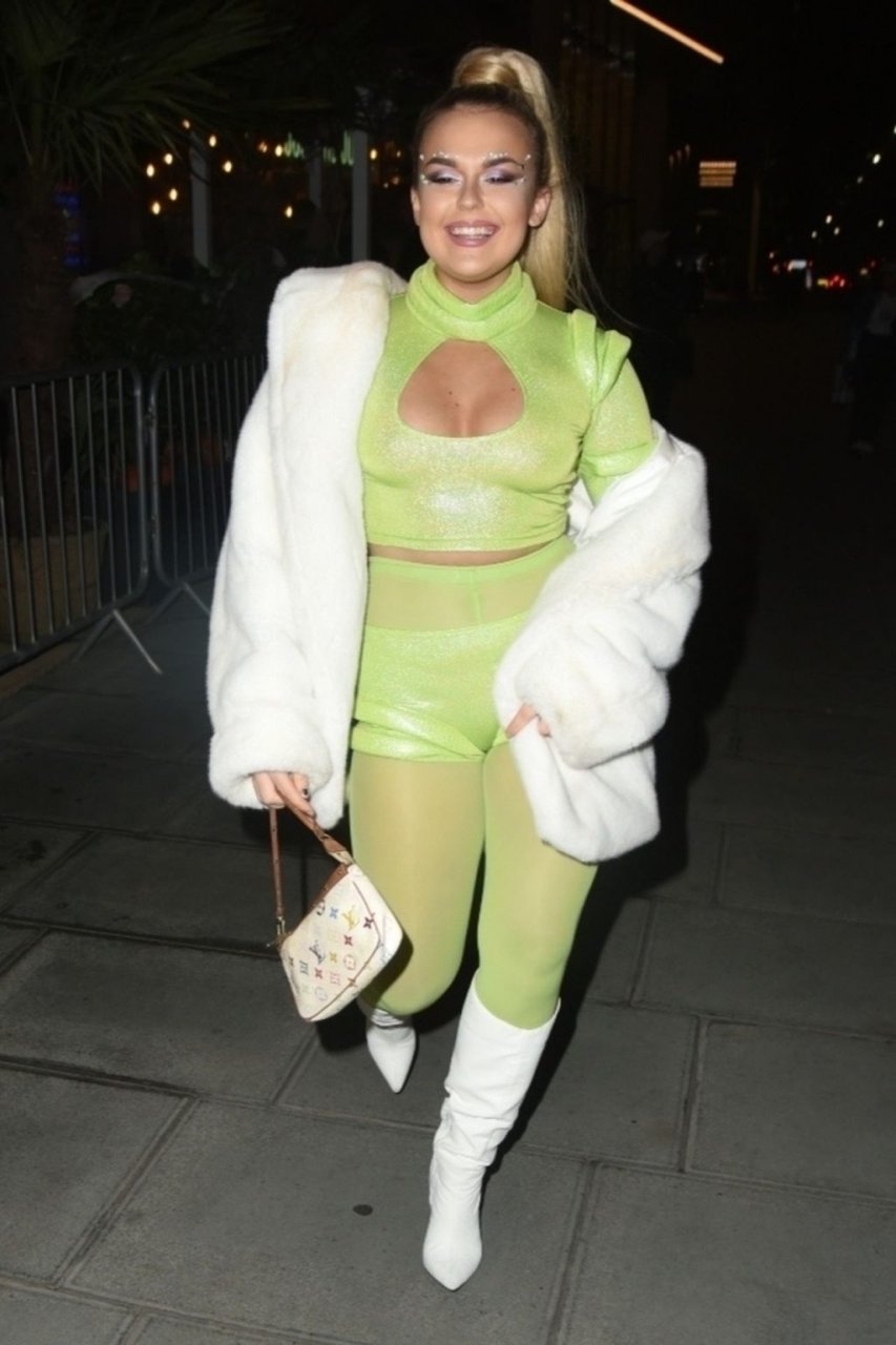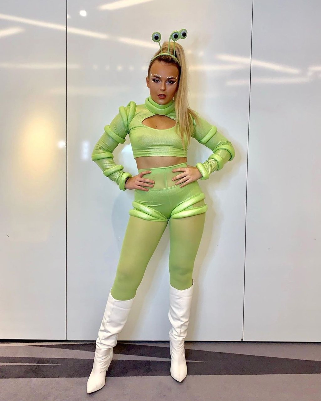 Singer Tallia Storm was pictured in a green costume while arriving at the Halloween party in London, 10/25/2019.