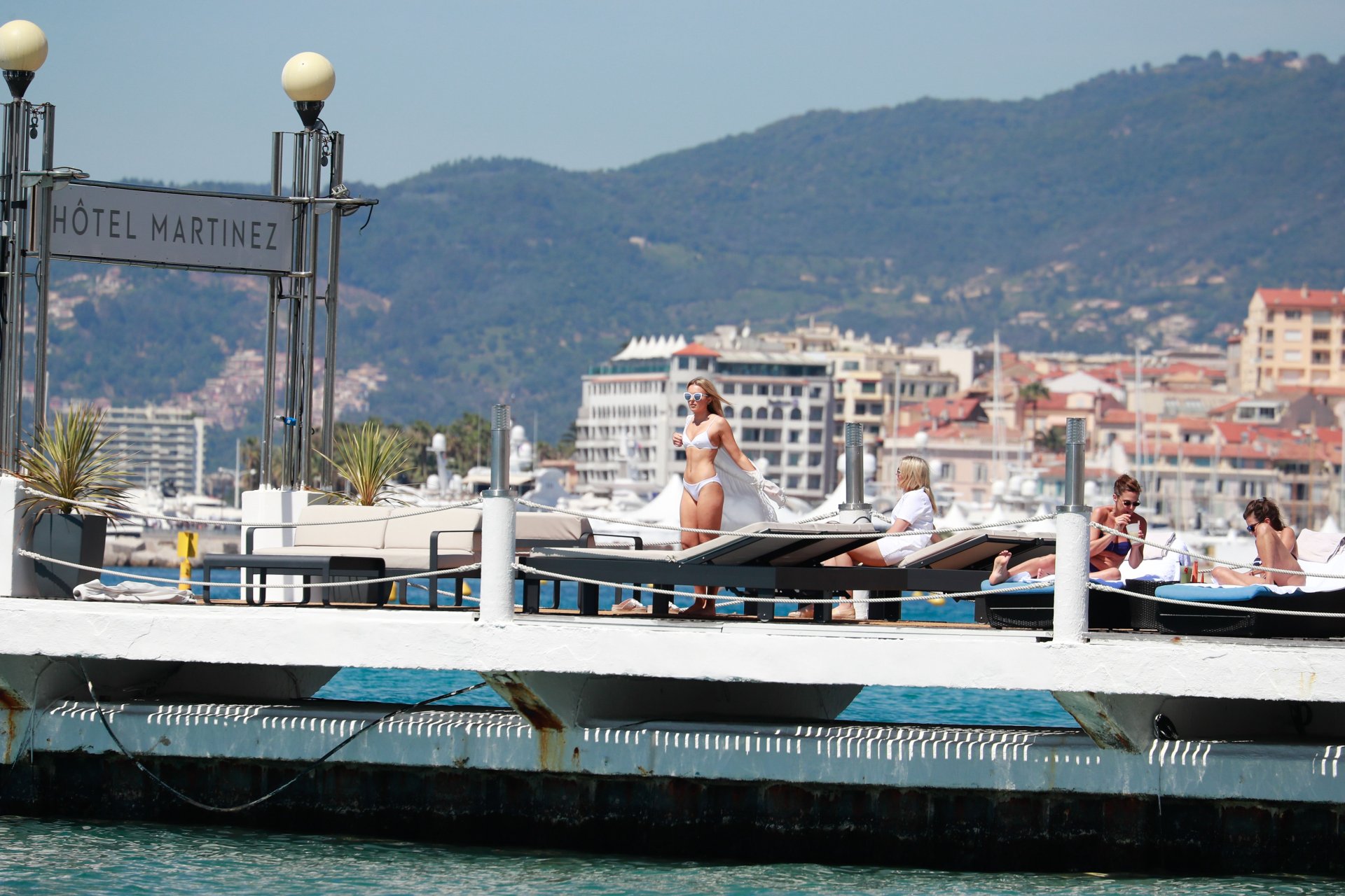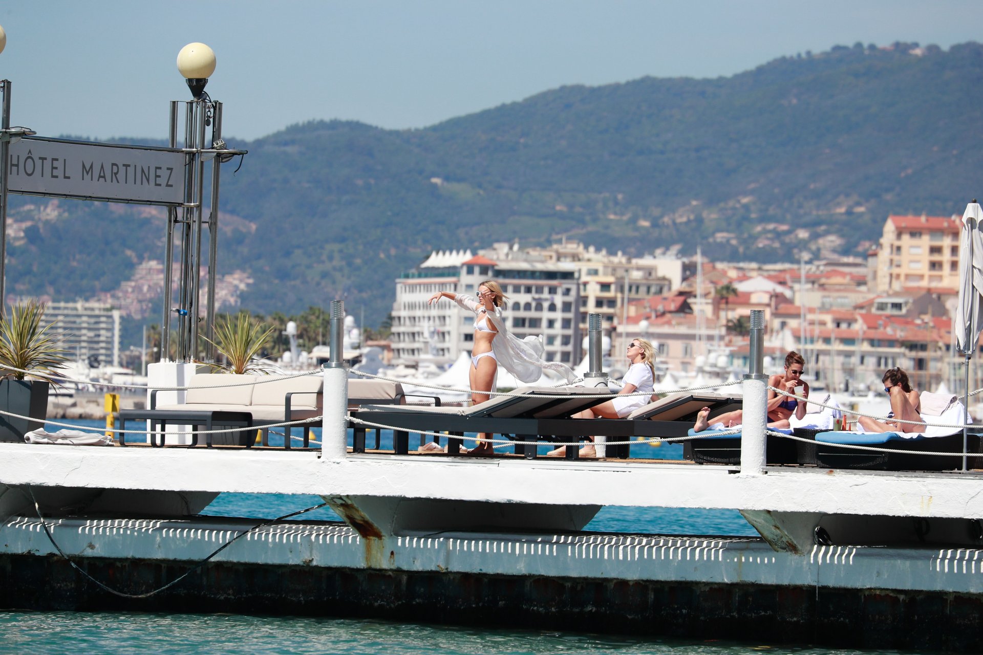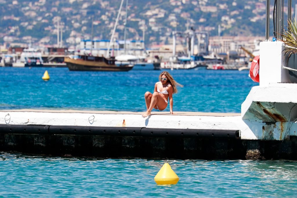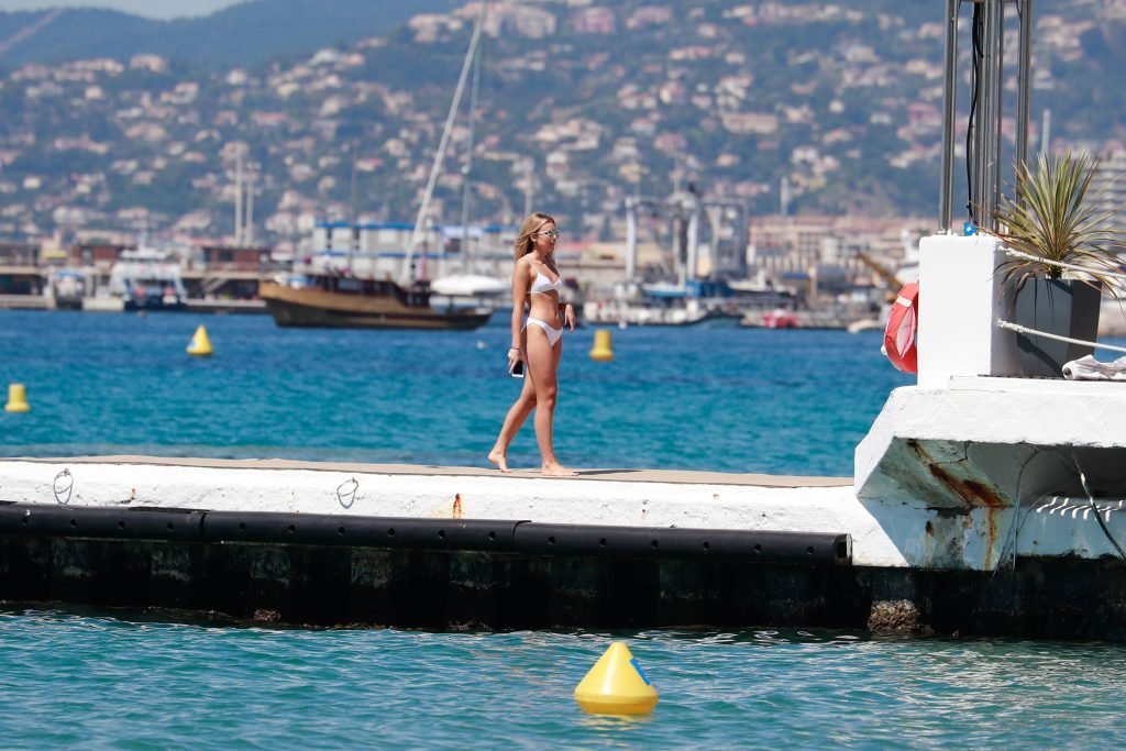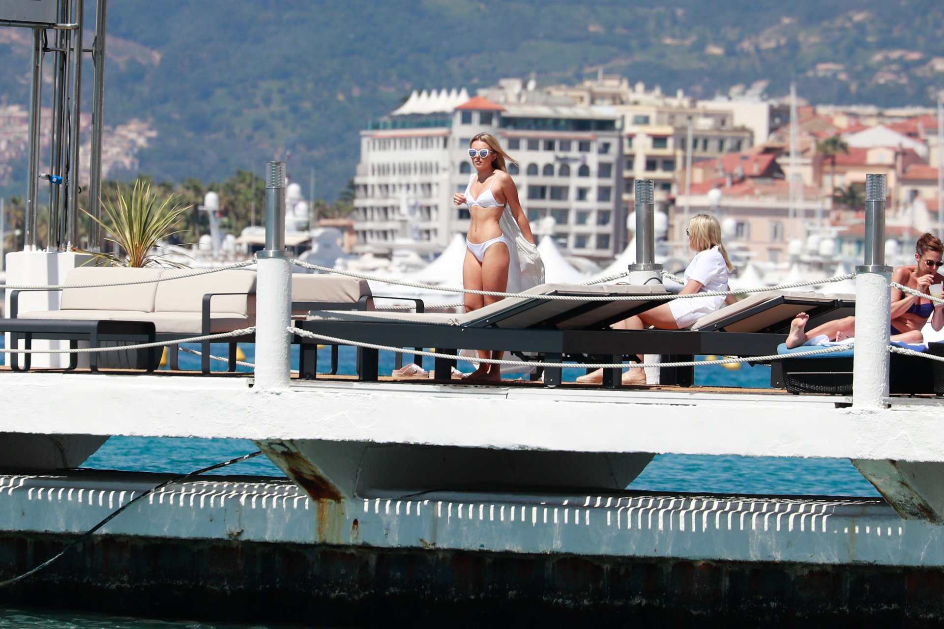 Tallia Storm é vista de biquíni branco em Cannes, 21/05/2017. Natalya Storm Hartmann é uma cantora escocesa. Nascida em: Glasgow, Reino Unido. Idade: 18.