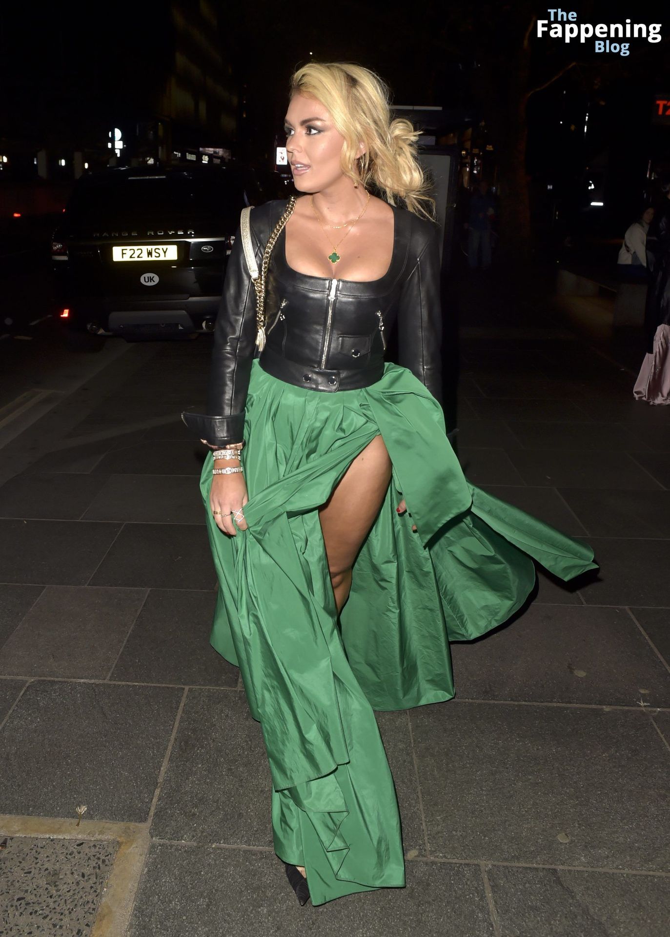 Prepare-se para ficar impressionado com o decote e as pernas sexy da cantora do Reino Unido Tallia Storm na estreia de Crop Circles em Londres.