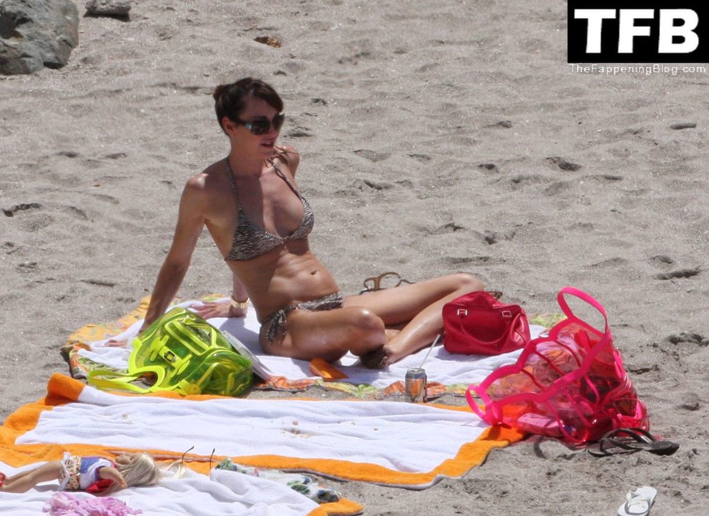 Tamara Mellon exibe seu corpo deslumbrante de biquíni enquanto aproveita um dia ensolarado na praia.