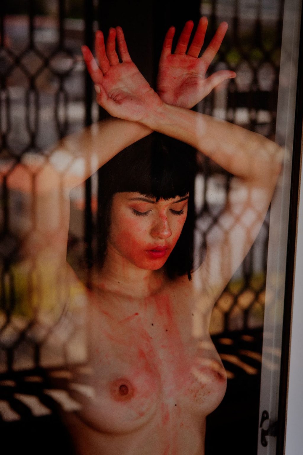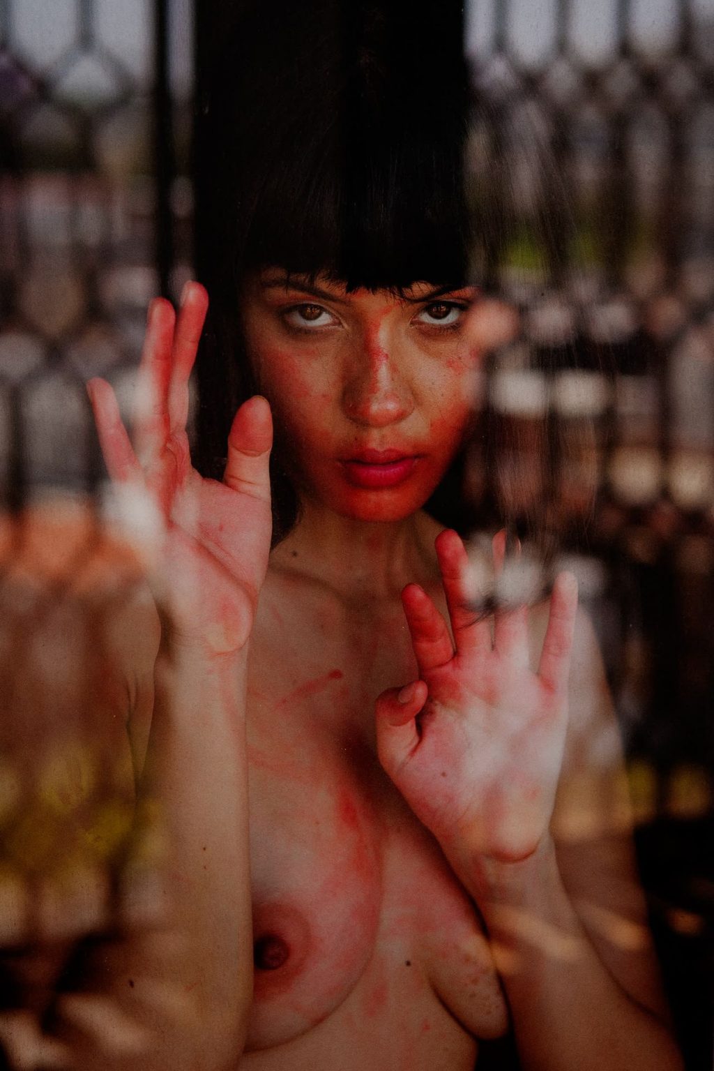 É hora de algo fora do comum! A artista e modelo de Caracas, Tania Mafilito, mostra seus seios em um ensaio fotográfico “Bloody Kisses” por Rafael Mesa (2019). Ela provavelmente tem uma namorada louca!