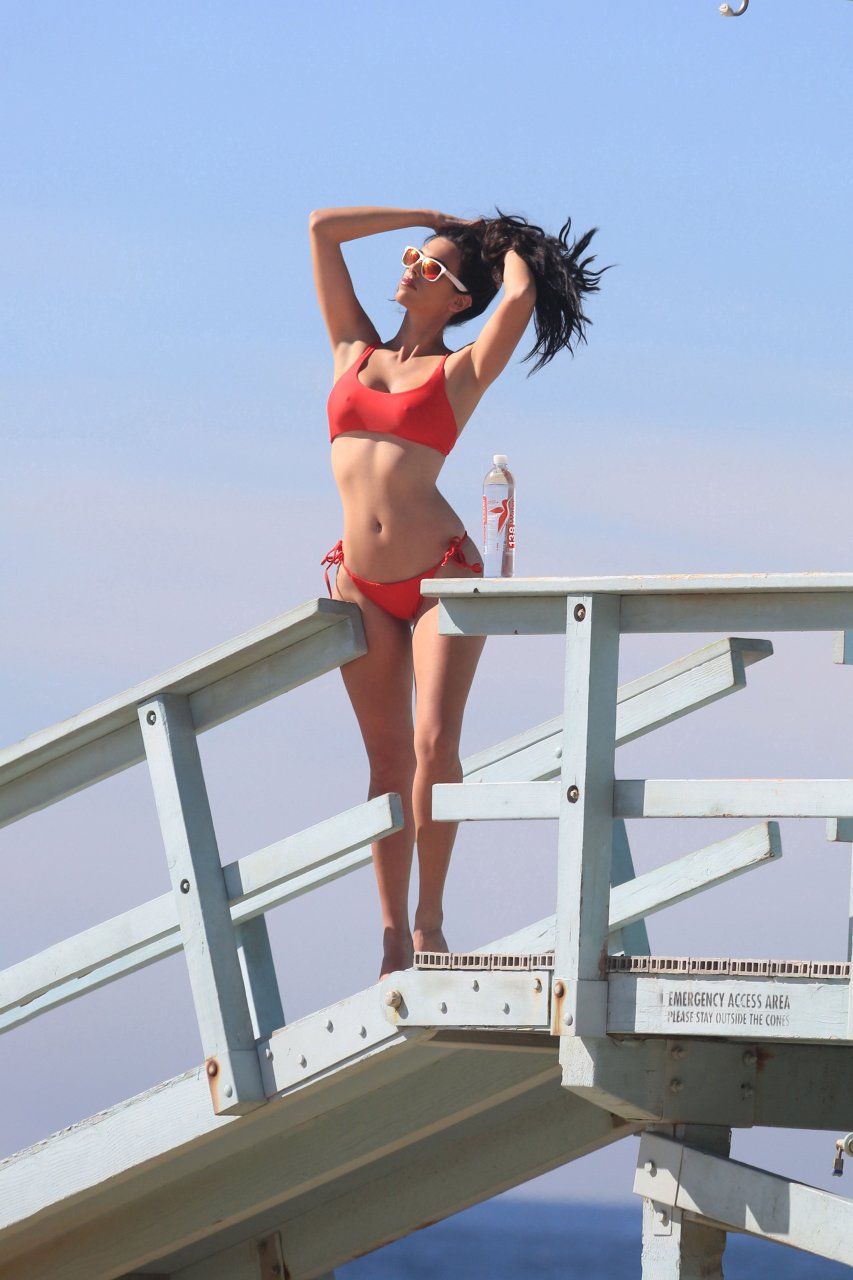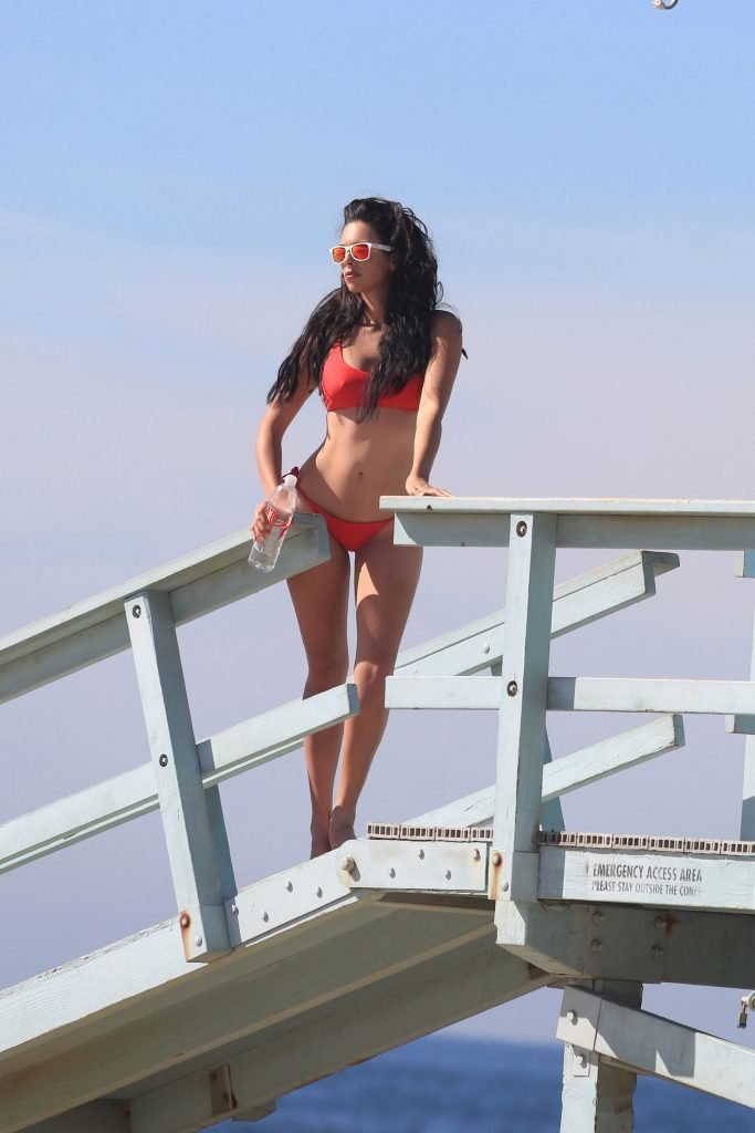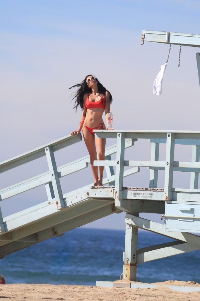 A Beleza Italiana Tania Marie exibe suas curvas fenomenais em um biquíni minúsculo enquanto aproveita a praia durante um ensaio fotográfico 138 Water em Venice Beach, 11/12/2017.