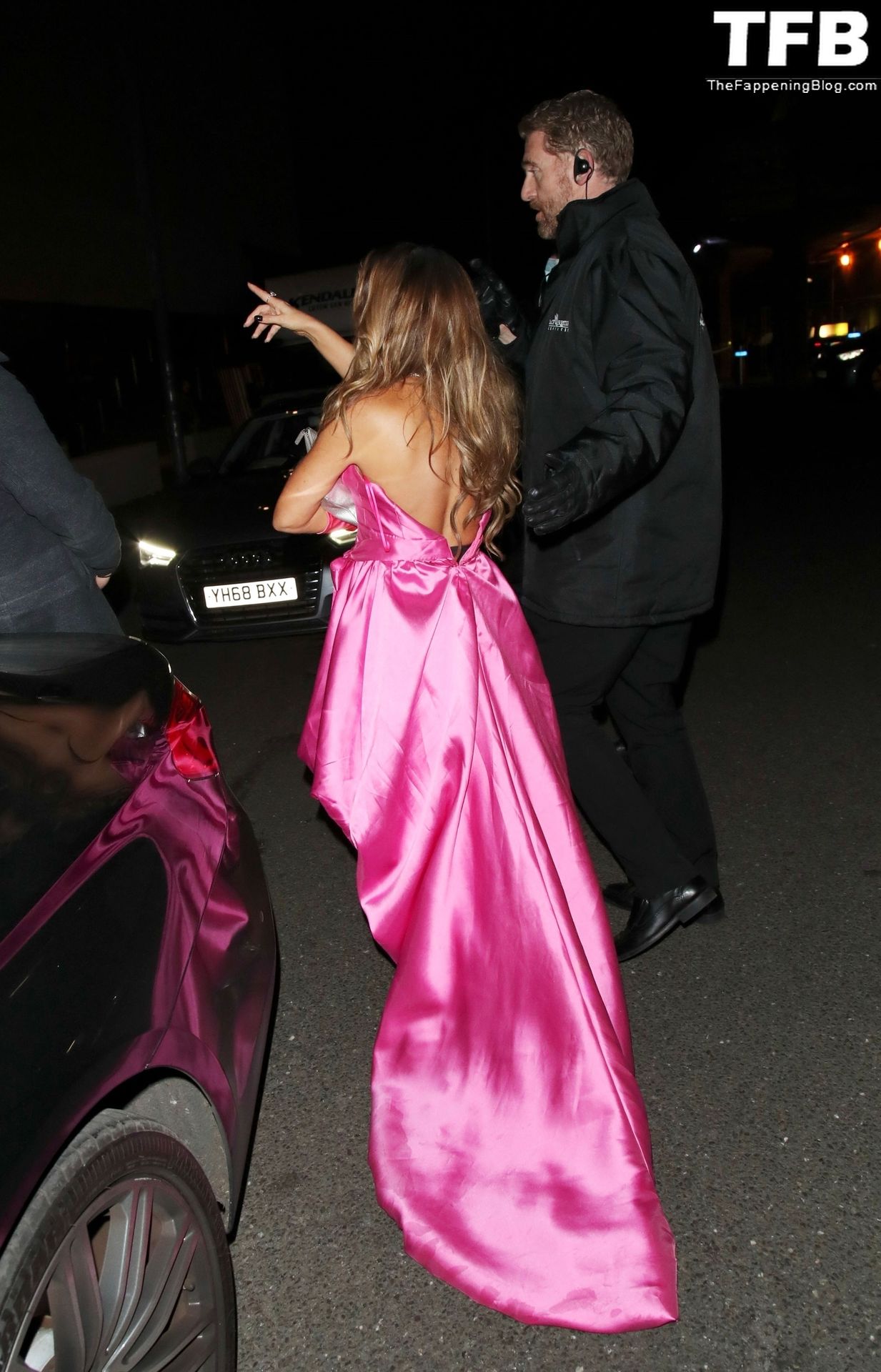 “A estrela de “The Real Housewives of Cheshire” Tanya Bardsley é fotografada usando um vestido rosa ao sair do ITV Palooza realizado no The Royal Festival Hall em Londres, 23/11/2021.