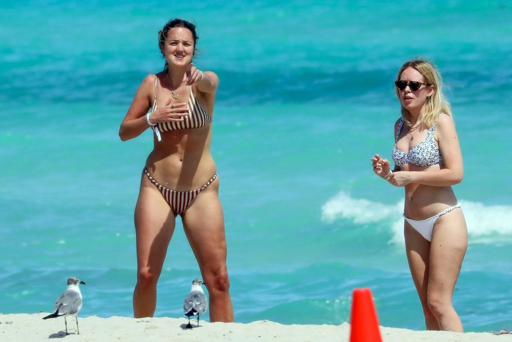 Tanya Burr (30) aumentou a temperatura ao máximo quando aproveitou o sol durante sua pausa na praia de Miami em 12 de março de 2020.