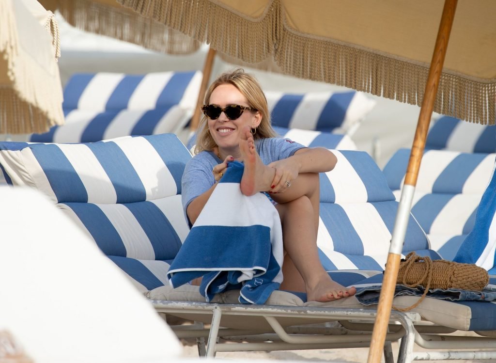 Tanya Burr exibe seu corpo de biquíni em Miami usando um conjunto vermelho, 01/02/2019. Burr é uma YouTuber e atriz inglesa, cujo canal tem mais de 3,5 milhões de inscritos.
